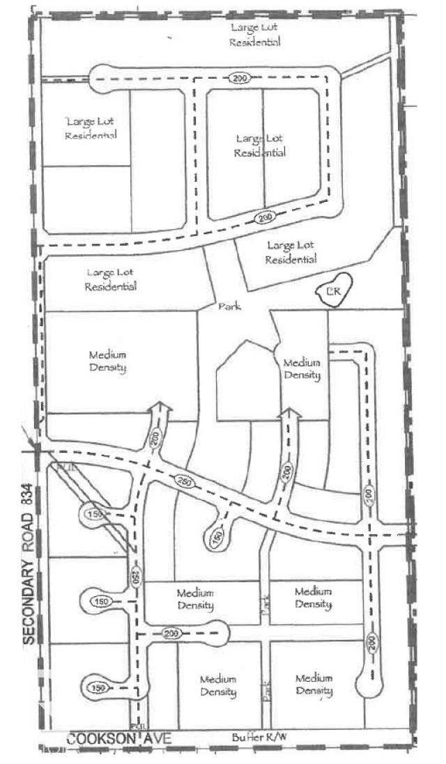 These undeveloped lands are currently leased out for hay production. Northeast Tofield ASP encourages Medium and High Density housing. Trunk sewer line exists through the SE corner of the parcel. Adequate water distribution capacity from towns existing water system according to municipality. Services by extension of electricity, natural gas, telecom and cable services present at adjacent site.