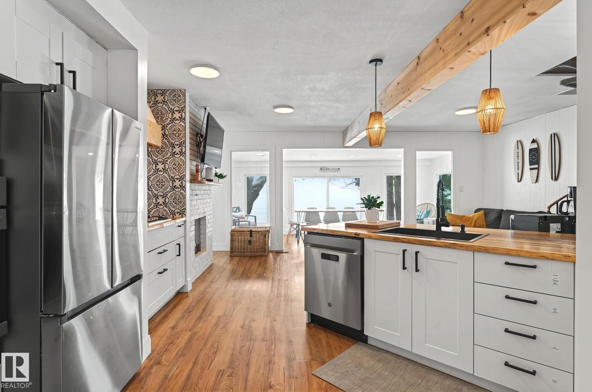 Discover a rare lakefront opportunity in the vibrant community of Ross Haven on Lac Ste. Anne. Fully renovated and move-in ready, this 1,535 sq ft home offers 5 bedrooms, 2 bathrooms, and endless possibilities as a year-round retreat or profitable short term rental. The main floor boasts an open-concept layout filled with natural light, a spacious dining area, and stunning south-facing views of the water. A chef?s kitchen with a gas range and built-in stainless steel appliances makes hosting effortless, while three bedrooms complete the level. Upstairs, guests will love the versatile bonus room, additional bedroom, and private primary suite with ensuite. Major updates include new shingles, high-efficiency furnace, on-demand hot water, and connection to the Ross Haven sewer system. Just 40 minutes from St. Albert and West Edmonton, this home delivers the perfect blend of lake lifestyle and strong short term rental income potential.