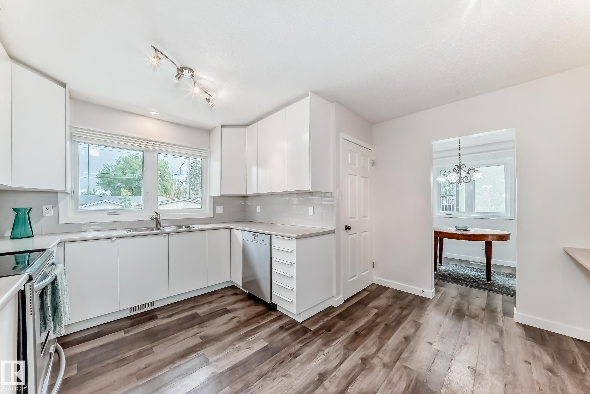 Turnkey and immaculate bungalow in desirable Kenilworth! This beautifully maintained home has seen many updates over the years, including shingles, windows, renovated kitchen and bathrooms, gleaming vinyl plank flooring, and fresh paint throughout. The bright, functional layout offers incredible suite potential with a separate entrance and spacious basement. Outside, enjoy a private, well cared for yard?perfect for relaxing or entertaining. The oversized double detached garage adds plenty of space for vehicles, storage, or a workshop plus +++ parking in the back. Excellent location, with quick access to all Edmonton has to offer! A true gem in a fantastic neighbourhood!