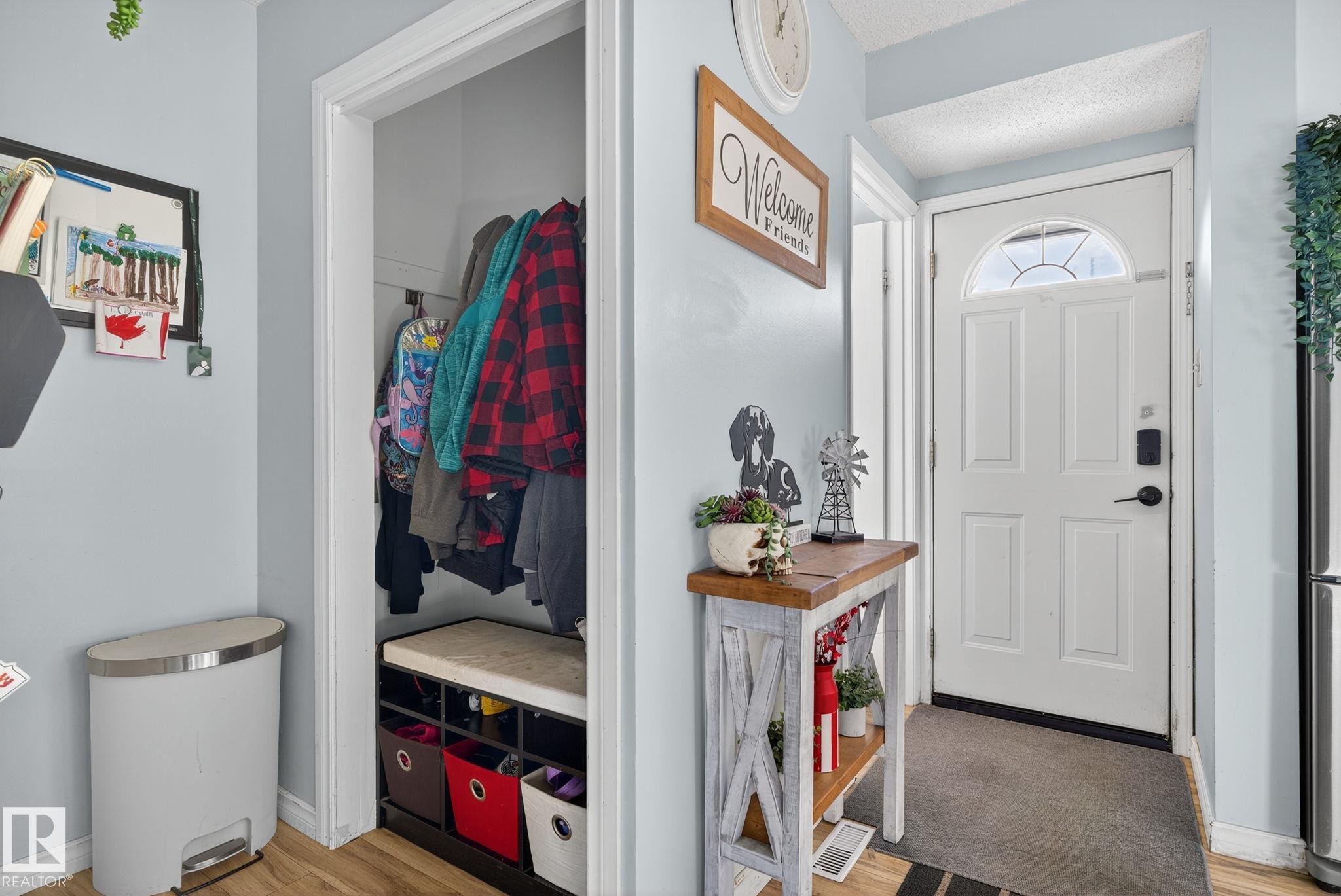 Step into this beautifully upgraded corner unit townhouse in the established, family-friendly community of Homesteader. This home is truly turn-key, featuring extensive recent upgrades, including a completely renovated kitchen and upper-floor bathroom, and stylish new vinyl plank flooring. Further peace-of-mind updates include a new roof (2025), new siding, and a new fence. The private yard is a highlight, backing directly onto a peaceful green space and featuring beautiful landscaping and a new storage shed. Enjoy brand-new major appliances, including the washer/dryer and a new stove with a built-in air fryer! Homesteader is known for its convenience, offering quick access to major amenities, schools, and excellent public transportation (including the Clareview LRT station). Enjoy the community's mature trees and active league, providing great value and a strong sense of neighborhood.