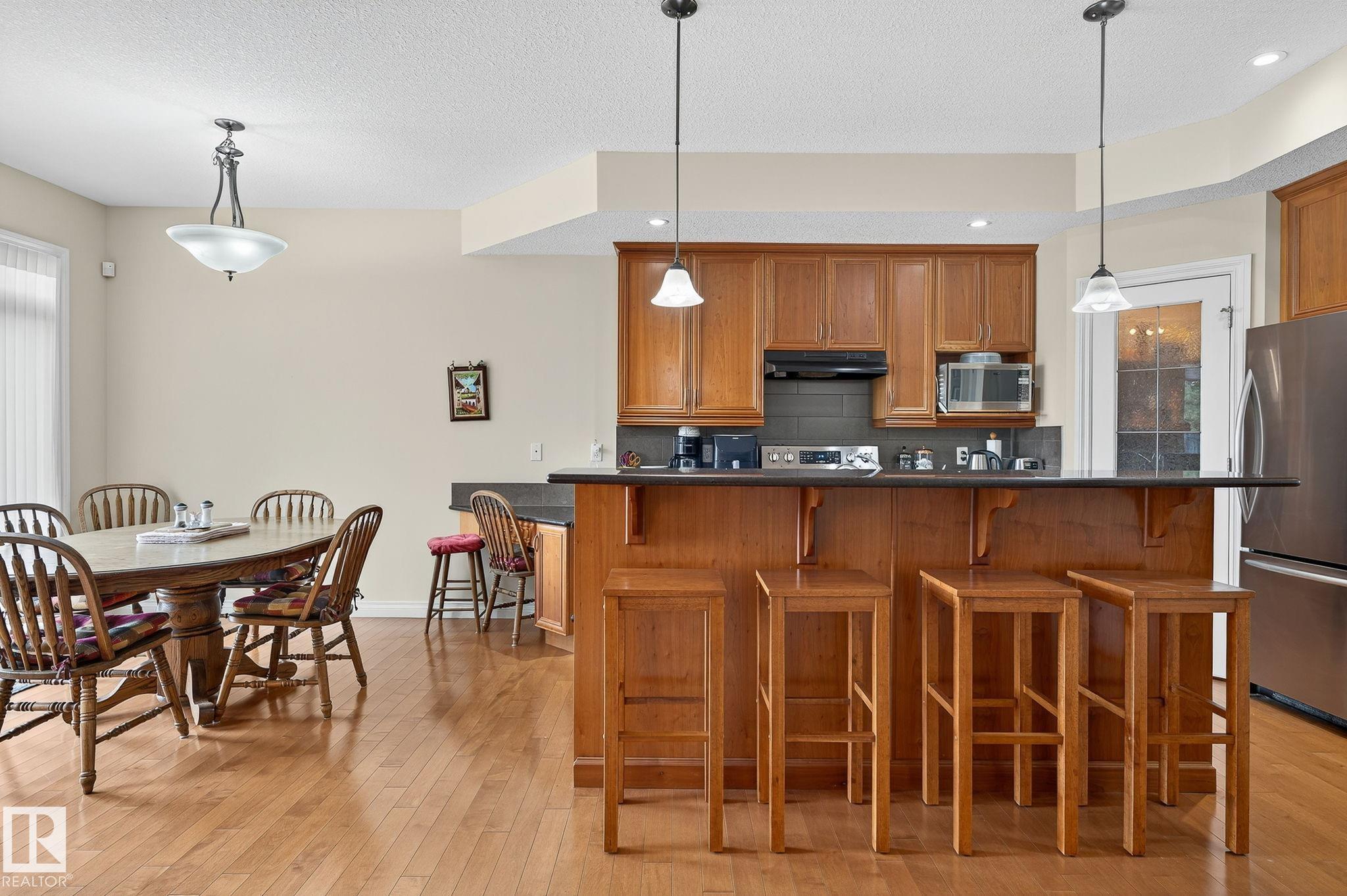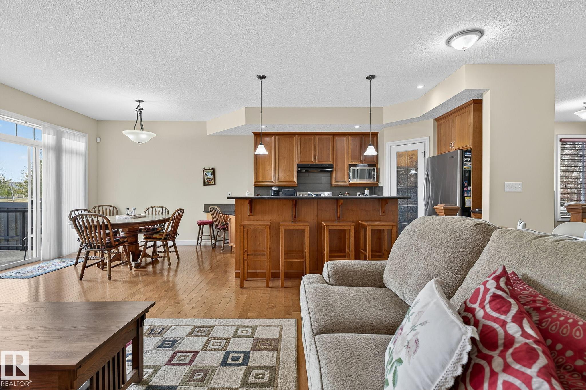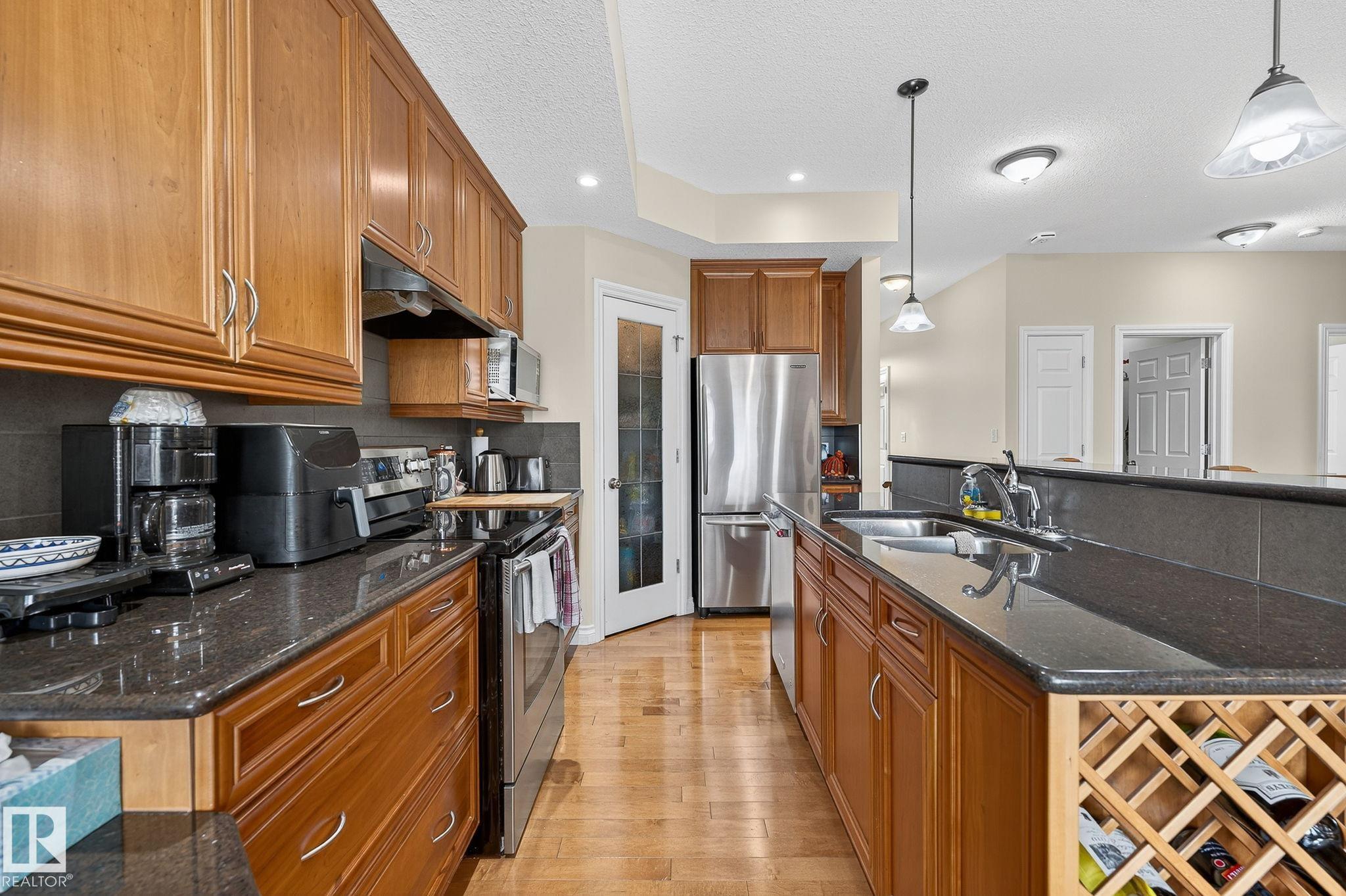 THE TAPESTRY I ?Monterey" BUNGALOW. The Great Room with gas fireplace and hardwood flooring is open to the kitchen and dining room. The kitchen boasts cherrywood stained cabinets, granite counter tops, tiered breakfast island with double sinks, a corner pantry and built-in desk. HARDWOOD FLOORS. There are patio doors off the dining nook to the back deck. The master bedroom includes a walk-thru closet to the jacuzzi ensuite with separate shower. Rounding out the main floor is a versatile "flex" room which could be used as TV/den/office, an additional 4-piece bathroom and a mudroom/laundry area with access to the drywalled garage. The fully finished lower level features a family room with 2nd gas fireplace, two additional bedrooms and a 4-piece bathroom. CHAIR LIFT STAYS. Additional features include DRYWALLED double garage, NEW AIR CONDITIONING, NEW FURNACE. Fenced and landscaped yard backing Jaskiw Park. IDEAL RETIREMENT HOME with HOA of $150 for maintenance free living!