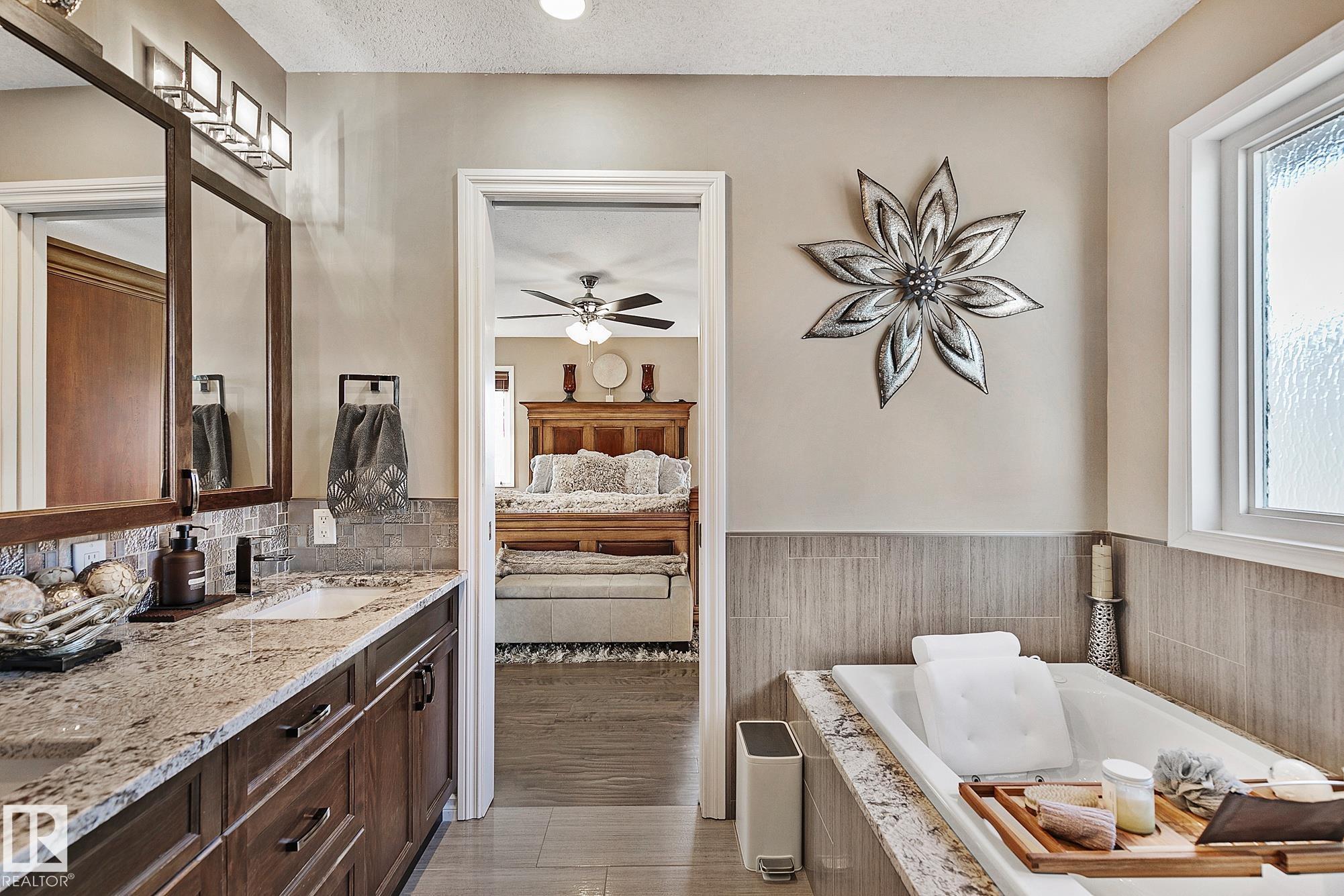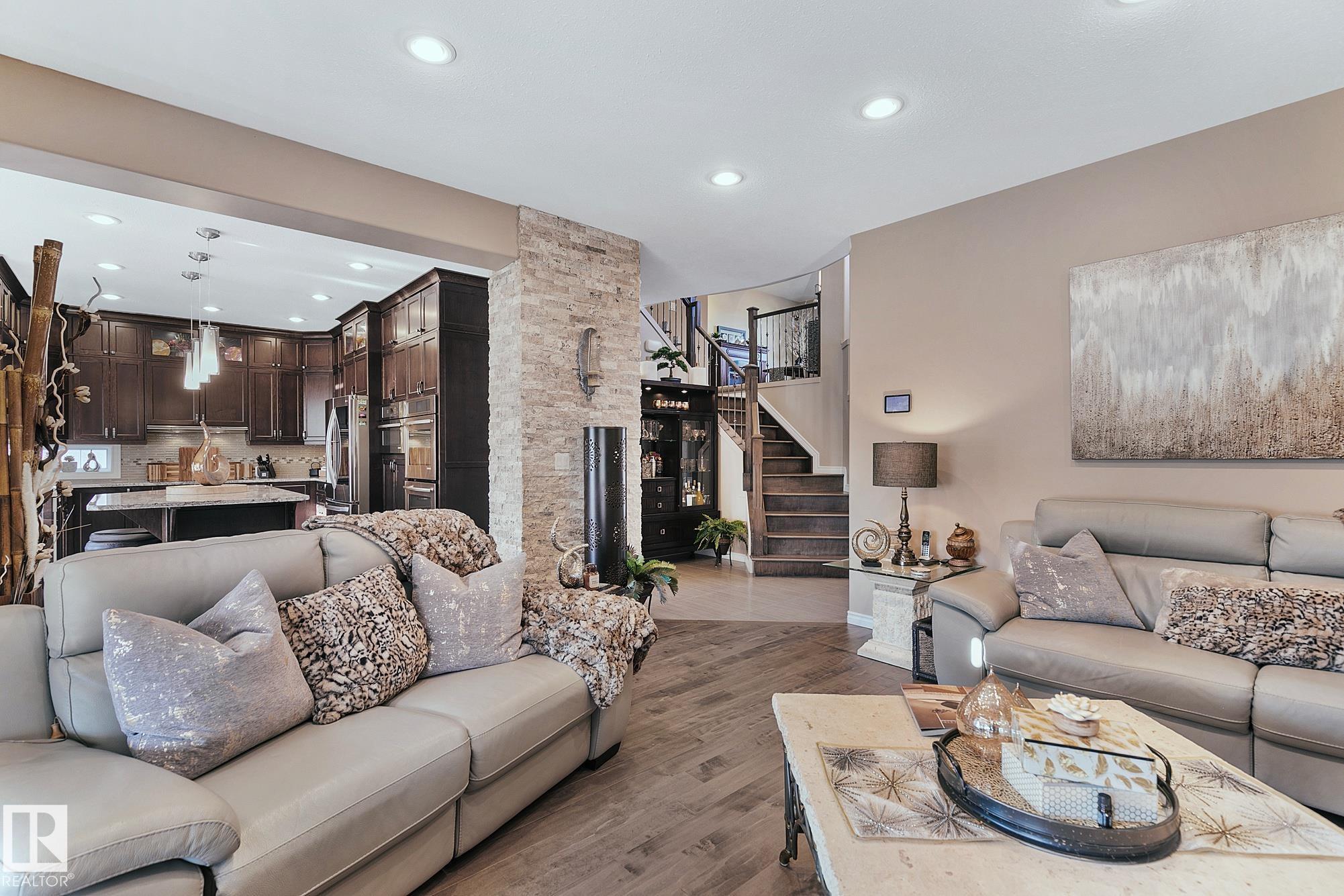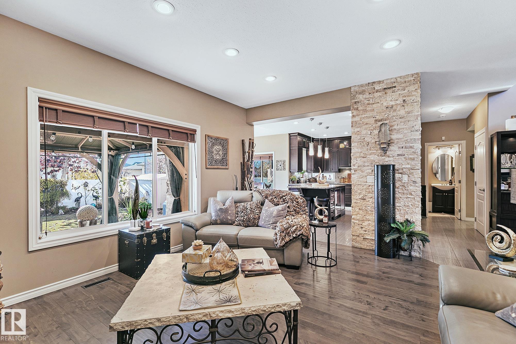 This meticulously kept, turn key renovated Belle Rive beauty will be your everything! No detail has been overlooked! Step into amazing and enjoy an airy entry with open to above vault nestled near a generous main floor den with lovely views of the meticulous yard scape. Completely renovated, this home boasts a custom eat in kitchen with island inclusive of a beverage cooler and the best use of all things culinary. Upscale cabinets built to the ceiling are the perfect backdrop to luxury appliances; induction cooktop, double b/i ovens, built in speed convection microwave & abundance of windows that overlook the pristine backyard &gazebo. Stone accents, granite, hardwood flooring throughout, main floor laundry with functionally designed storage...WOW! Vaulted bonus room & 3 bedrooms complete the upper level inclusive of a primary suite with walk in closet that pulls out all the stops! Breathtaking &well planned ensuite is exquisite in design & execution! A/C, hot water demand, newer shingles...Welcome home!