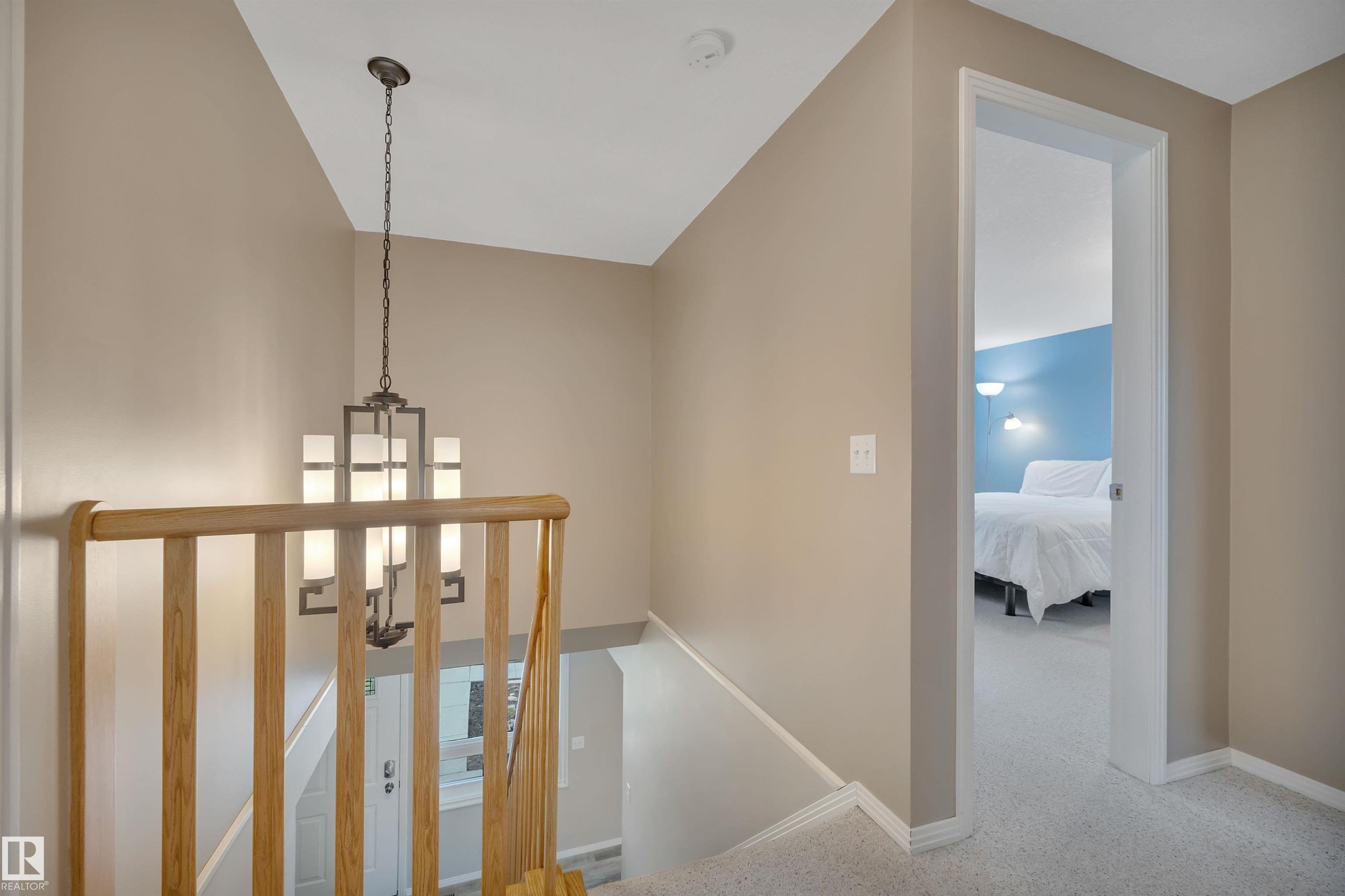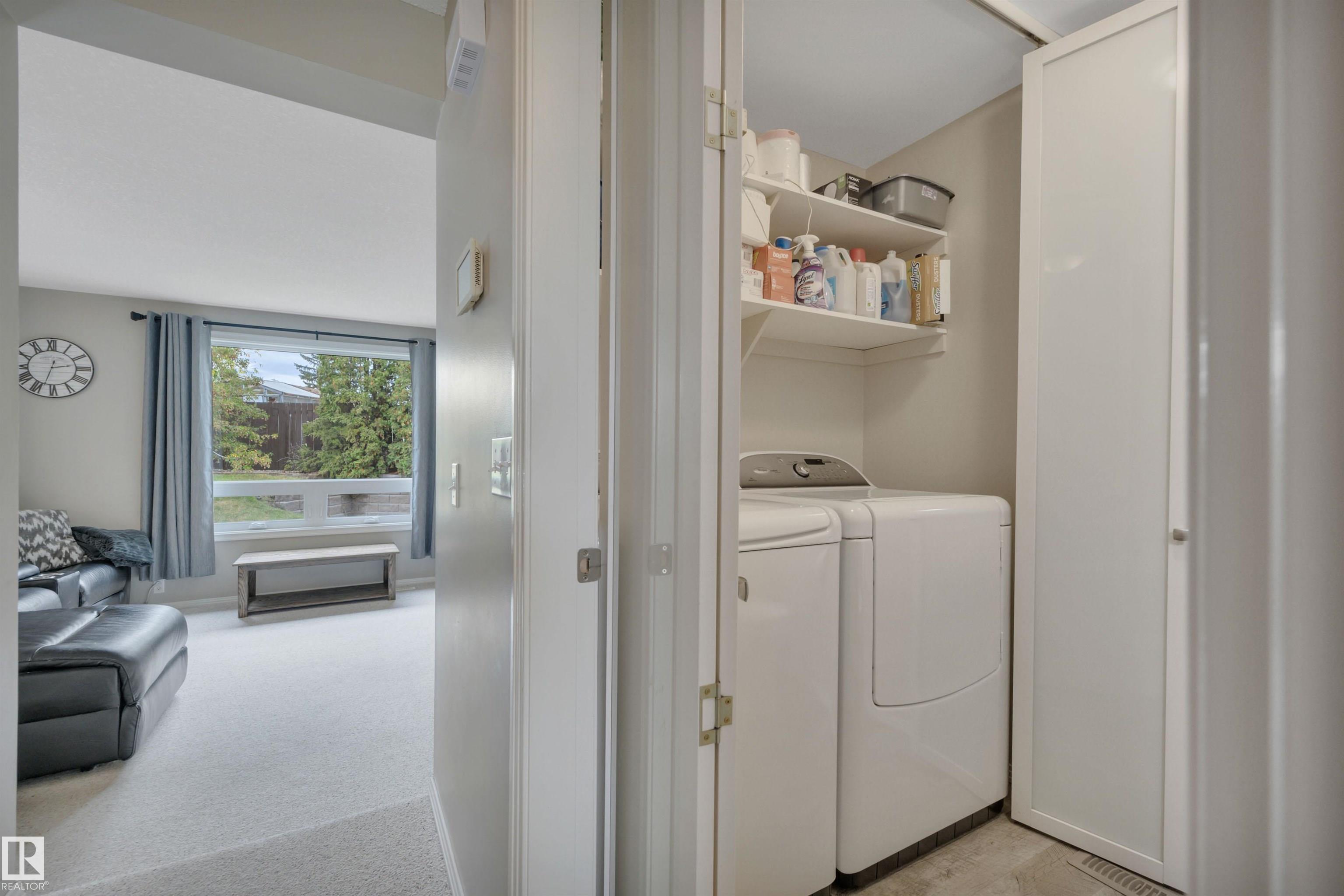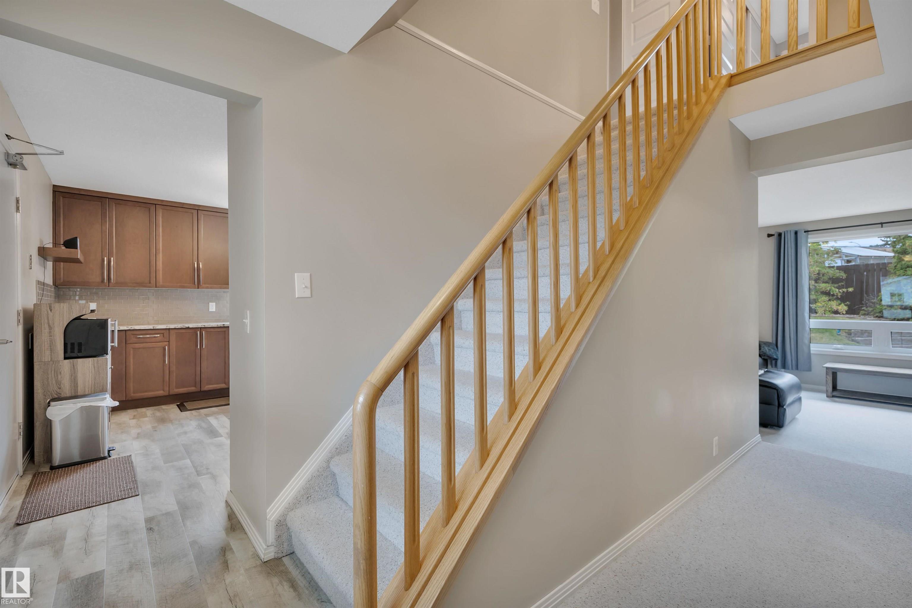 Welcome home to this beautifully renovated 2-storey- located on a quiet cul-de-sac with a spacious pie lot, just steps from schools!! The heart of the home is the upgraded kitchen featuring granite countertops, stainless steel appliances (2020), a built-in wall pantry, and loads of counter space. The bright living room offers large sunny windows and a cozy stone-surround gas fireplace, with an adjacent dining room perfect for gatherings. Main floor laundry and a double attached garage add convenience to everyday living. Enjoy summers in your beautifully landscaped backyard complete with a composite deck and retaining wall. Upstairs, the generous primary bedroom includes a walk-in closet and stylish upgraded ensuite. Two additional bedrooms and a full bath complete the upper level. The fully finished basement provides a great rec room, bedroom, and plenty of storage. Additional updates include central A/C, newer windows, hot water tank, and furnace!! This move-in-ready home is waiting for you!
