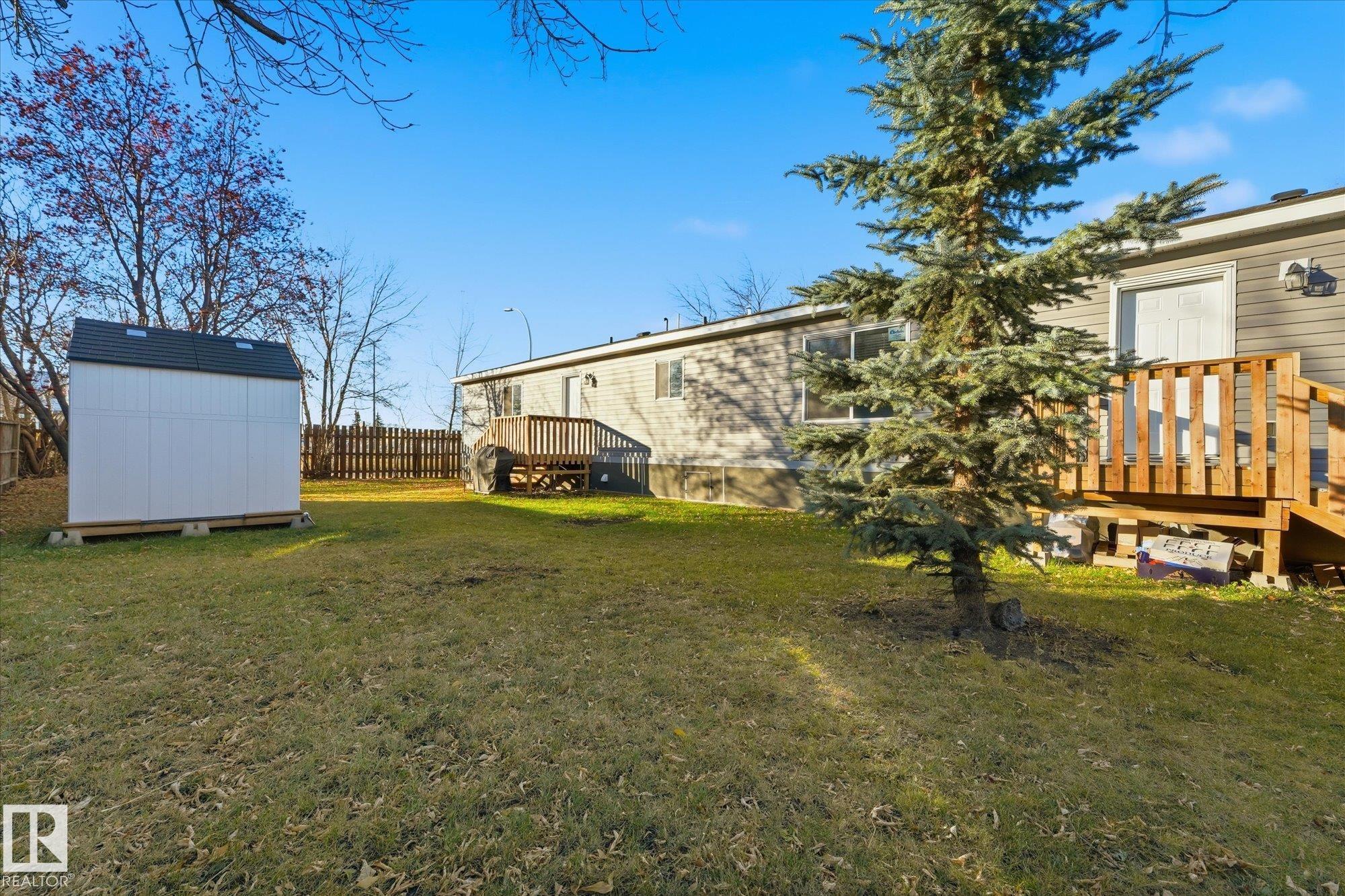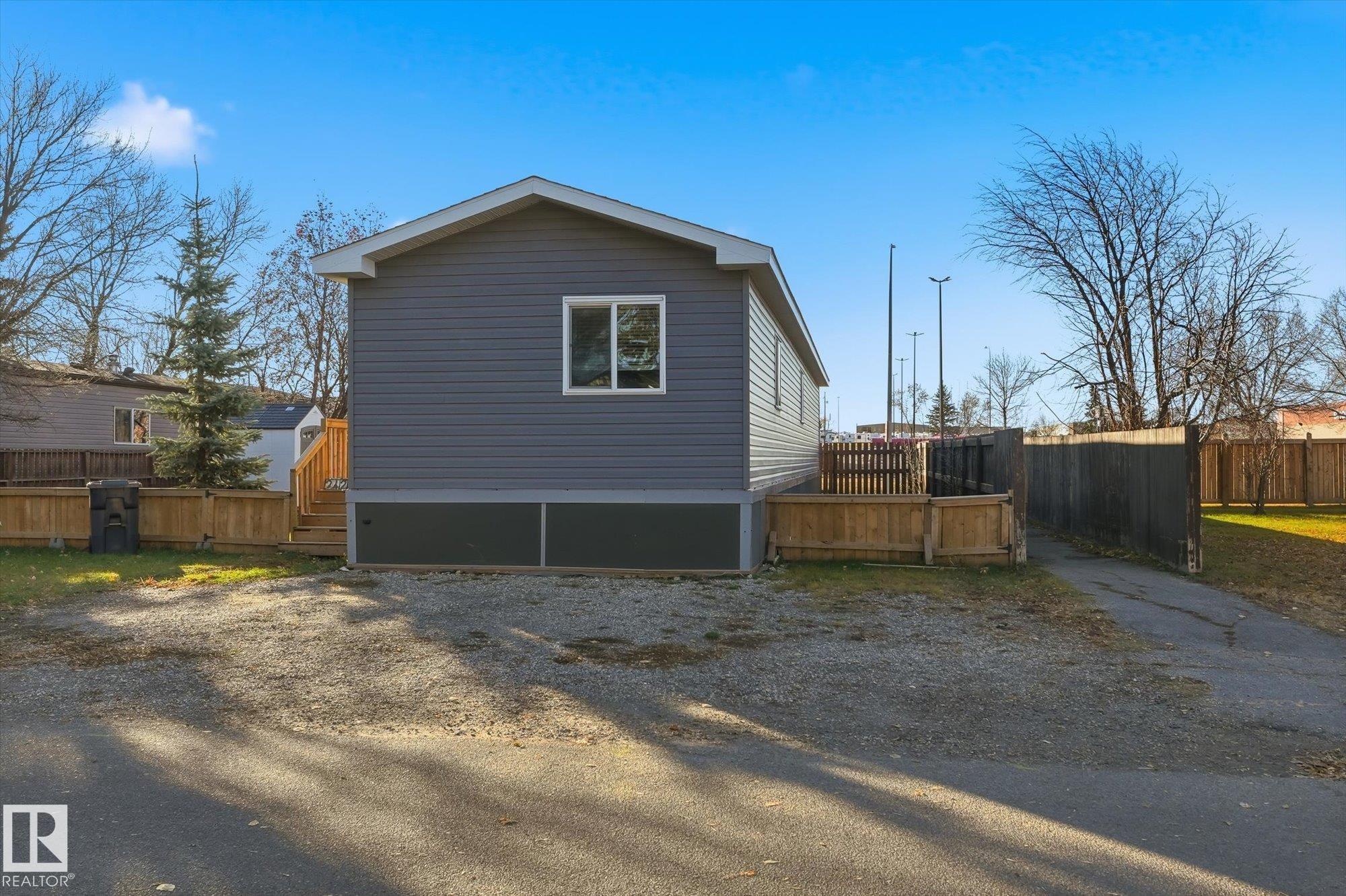 Welcome to Mobile City Estates in Spruce Grove! This 2021-built 3-bed, 2-bath manufactured home offers over 1,000 sq. ft. of bright, open living space and has had only one owner. The modern kitchen features a gas stove and plenty of cabinetry, opening to a spacious living area perfect for relaxing or entertaining. The primary suite includes a full ensuite, with two additional bedrooms offering great flexibility. Enjoy a huge fully fenced yard?ideal for pets, kids, or gardening. Just a 2-minute walk to Westland Market Mall, you?re close to shopping, groceries, dining, and public transit. A perfect blend of comfort, convenience, and value in a desirable community!
