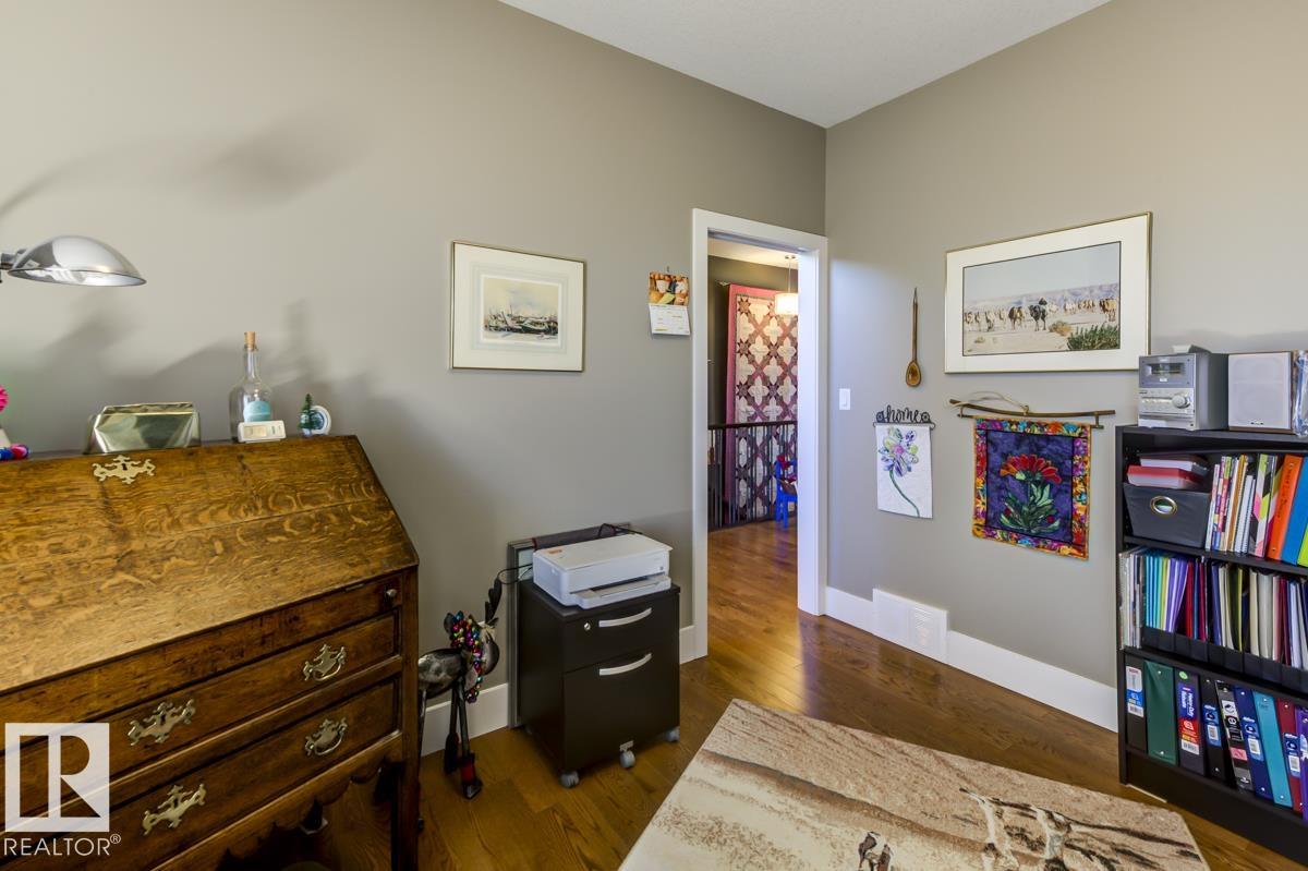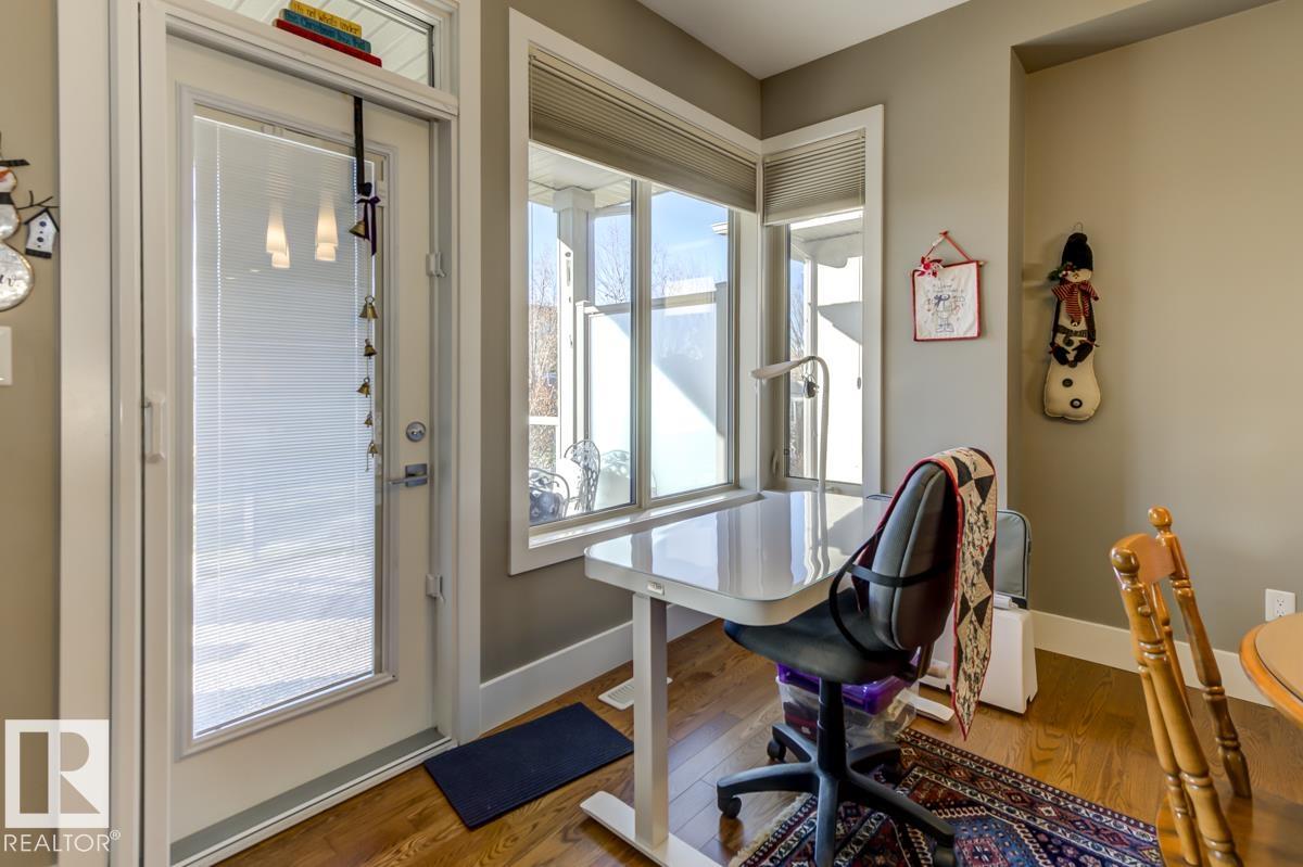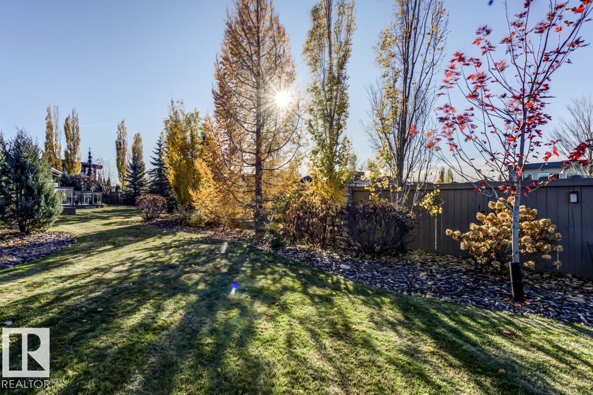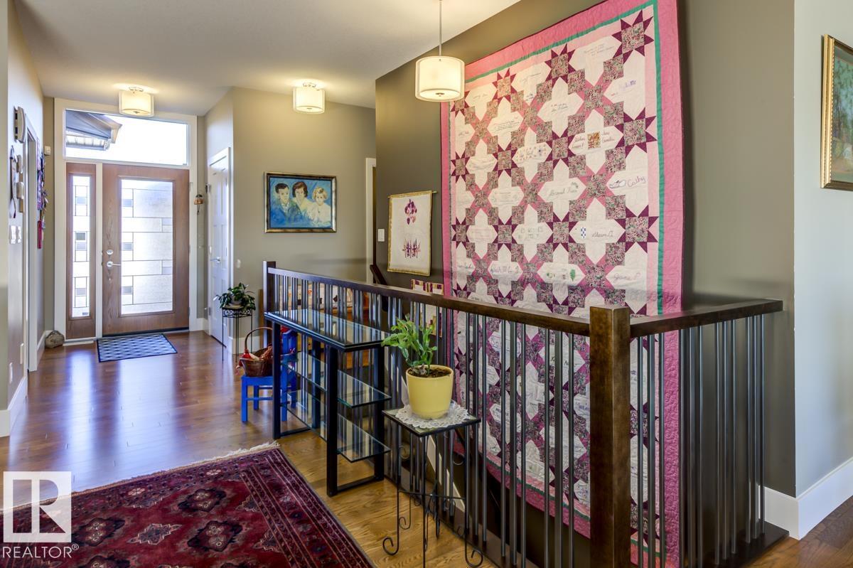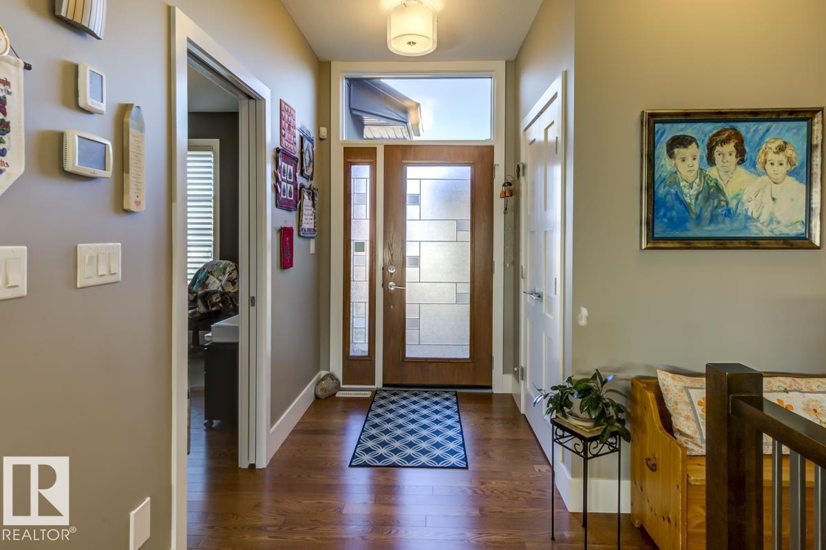 Welcome to this stunning bungalow in the sought-after and prestigious community of Larch Park in Mactaggart, perfectly situated on a quiet cul-de-sac. Thoughtfully designed for comfort and style, this residence features 9-foot ceilings on both levels, a main floor office with a Murphy bed, and a modern kitchen boasting granite counters, stainless steel appliances, pantry, and an oversized island?ideal for entertaining. Enjoy the warmth of gas fireplaces in both the living and rec rooms, or unwind in the west-facing, landscaped backyard with exposed aggregate patio and extendable awning for customizable shade. The primary suite offers a spa-like 5-piece ensuite and walk-in closet, while the fully finished basement impresses with an oversized rec room with wet bar, two generous bedrooms, and ample storage. Additional highlights include main floor laundry, a double attached garage with extra depth, and Green Built certification for energy efficiency. With no condo fees, no shovelling, and no lawn care.