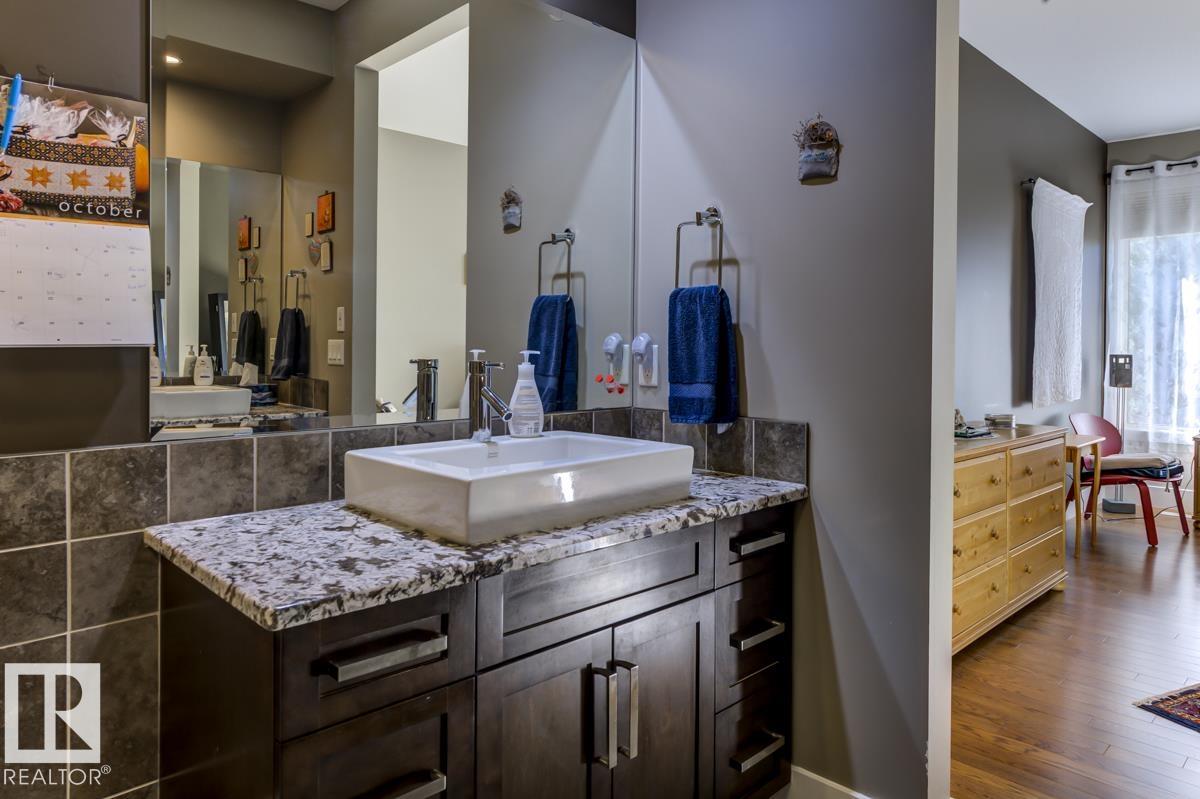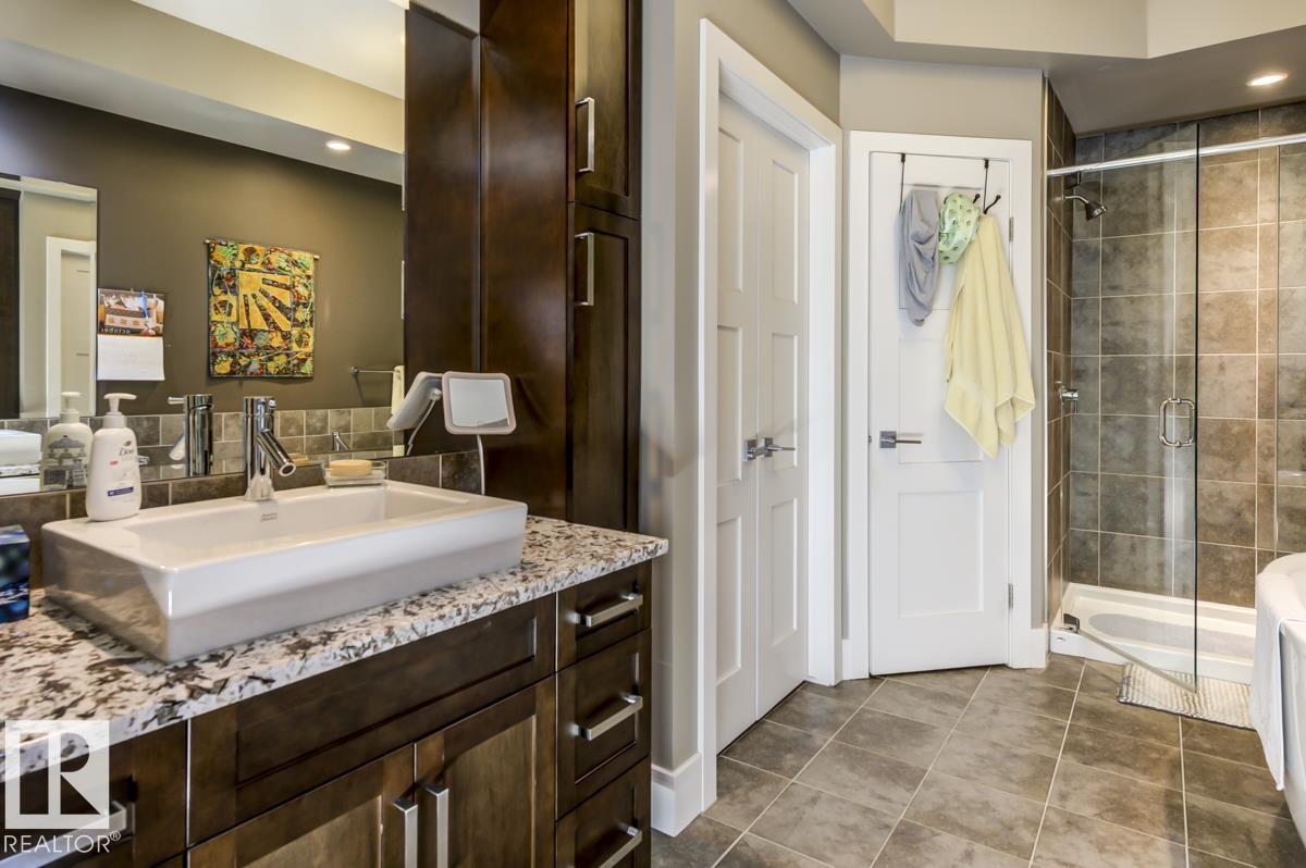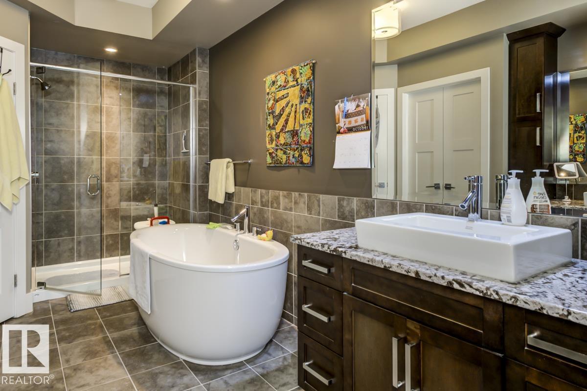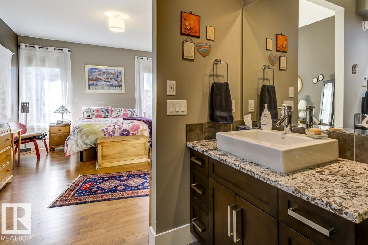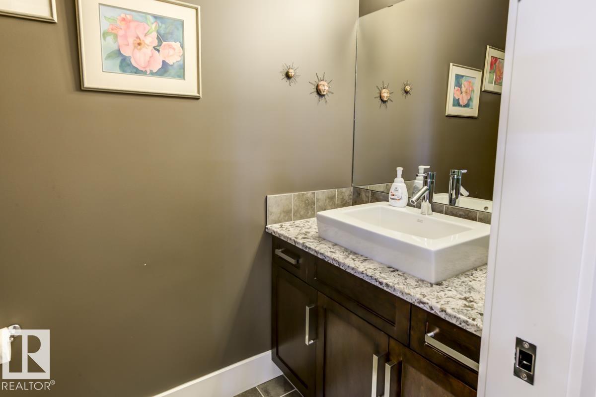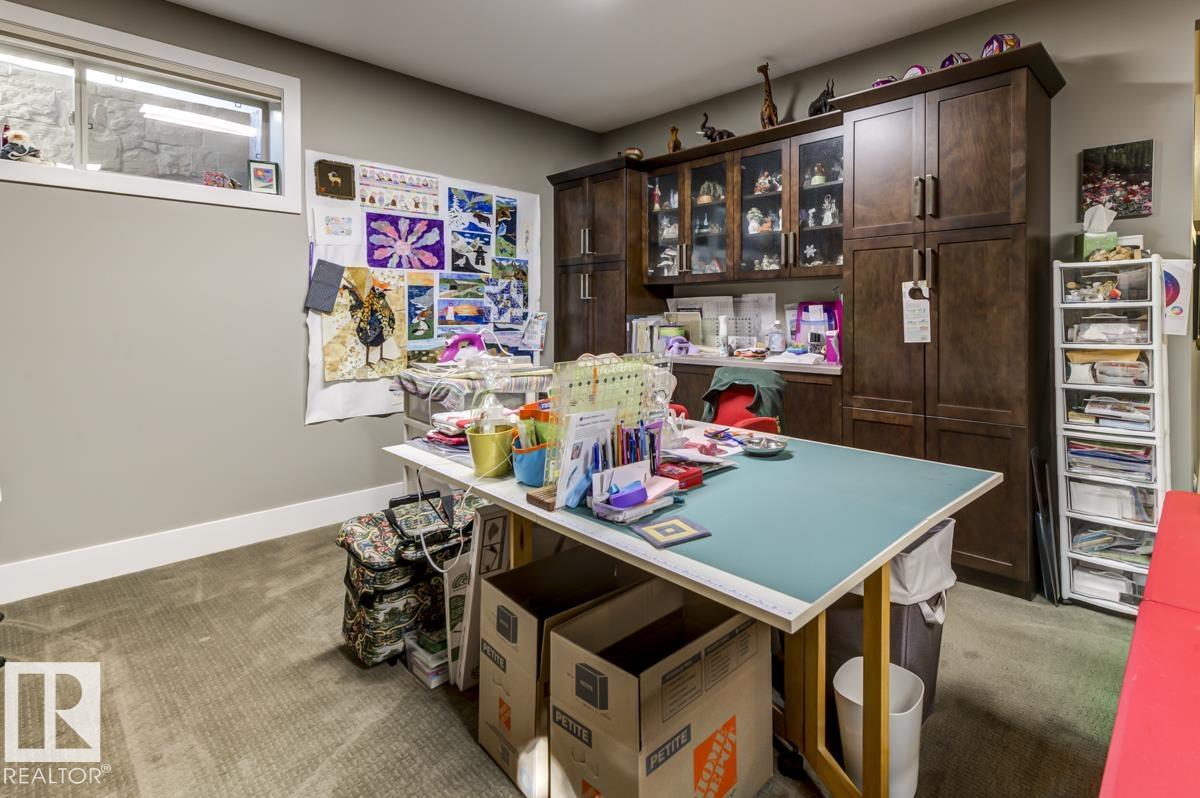 Welcome to this stunning bungalow in the sought-after and prestigious community of Larch Park in Mactaggart, perfectly situated on a quiet cul-de-sac. Thoughtfully designed for comfort and style, this residence features 9-foot ceilings on both levels, a main floor office with a Murphy bed, and a modern kitchen boasting granite counters, stainless steel appliances, pantry, and an oversized island?ideal for entertaining. Enjoy the warmth of gas fireplaces in both the living and rec rooms, or unwind in the west-facing, landscaped backyard with exposed aggregate patio and extendable awning for customizable shade. The primary suite offers a spa-like 5-piece ensuite and walk-in closet, while the fully finished basement impresses with an oversized rec room with wet bar, two generous bedrooms, and ample storage. Additional highlights include main floor laundry, a double attached garage with extra depth, and Green Built certification for energy efficiency. With no condo fees, no shovelling, and no lawn care.