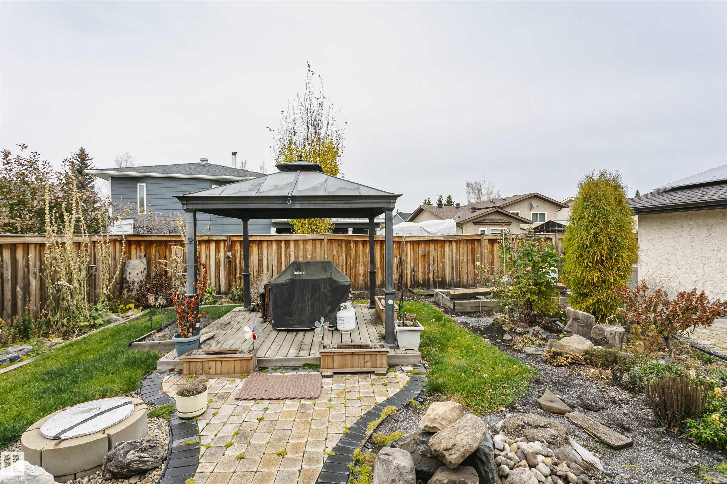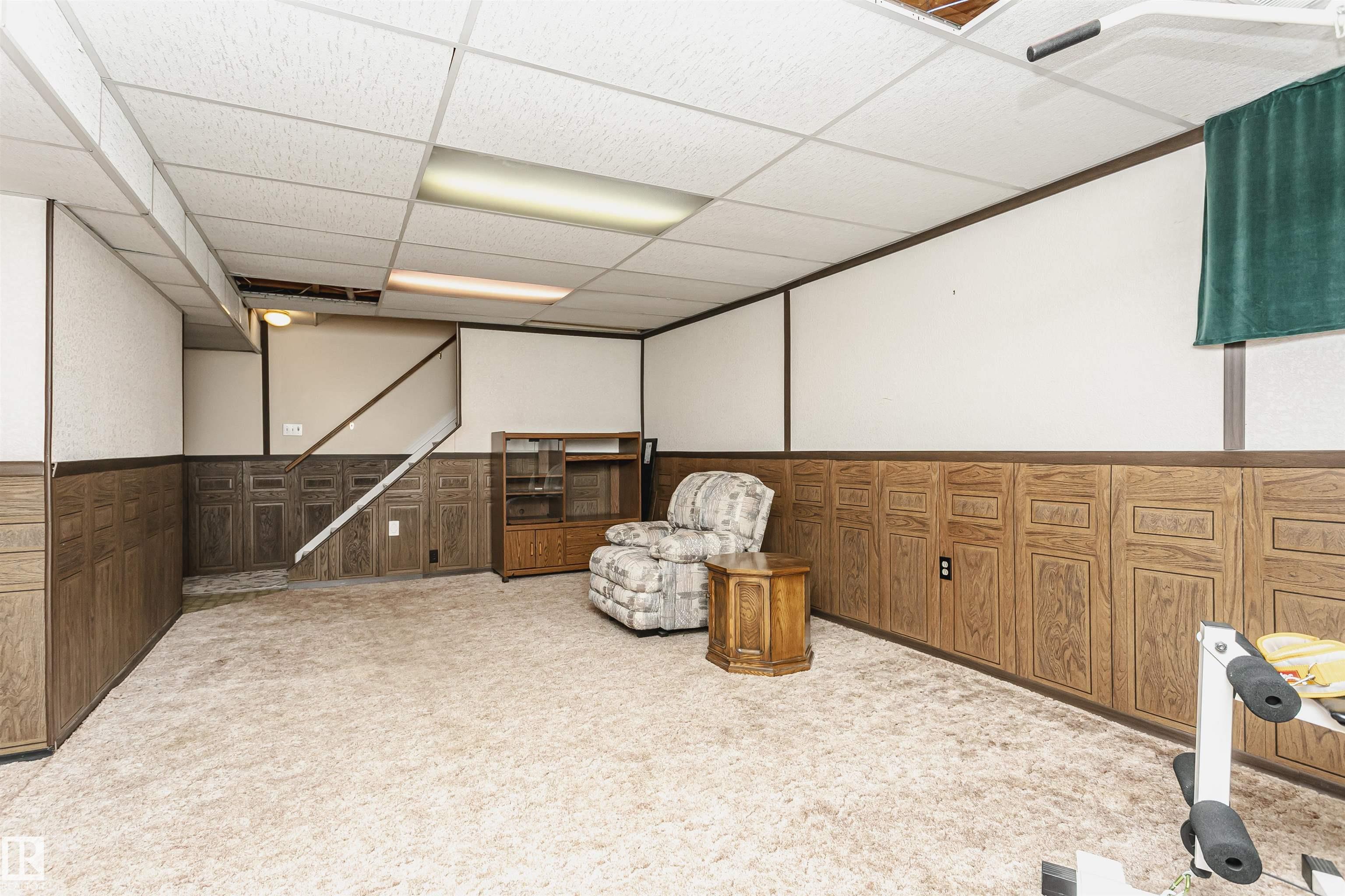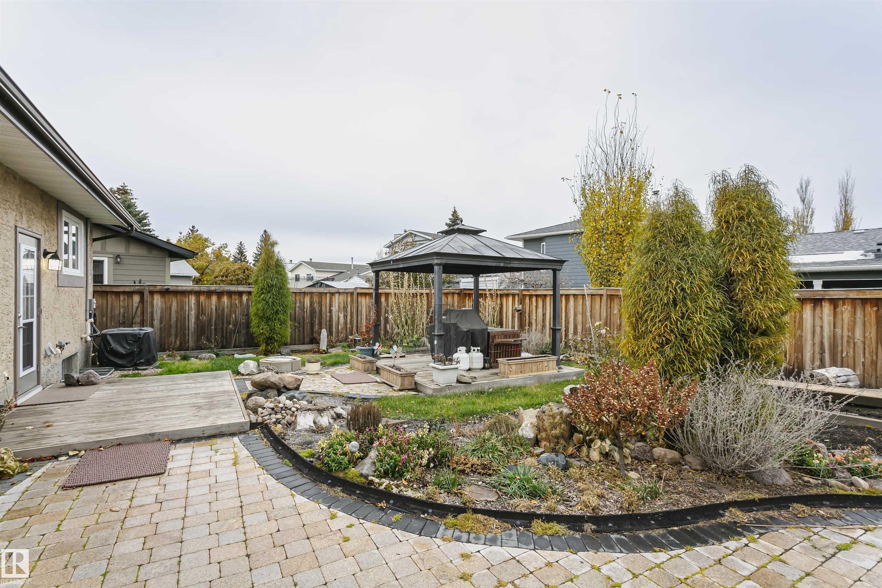 This beautiful corner lot bungalow located in Beaumont is perfect if you?re looking to downsize or start a family & enjoy a backyard oasis. All the expensive items have been done. Including a custom-made kitchen includes a gas-stove, quartz counter-tops, soft-close drawers, motorized blinds over sink, & stainless steel appliances. Other upgrades are solar panels, remote window coverings in 2024( livingroom); triple-pane windows, shingles, furnace & central vac; newer front & back doors, A/C, newer led lights & ceiling fan, newer main bathroom vanity & tub surround. This home has 3 good sized bedrooms on the main level, w/ a 4 pc main bath & 2 pc ensuite. The living room boasts a beautiful brick wood burning fireplace & vaulted ceiling. The basement has a large rec room/flex space & 3 pc bathroom including new shower. W/ plenty of storage & an extra fridge & freezer chest, LG washer/dryer & wash basin. The backyard oasis is perfect w/ perennials and plenty of sunlight. Garage is 6.54m x 6.47m