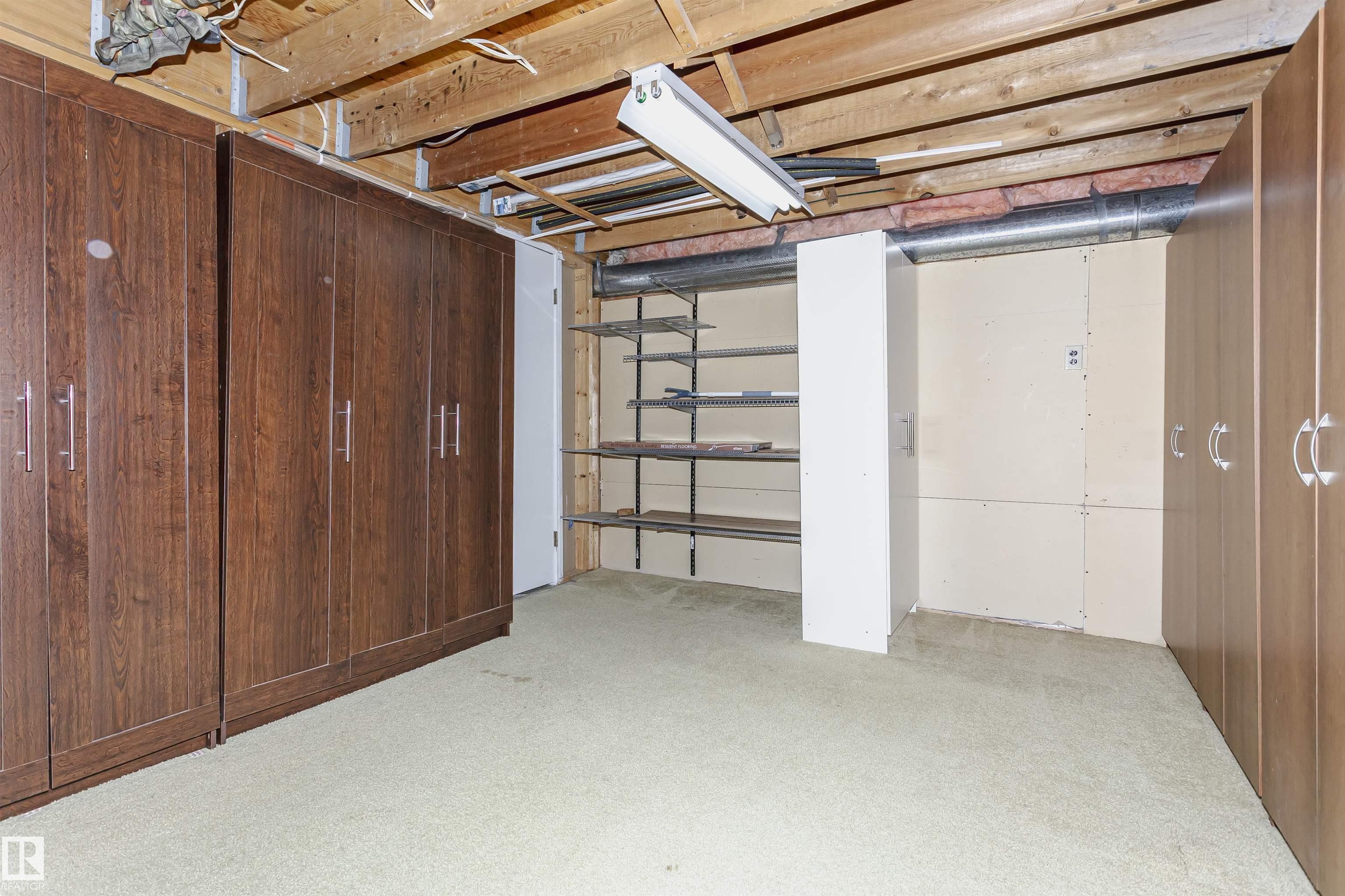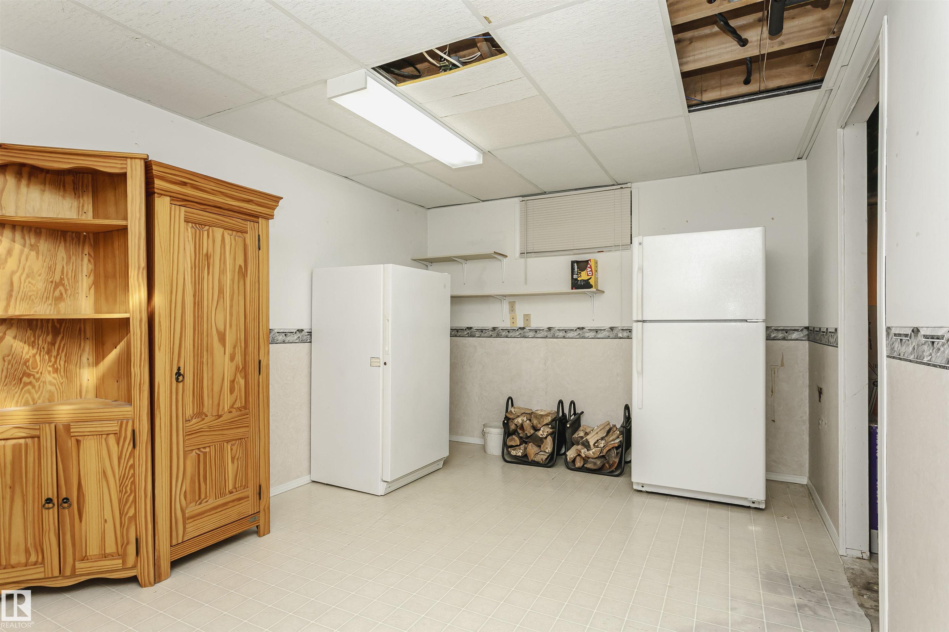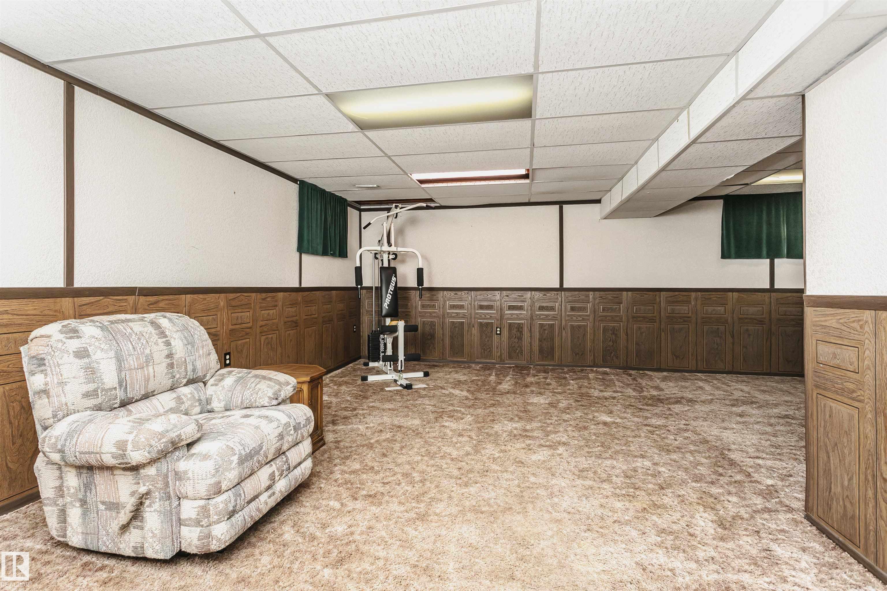 This beautiful corner lot bungalow located in Beaumont is perfect if you?re looking to downsize or start a family & enjoy a backyard oasis. All the expensive items have been done. Including a custom-made kitchen includes a gas-stove, quartz counter-tops, soft-close drawers, motorized blinds over sink, & stainless steel appliances. Other upgrades are solar panels, remote window coverings in 2024( livingroom); triple-pane windows, shingles, furnace & central vac; newer front & back doors, A/C, newer led lights & ceiling fan, newer main bathroom vanity & tub surround. This home has 3 good sized bedrooms on the main level, w/ a 4 pc main bath & 2 pc ensuite. The living room boasts a beautiful brick wood burning fireplace & vaulted ceiling. The basement has a large rec room/flex space & 3 pc bathroom including new shower. W/ plenty of storage & an extra fridge & freezer chest, LG washer/dryer & wash basin. The backyard oasis is perfect w/ perennials and plenty of sunlight. Garage is 6.54m x 6.47m