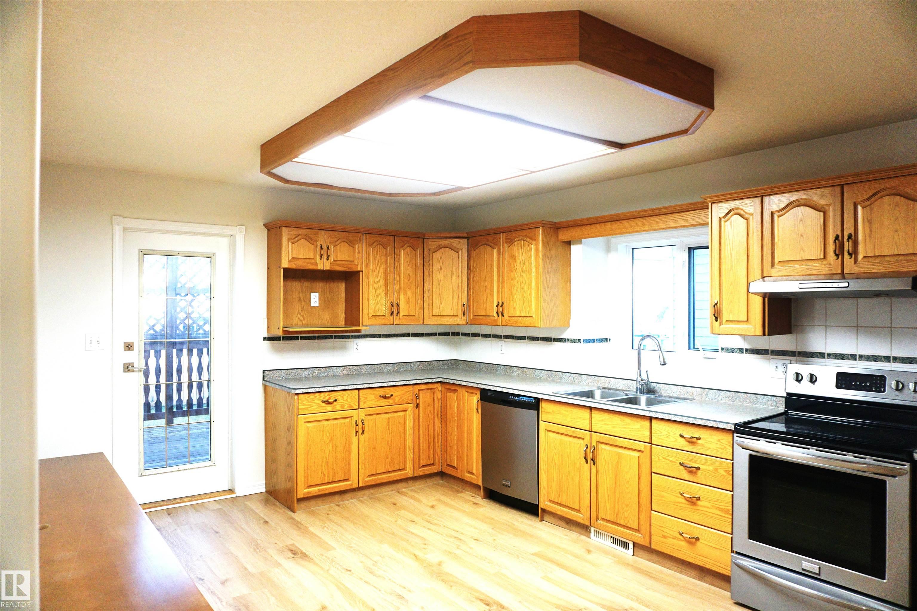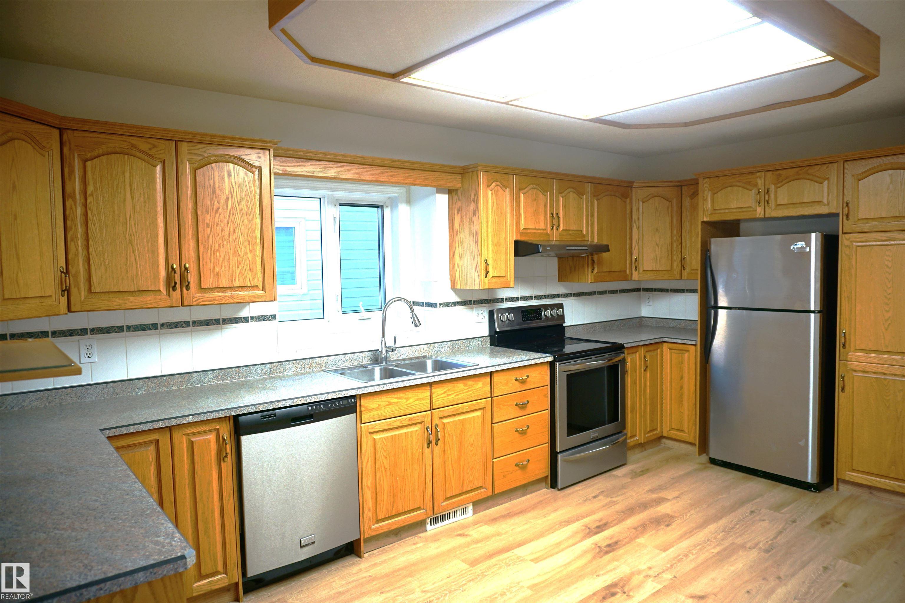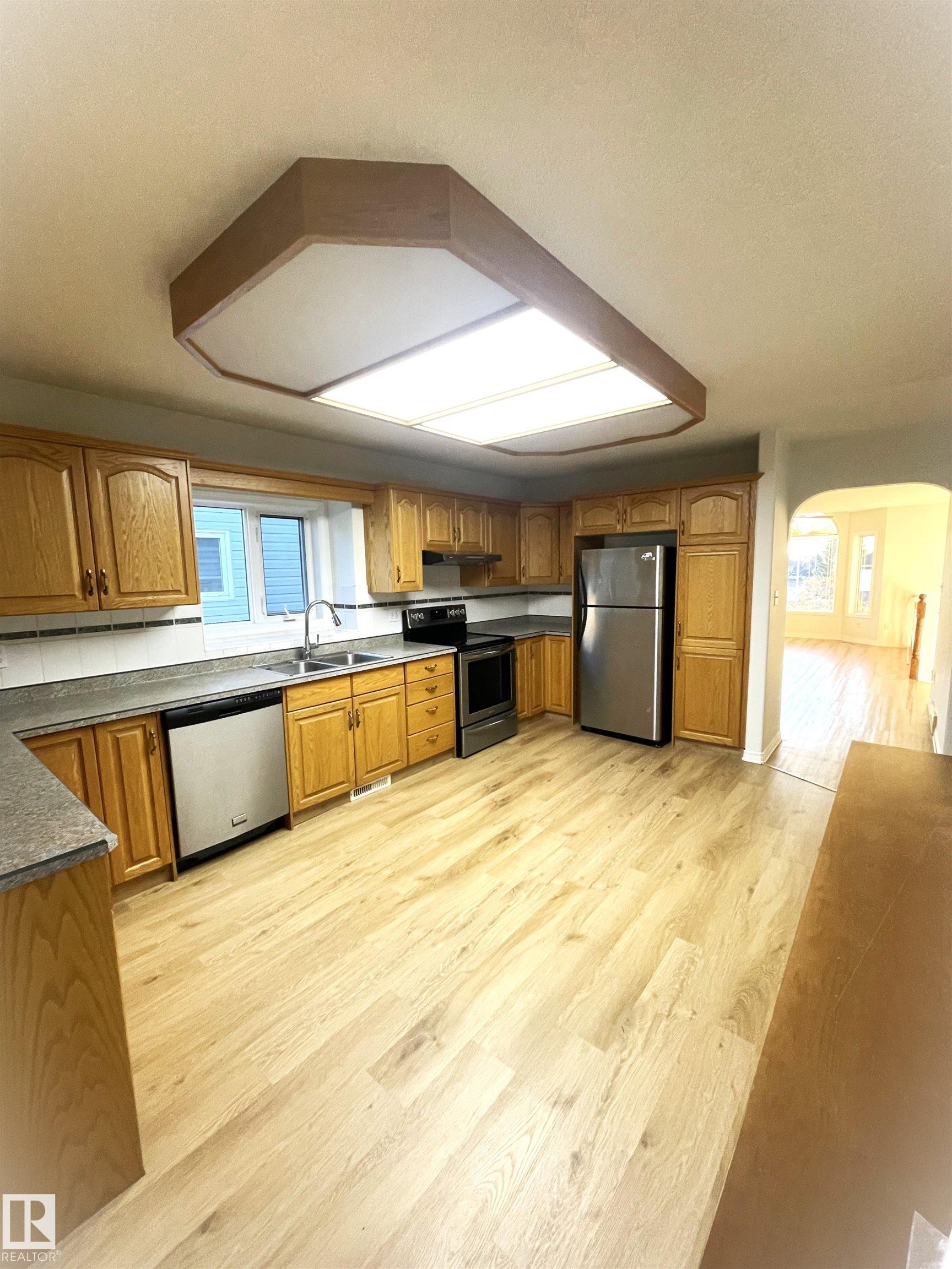 Looking for a home that offers both comfort and smart design? Welcome to this captivating bi-level home! This large bi-level has 3 bedrooms up with 2 full bathrooms upstairs. Separate entrance to the basement allows for income opportunities in the future with a second kitchen, 2 bedrooms and a full bathroom. There is also a gas fireplace in the basement's sitting area. The double attached garage is well insulated and drywalled. This home has been well taken care and has had some recent upgrades as well. New paint everywhere and new vinyl plank all over the main floor. Backyard has large deck with privacy walls to have your quite moment with cup of coffee. Home is located on a quiet street but yet close to good schools, golf course, walking trails and quick access to the Whitemud Freeway.