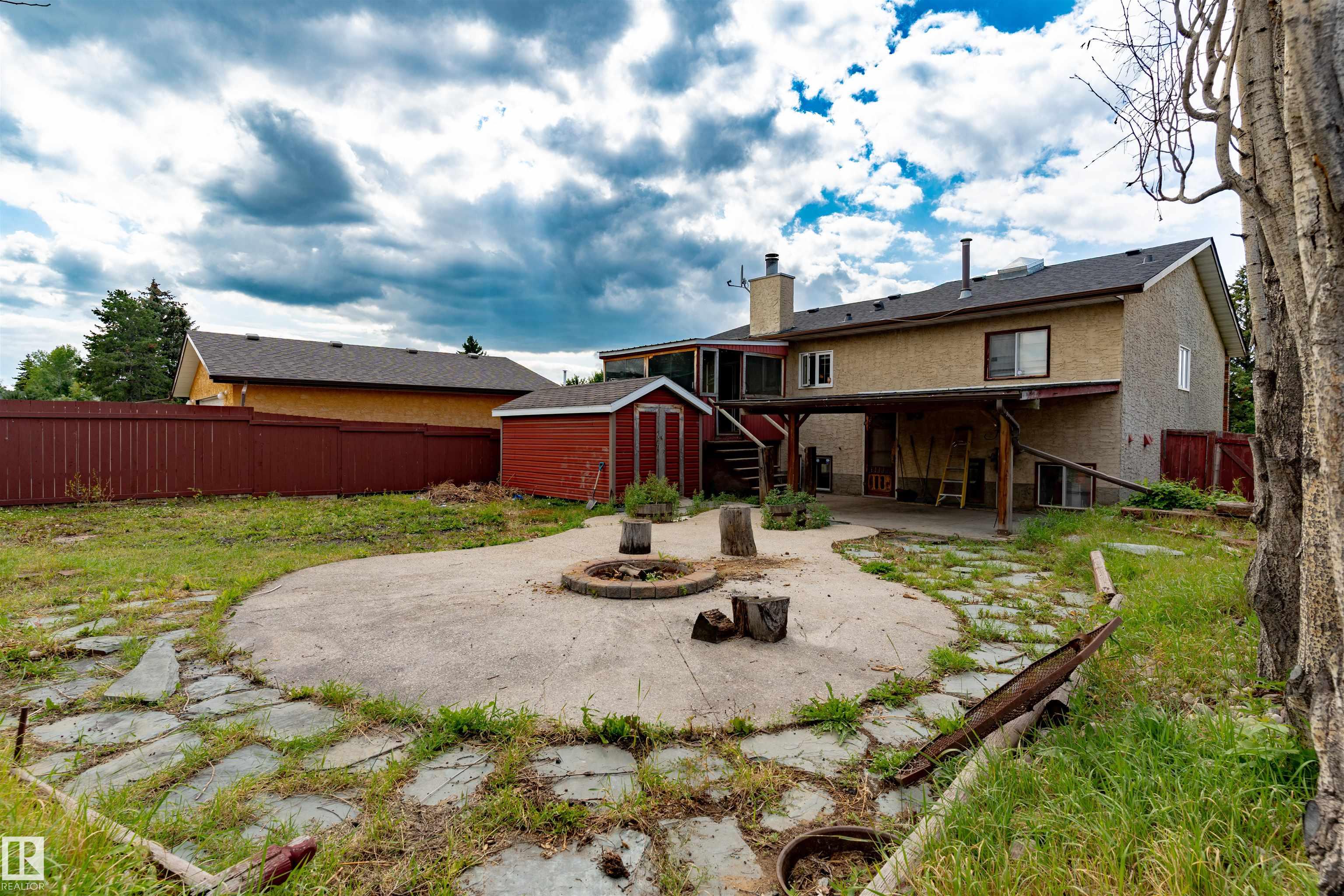 Welcome to this stunning 3-bedroom bi-level tucked away in a quiet cul-de-sac! With a bright, spacious floor plan and a prime location, this is the perfect family home. The large peninsula kitchen features granite countertops and ample workspace. The dining area is ideal for entertaining, with patio doors opening to a covered deck that doubles as a cozy sunroom. The living room boasts vaulted ceilings and large windows for natural light. The primary suite includes a walk-in closet and private 3-piece ensuite, with two more bedrooms and a 4-piece bath completing the main floor. The finished basement offers a large family room with a wood-burning fireplace?perfect for relaxing or hosting. Enjoy the covered deck overlooking the backyard, plus an attached garage and huge rear pad for RVs. Shingles replaced in 2024. Close to schools, parks, shopping, and the Anthony Henday.
