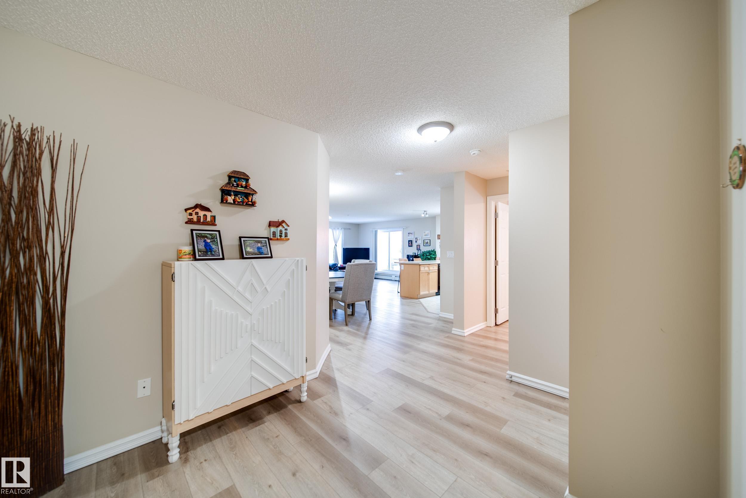 OVER 1000 SQFT MAIN FLOOR CORNER UNIT FEATURING A VERY OPEN FLOOR PLAN, 2 BEDS, 2 BATHS AND 2 TITLED PARKING STALLS. (1 underground and 1 surface) This well managed building offers the perfect starter home or investment opportunity, located in Edmonton's SE this property features easy access to all amenities. The unit is bright, well laid out and because it is a corner unit you get more light and less neighbours. You will find new floor and paint and be overall impressed with the quality of the home. There is a large living room, dining nook and a kitchen that has plenty of cabinetry a island that is perfect for quick meals. Both bedrooms offer plenty of space with the primary have a walk through closet and a 4pce bath. This unit also comes with a 4'x8' storage cage for all the extra stuff you might have. Just minutes from all amenities, steps to parks and schools!