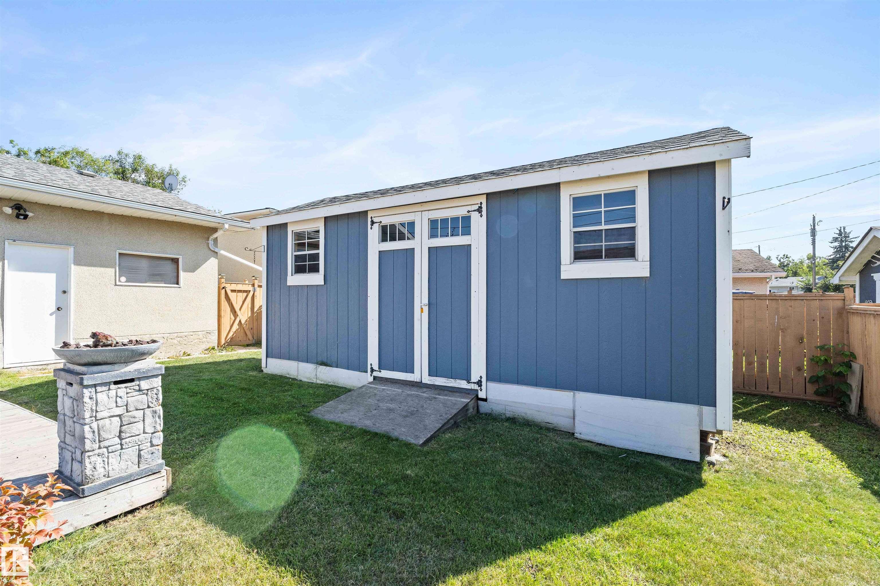 Pride of Ownership in this Lovely Family Home! This charming bungalow is set on a beautiful tree-lined street in the mature Sheridan community, just minutes from schools, parks, shopping, and recreation facilities. Offering 4 + 1 bedrooms/den, 2.5 bathrooms, and thoughtful updates, this home combines comfort, function, and value.The bright main floor features a welcoming living room with floor to ceiling windows, a spacious kitchen with ample cabinetry, and a large dining area for family meals. Three generous bedrooms complete the main level, including a clever design that connects the main bath to the primary ensuite for private access.The fully developed basement adds a large bedroom, an additional bedroom/den, a family room, storage, and a 3-piece bath with sauna.Outdoors, the fenced yard is designed for entertaining and relaxation with a large deck, gazebo, and landscaped space. A powered 20x10 shed with roll-up and double doors is ideal for hobbies or storage, and extra alley parking!