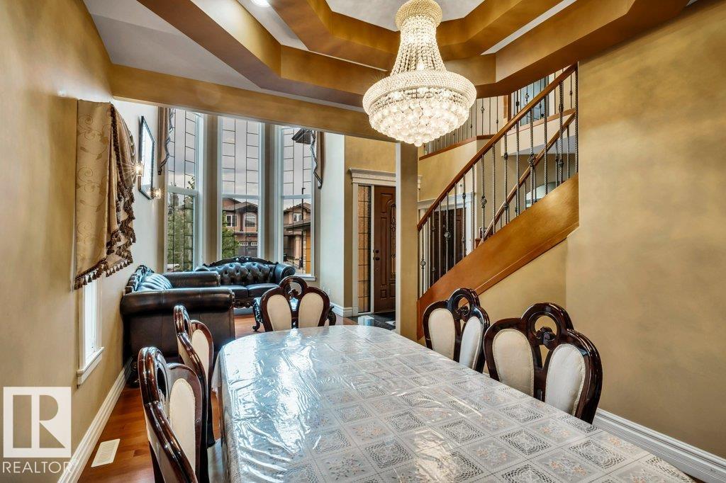 Welcome to Wild Rose! This stunning 3,051 sqft, 2-storey MANSION w/ 7 bedrooms, 5 1/2 baths, SECOND KITCHEN, SECOND DINING RM & SECOND PRIMARY BDRM! You are welcomed into a life of elegance highlighted by soaring 18ft CEILINGS & vast windows, CUSTOM-MADE LIGHT FIXTURES in the living room, leading you to the formal dining room featuring CUSTOM-DESIGNED TRAY CEILING! Enjoy family time in the Bonus Room offering a FEATURE WALL FIREPLACE w/ SOLID WOOD CABINETRY & overlooking the FULLY-FENCED & LANDSCAPED BACKYARD!The chef's dream kitchen is equipped w/ SOLID WOOD CABINETRY, GRANITE COUNTERTOPS, SS appliances & BREAKFAST NOOK leading to the DECK!. The main level includes a bedroom, laundry room & a full bath. Upstairs, the Bonus Room overlooks the main floor, while the luxurious primary suite boasts a 5-piece SPA ENSUITE, WALK-IN CLOSET, & A PRIVATE BALCONY! 4 more bedrooms on the upper flr. offers luxury for multi-generational living! The FF Bsmt. features the second dining & kitchen areas + 2 add. bedrooms!