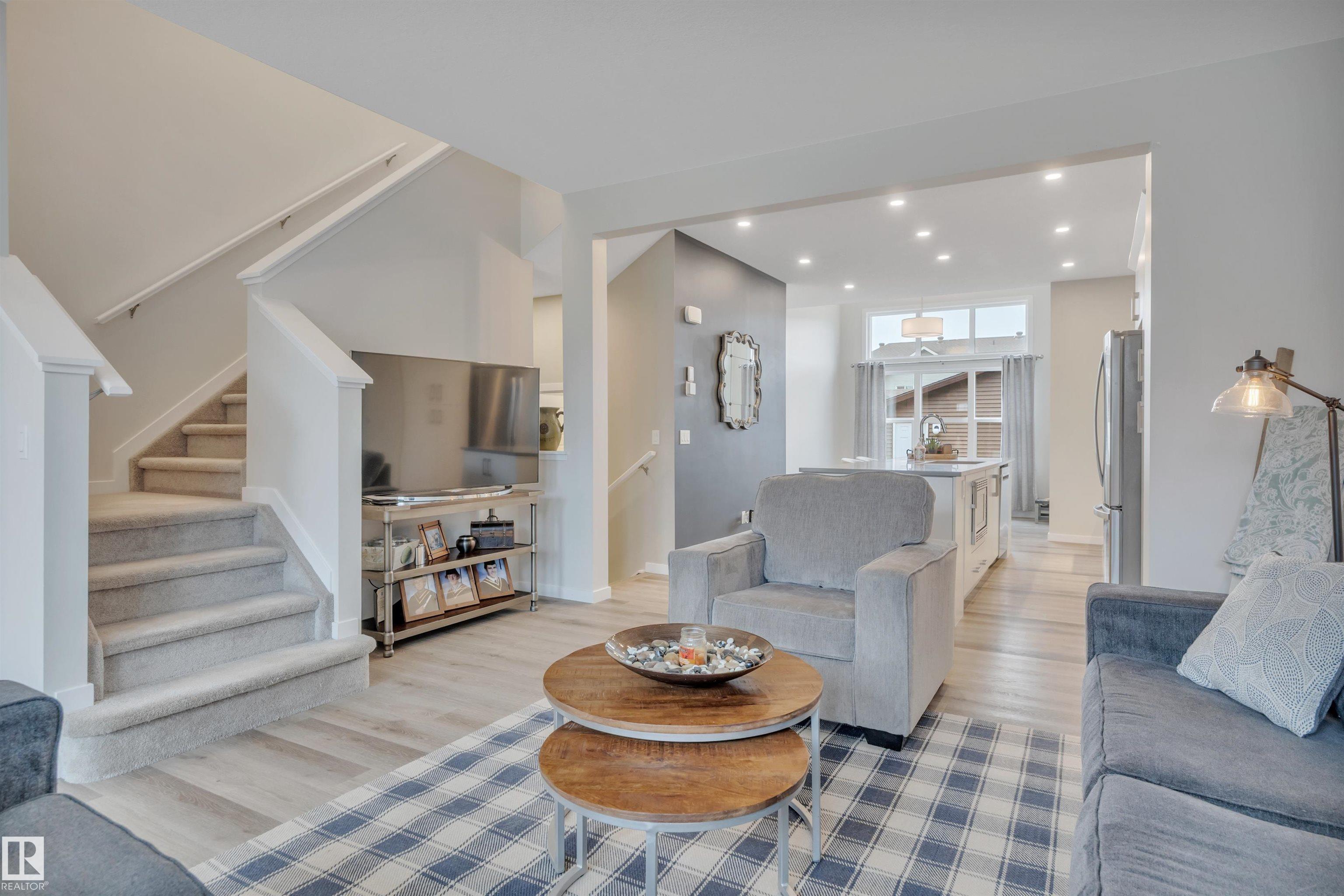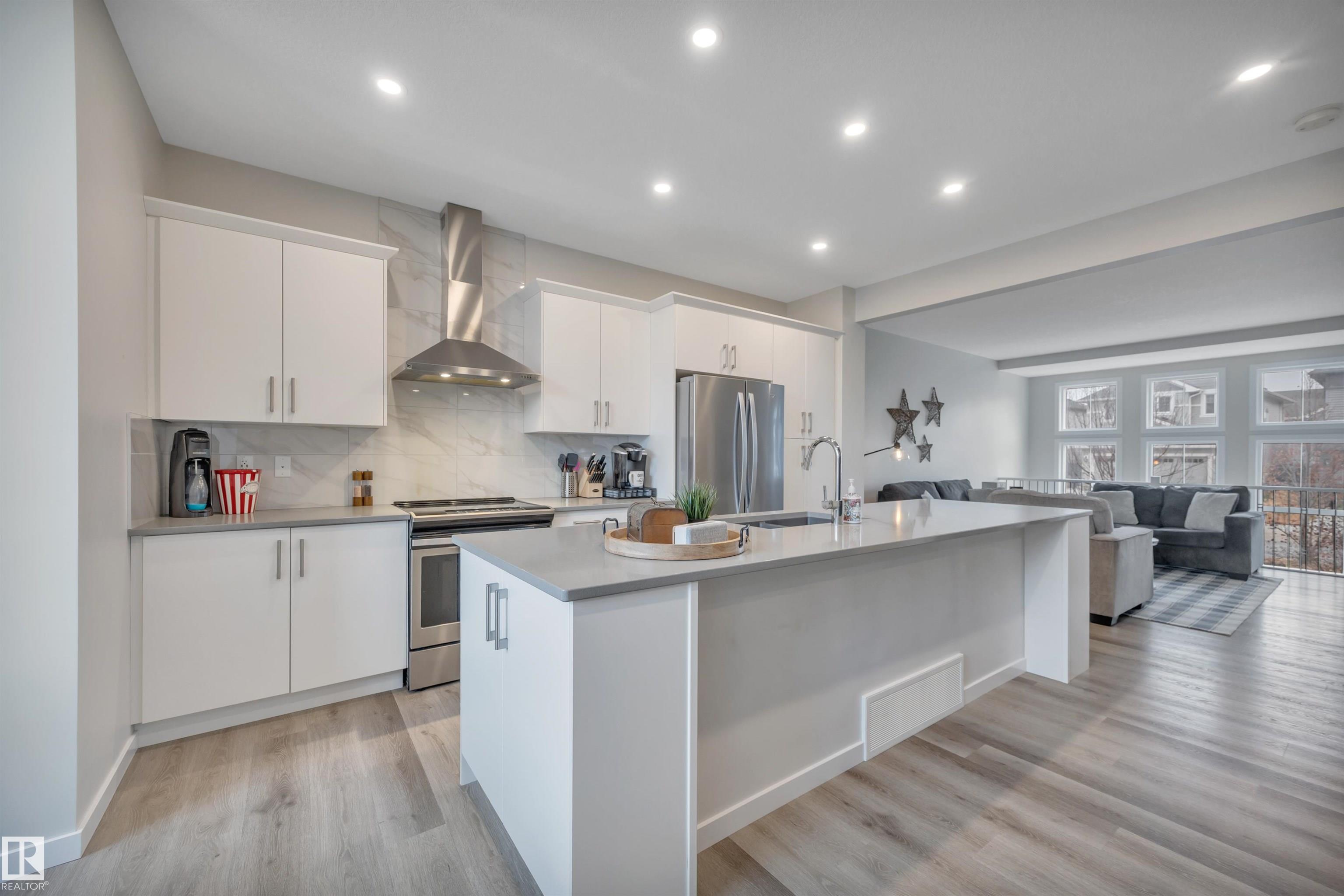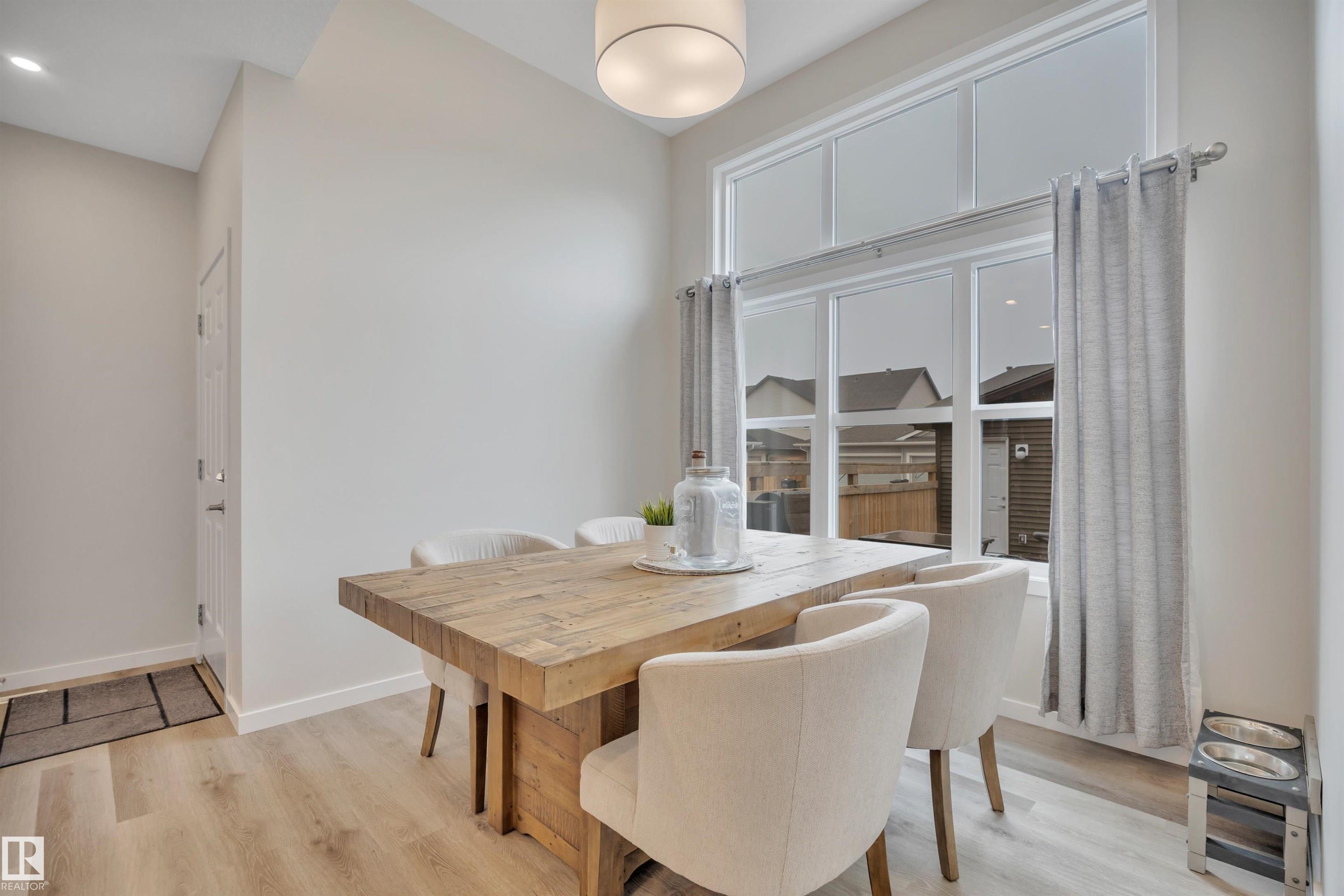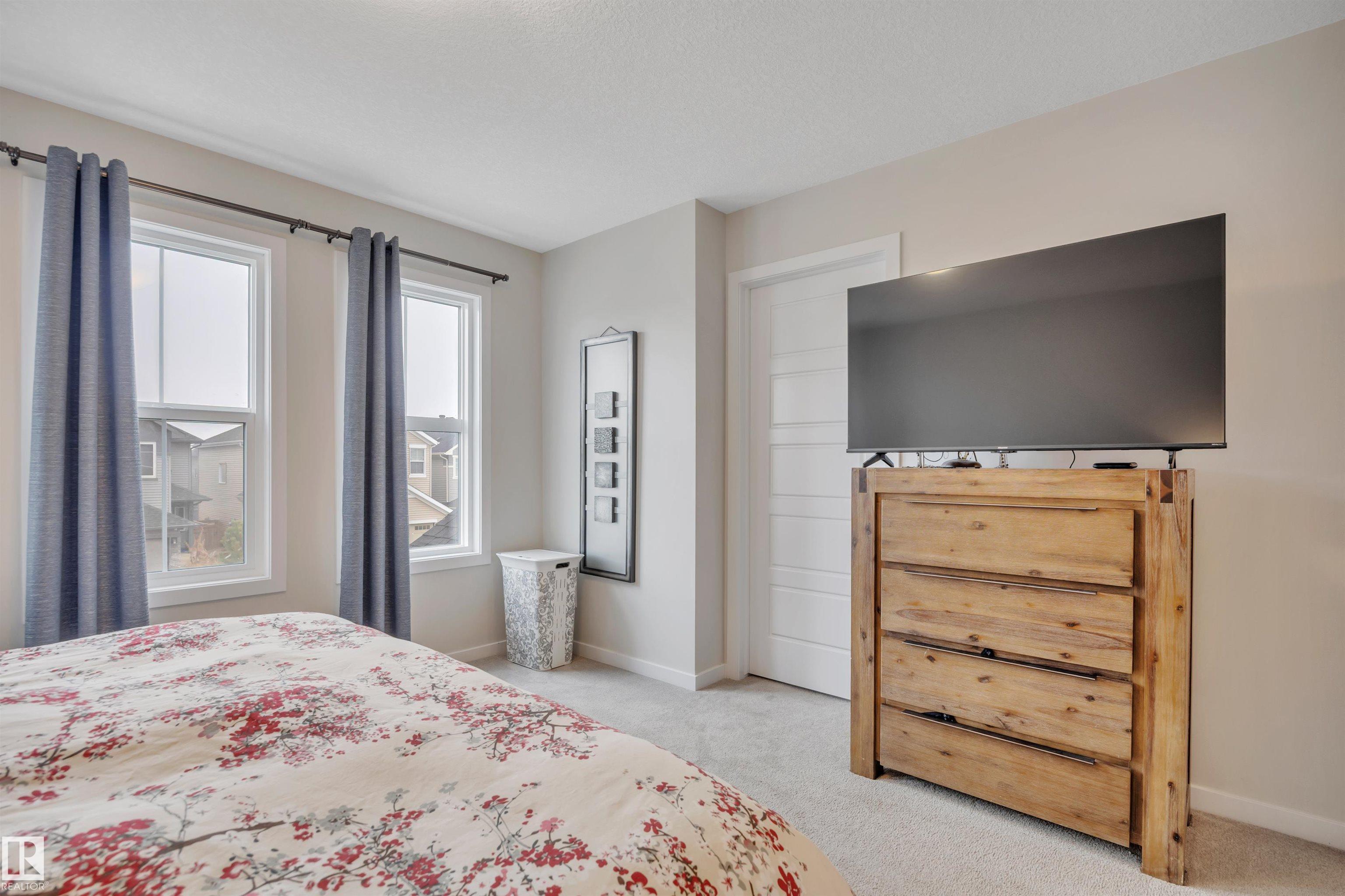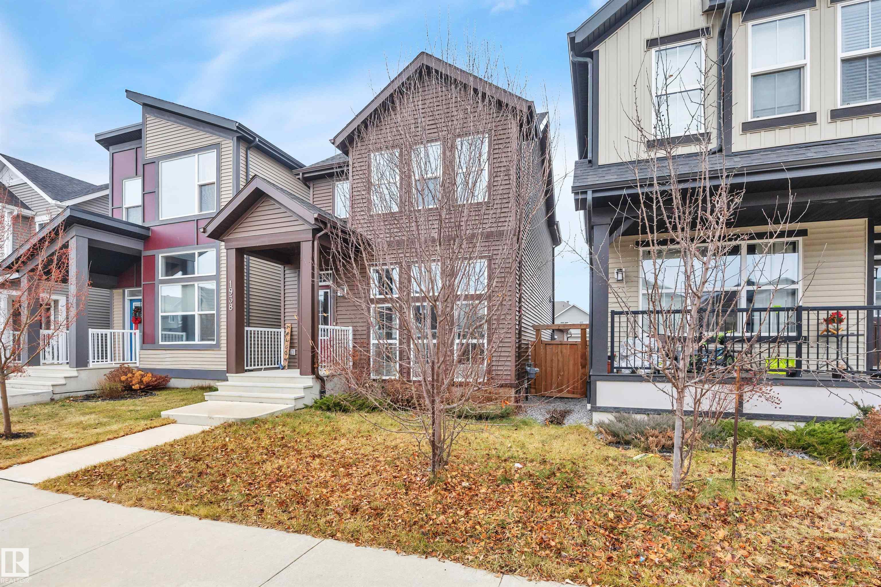 Stunning 2 story in Southwest Edmonton! Bright and grand feeling as you walk in with high ceilings and walls of windows facing East and West drenching this home with sun, white cabinets with quartz counters, large island and a dining area with 11 foot ceilings. Basement has 9' ceilings, a large rec room that is open to above bathing the basement in natural light as well. Primary bedroom has large windows, walk in closet and en suite. Home totals 3 bedrooms, 2 and a half bathrooms and has room for another in the basement if you wish. This home also includes Air Conditioning, solar panels and a brand new double garage! If a hot tub is your wish the West facing deck has been built to carry one and electrical is installed and ready to hook up! This home is conveniently located 1 block from an elementary school, 3 blocks from a high school and rec centre, 4 blocks from shopping and has easy access to 41st ave.