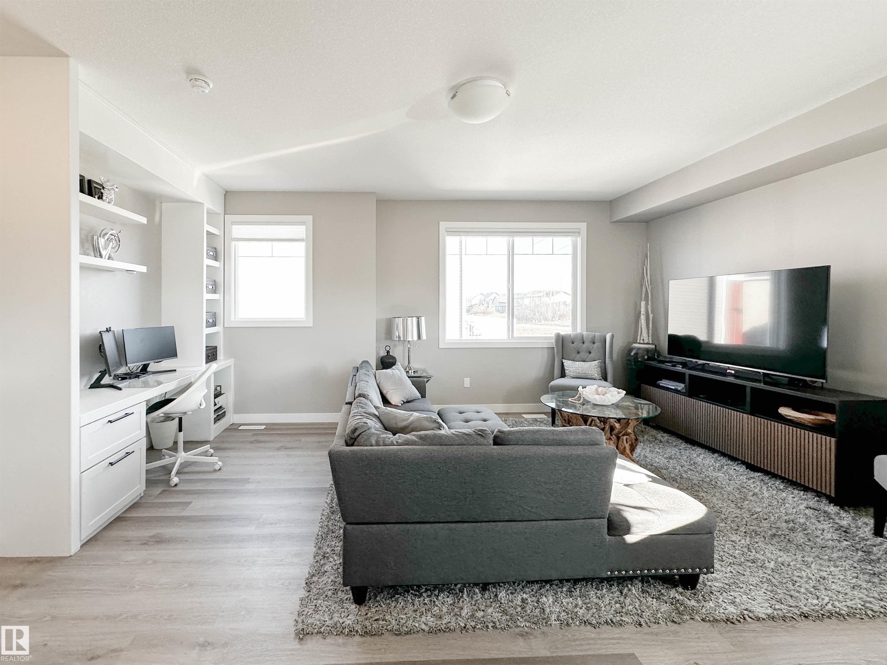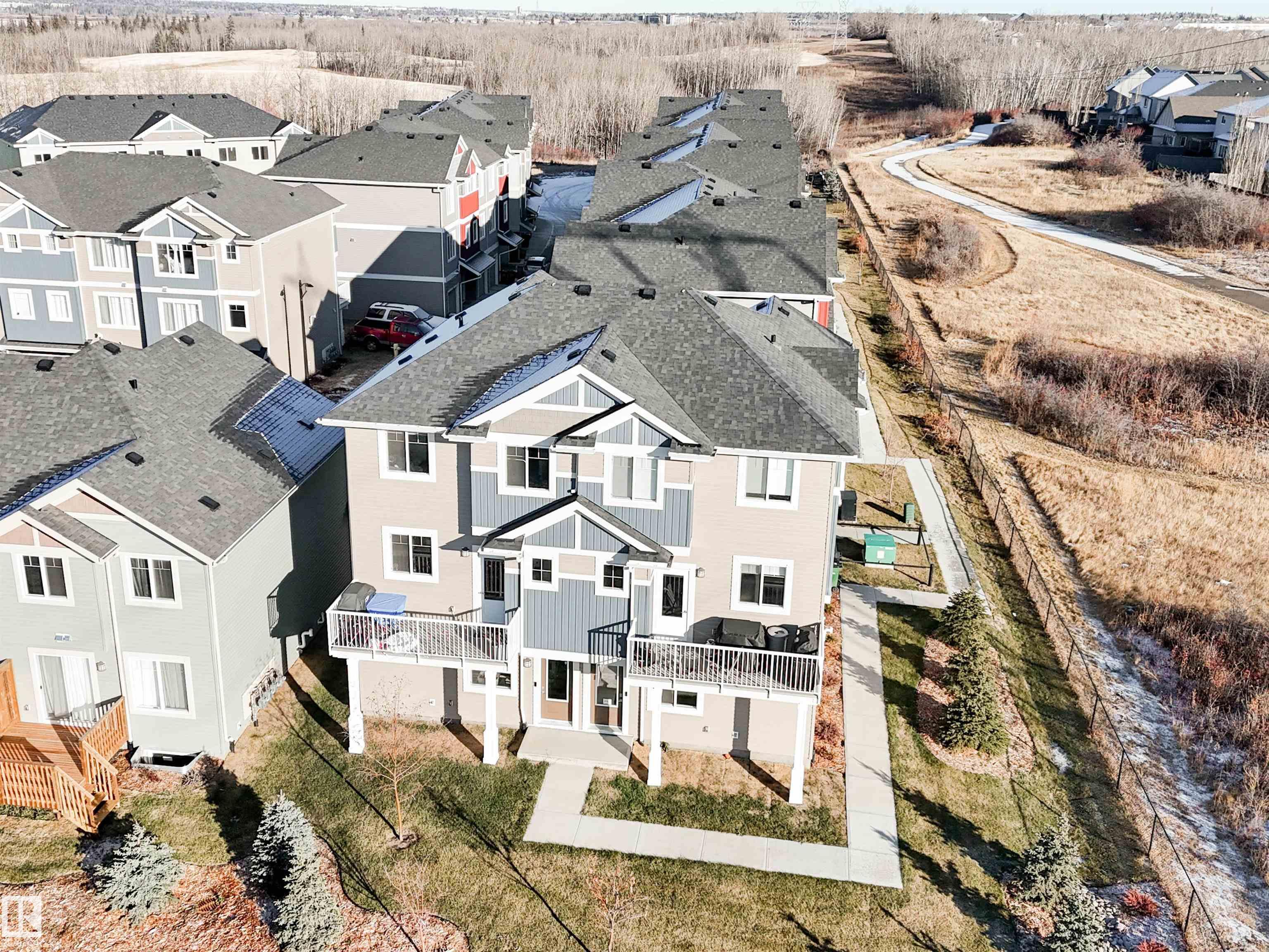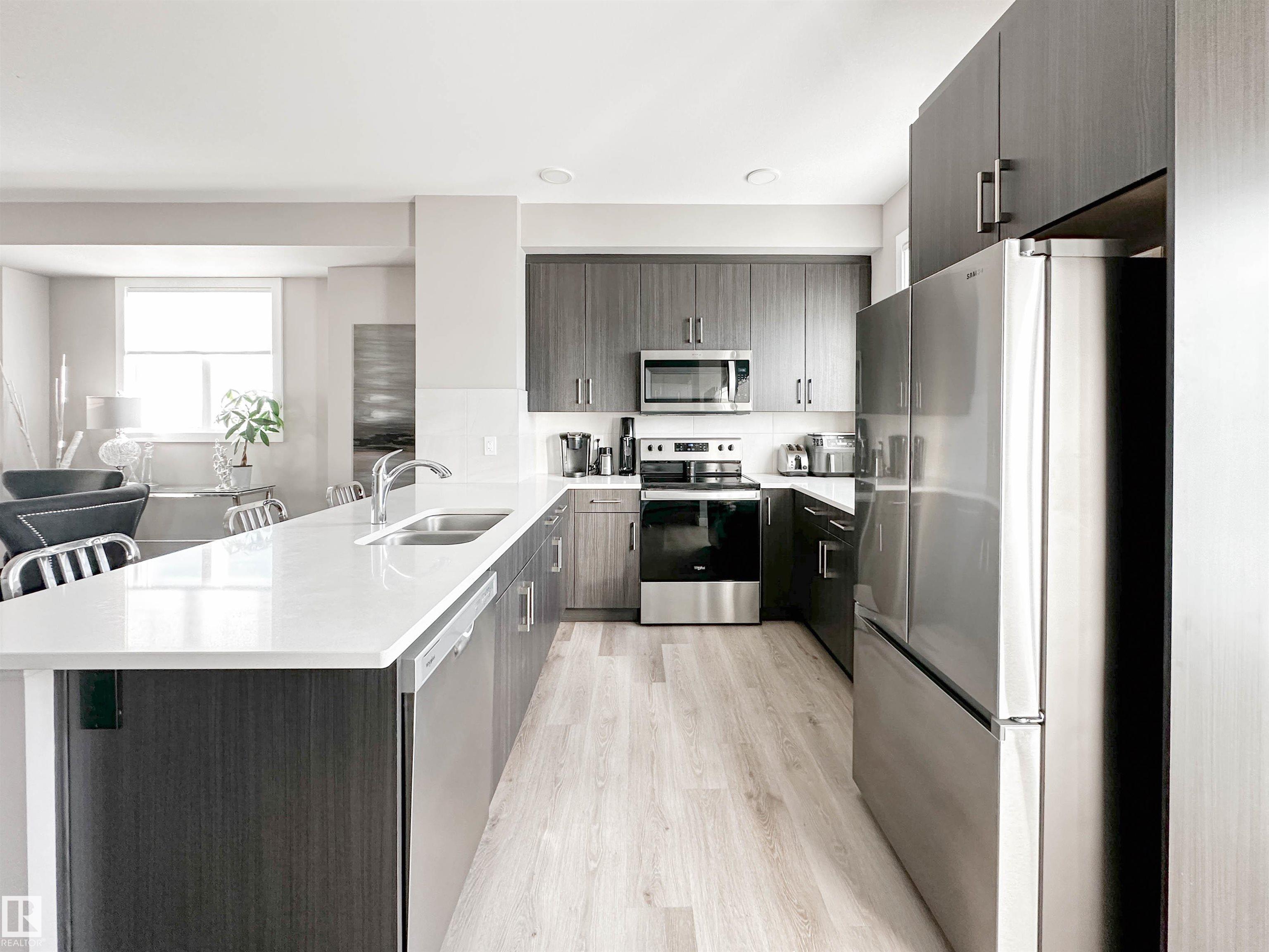 Meticulously maintained, this stunning 3-storey end-unit townhouse is just minutes south of St. Albert with quick access to Anthony Henday! The spacious entry leads to a mudroom with custom built-ins and access to the double heated garage. The bright open-concept main floor features a functional kitchen with ample workspace, large dining area, generous living room, and a custom built-in tech nook, perfect for work or study. Off the kitchen, enjoy a balcony backing onto green space and walking trails. Upstairs, the primary bedroom offers a walk-in closet and private ensuite, creating a peaceful retreat. Two additional well sized bedrooms are ideal for family, guests, or a home office. A convenient upper floor laundry area makes daily chores a breeze. This 3-bedroom, 2.5-bath home combines style, comfort, and low-maintenance living in desirable Northwest Edmonton.