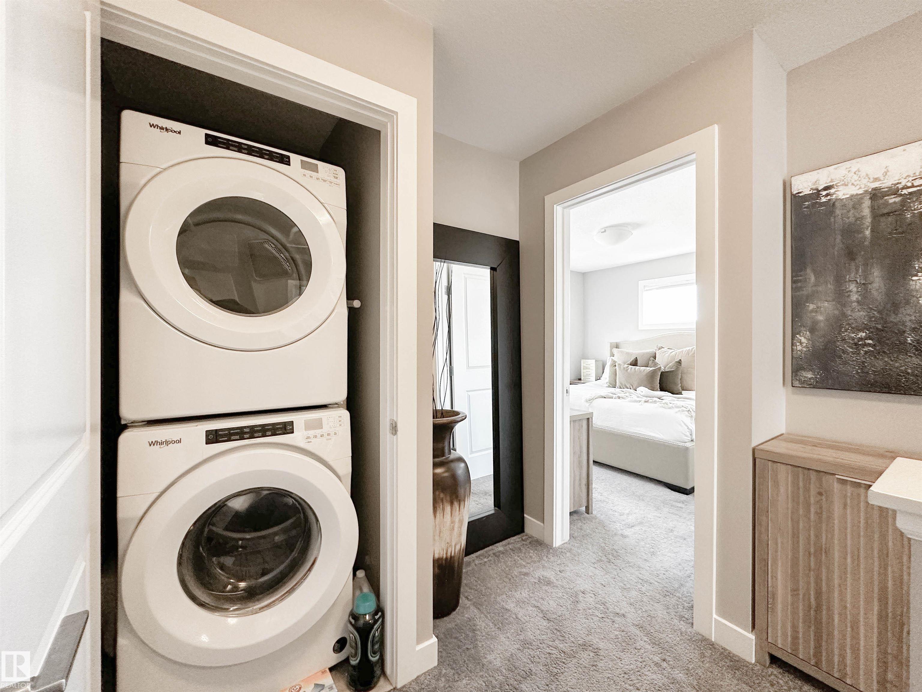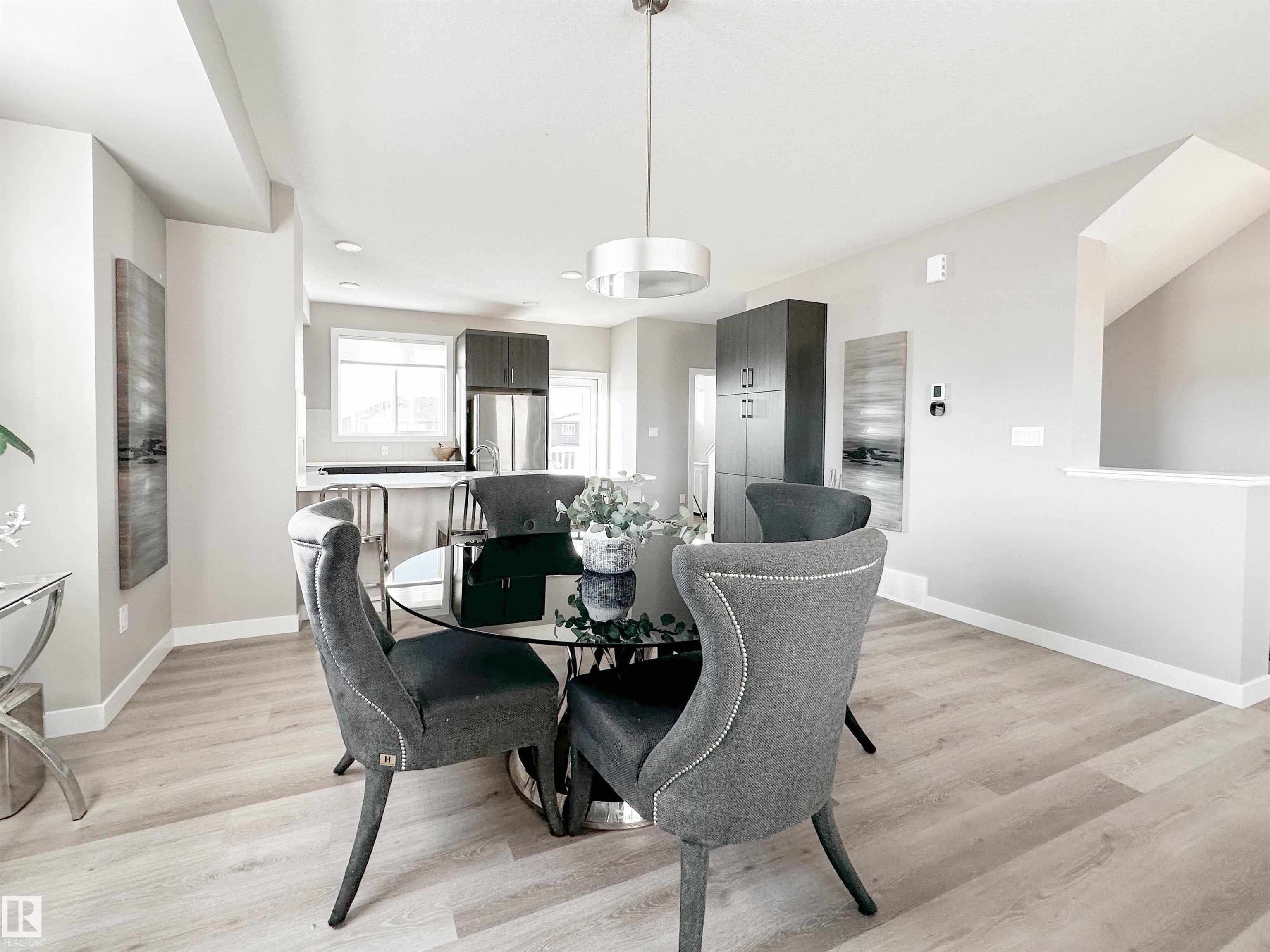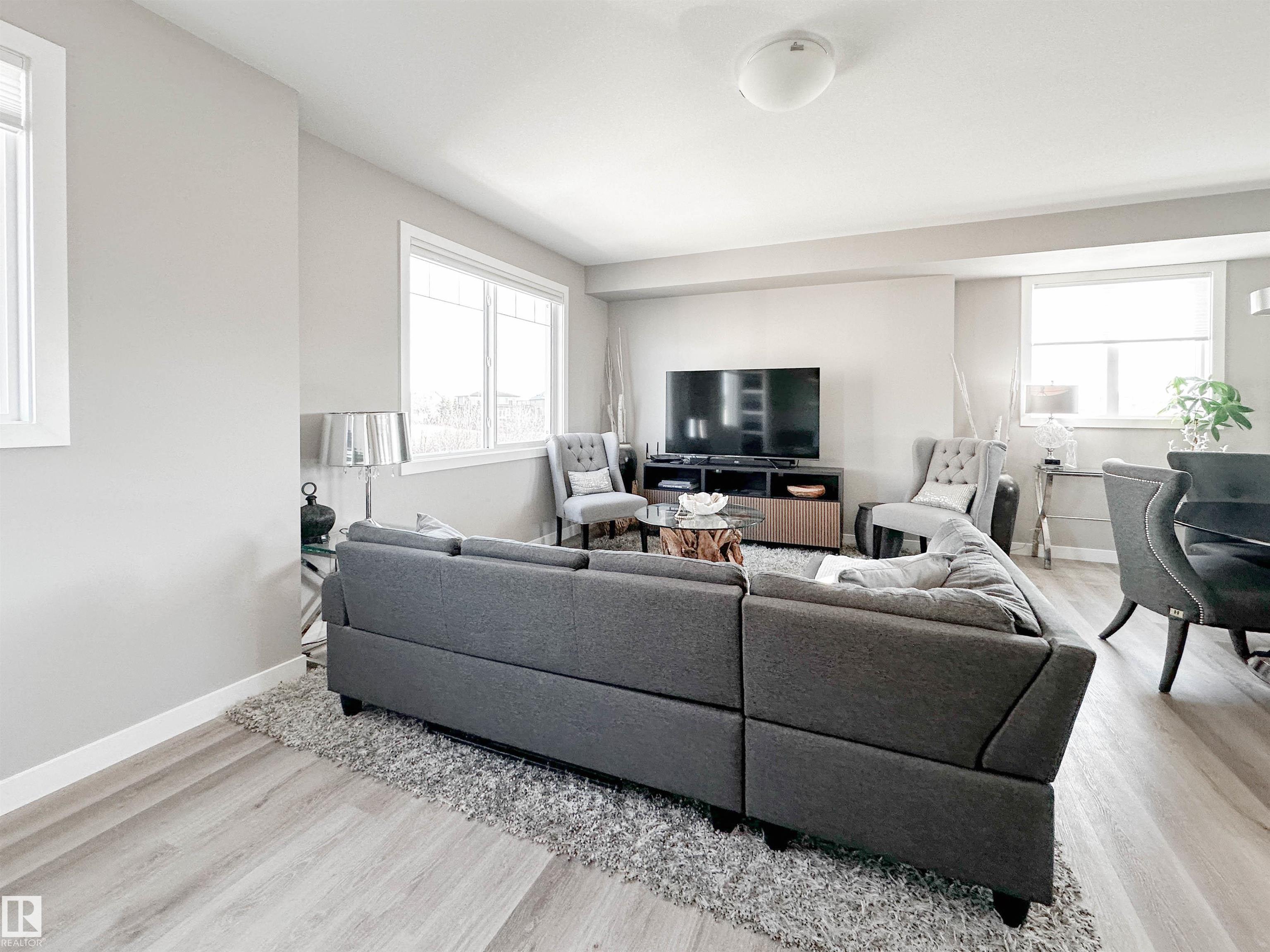 Meticulously maintained, this stunning 3-storey end-unit townhouse is just minutes south of St. Albert with quick access to Anthony Henday! The spacious entry leads to a mudroom with custom built-ins and access to the double heated garage. The bright open-concept main floor features a functional kitchen with ample workspace, large dining area, generous living room, and a custom built-in tech nook, perfect for work or study. Off the kitchen, enjoy a balcony backing onto green space and walking trails. Upstairs, the primary bedroom offers a walk-in closet and private ensuite, creating a peaceful retreat. Two additional well sized bedrooms are ideal for family, guests, or a home office. A convenient upper floor laundry area makes daily chores a breeze. This 3-bedroom, 2.5-bath home combines style, comfort, and low-maintenance living in desirable Northwest Edmonton.