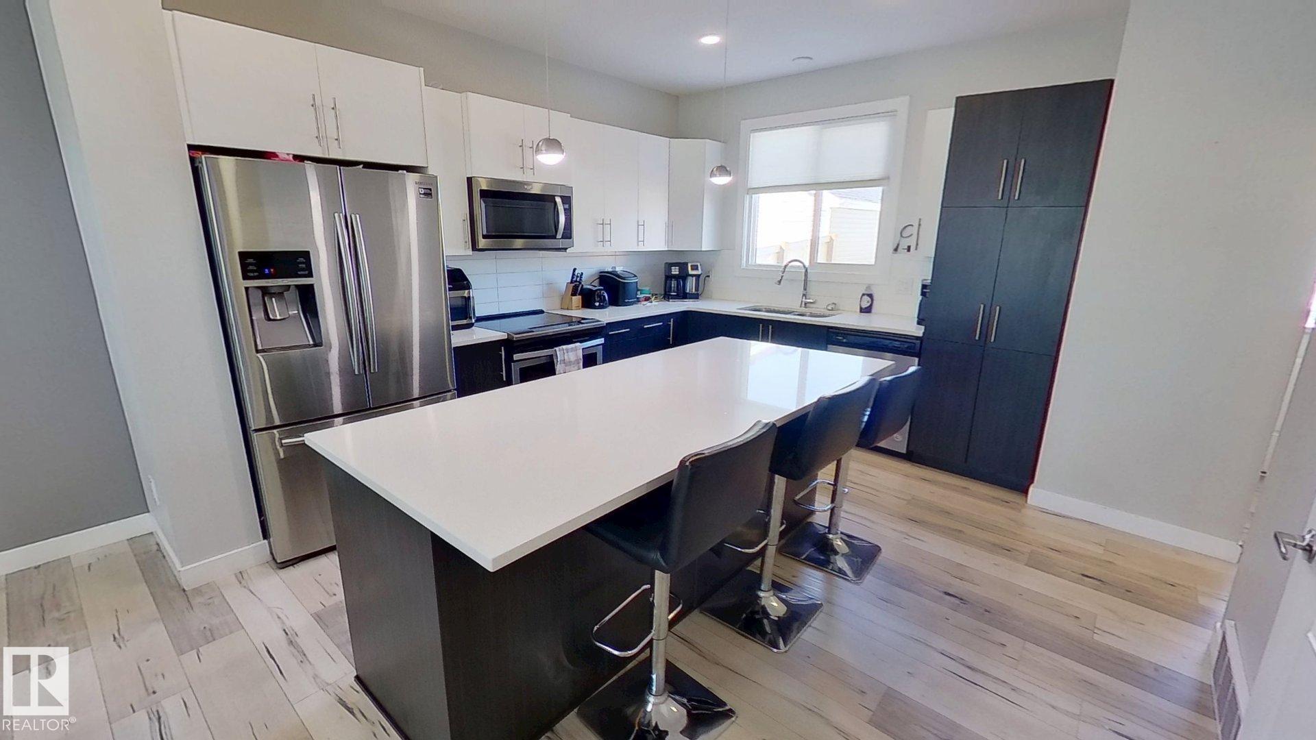 Beautiful Energy Star-rated 2-storey home in Stewart Greens, West Edmonton. This 4-bed, 3.5-bath home features 9ft ceilings on the main floor and basement. The open-concept main floor includes a gourmet kitchen with quartz island, stainless steel appliances, ample storage, and a half bath. Upstairs offers 3 spacious bedrooms, including a primary suite with dual sinks, quartz counters, walk-in closet, plus a full bath and upper laundry. The finished basement features high ceilings, a bedroom, living area, full bath, and laundry hookups. Outside, enjoy a large deck and detached garage with tire racks and storage. Just 8 min walk to a bus stop, 4 min drive to Lewis Farms Transit Centre, and 10 min to West Edmonton Mall. Quick access to Whitemud Dr, Anthony Henday Dr, and Stony Plain Rd. Close to shops, restaurants, parks, Lewis Estates Golf Course, Winterburn Elementary, and Jasper Place High School. Everything is within reach!