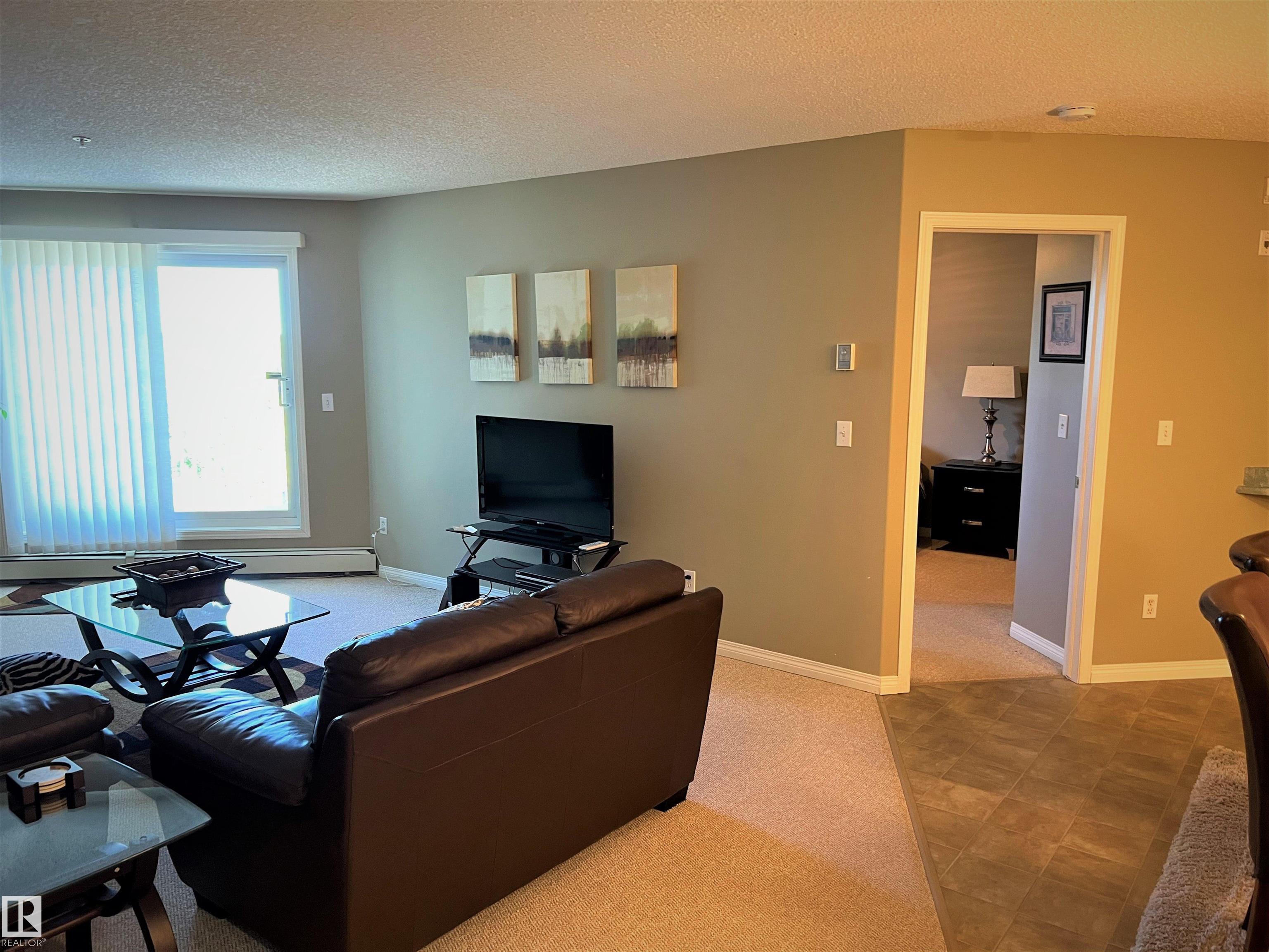 Welcome Home! This beautifully fully furnished 2 bedroom, 2 bathroom condo in Fort Saskatchewan is the perfect turnkey rentaljust move in and enjoy! Located steps from the River Valley, downtown amenities, scenic trails, parks, and shopping, this home offers both comfort and convenience. Enjoy a bright, open concept layout with a spacious kitchen overlooking the living room, plus in suite laundry for added ease. The primary bedroom features a walk-through closet and private ensuite, while the second bedroom sits next to another full bathroom ideal for roommates, guests, or a home office. Relax on your private balcony with a beautiful view and soak in the lifestyle this condo has to offer. All utilities, furnishings, and services included. Tenant may opt out of cable/internet. No pets per condo bylaws.