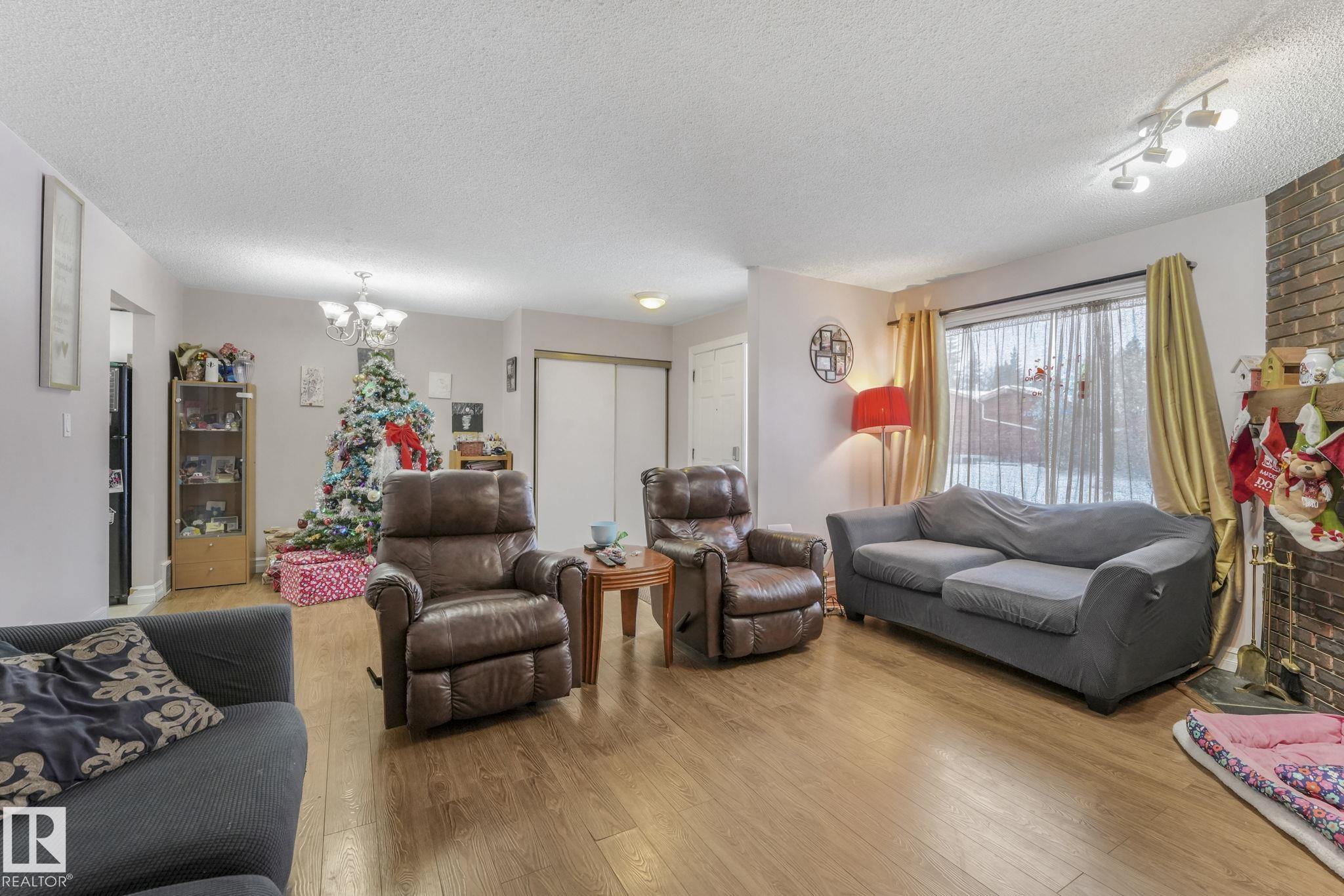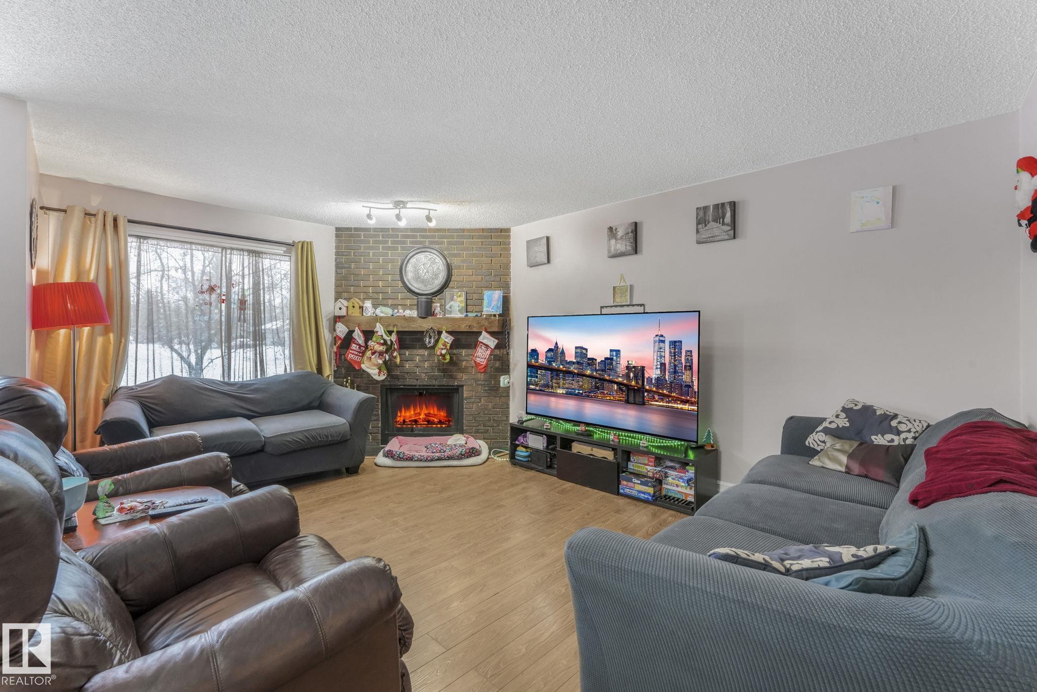 ATTENTION! First-time home buyers or Investors! This Spacious & Conveniently located 1442 sq.ft 2-storey End-Unit Townhome in the quiet, matured neighborhood of Sweet Grass checks all the boxes for a growing family. The functional main floor layout features a Spacious Living with brick fireplace nestled in a corner, a Cozy Dinning room, a 2pc bathroom and the kitchen which has ample cabinets & counter space for all your cooking needs. The upper-level boast of 4 bedrooms, a full bath which includes the primary with a bonus 2 piece ensuite. The full basement is unfinished and ready for your imagination. Unit comes with 2 assigned parking stalls, in close proximity to schools, LRT, malls, Whitemud and all major amenities.