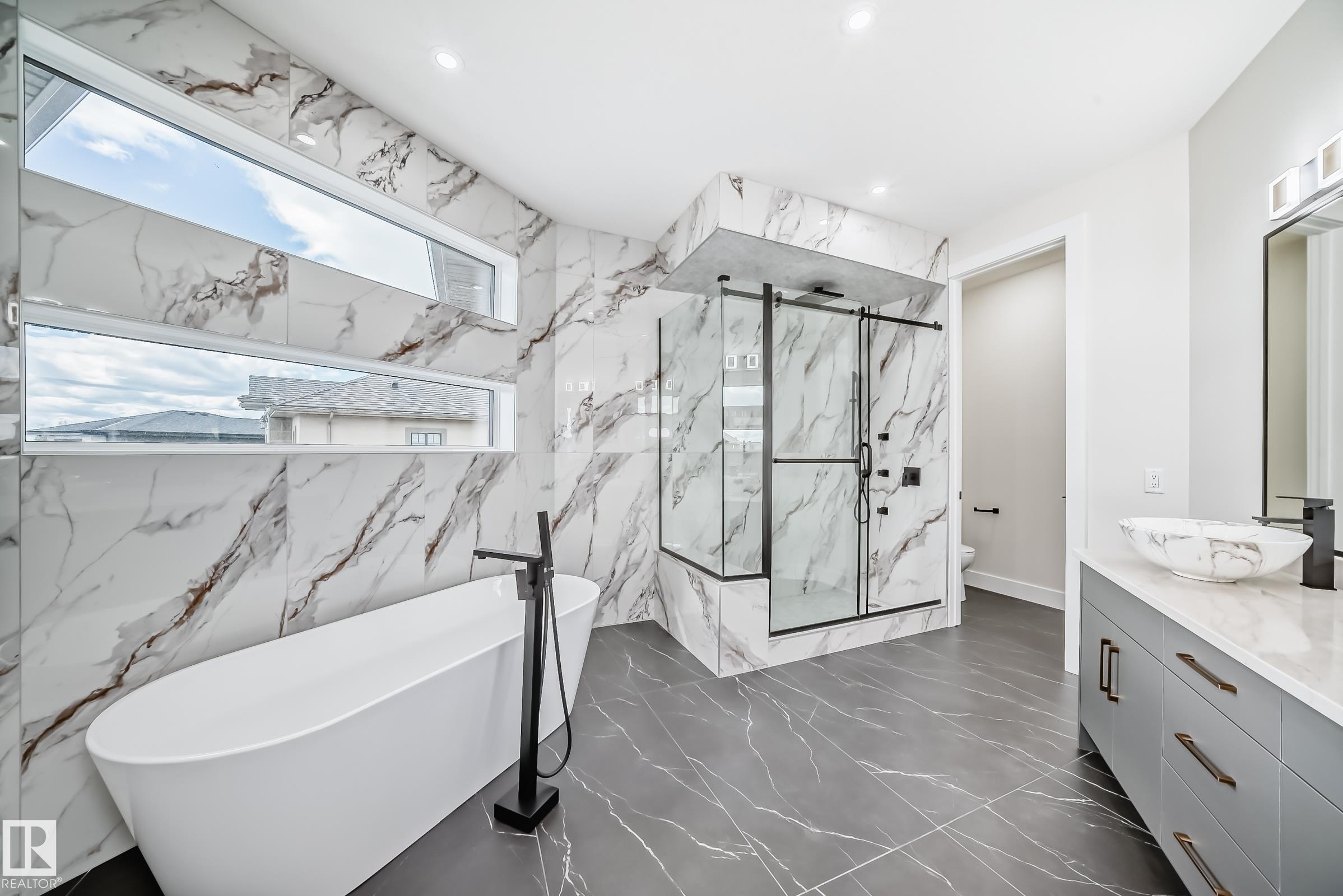 Outstanding Custom-Built Luxury Home in Royal Oaks Exceptional over 4,000 sq. ft. masterpiece, w/ 5 bedrooms and 6 full bathrooms, where every bedroom featuring its own ensuite. The main floor showcases soaring 18-ft ceilings in the living room, a chef-inspired kitchen with 10-ft ceilings, painted wood cabinetry, premium Taj Mahal quartzite countertops, a striking feature wall, and a spice kitchen with gas stove. A main floor den (or bedroom with closet) plus an additional bedroom with ensuite is ideal for family living or guests. Step outside to enjoy the covered balcony. Upstairs, find four spacious bedrooms, each with a private ensuite. The impressive primary suite boasts a stunning feature wall, private balcony, luxurious 5-piece spa ensuite, and much more.. The walk-out basement is designed with flexibility in mind, allowing for two separate suites?perfect for multi-generational living or future rental income. Oversized triple garage. This than a home?it?s a lifestyle of luxury, comfort & elegance.