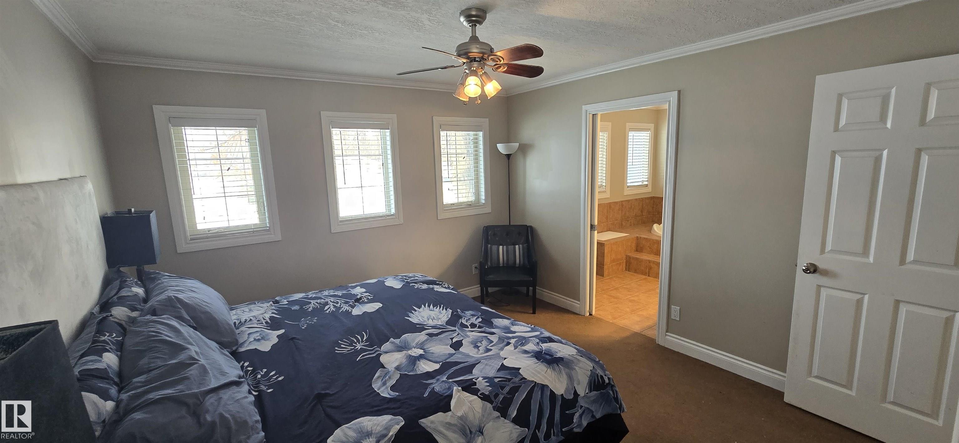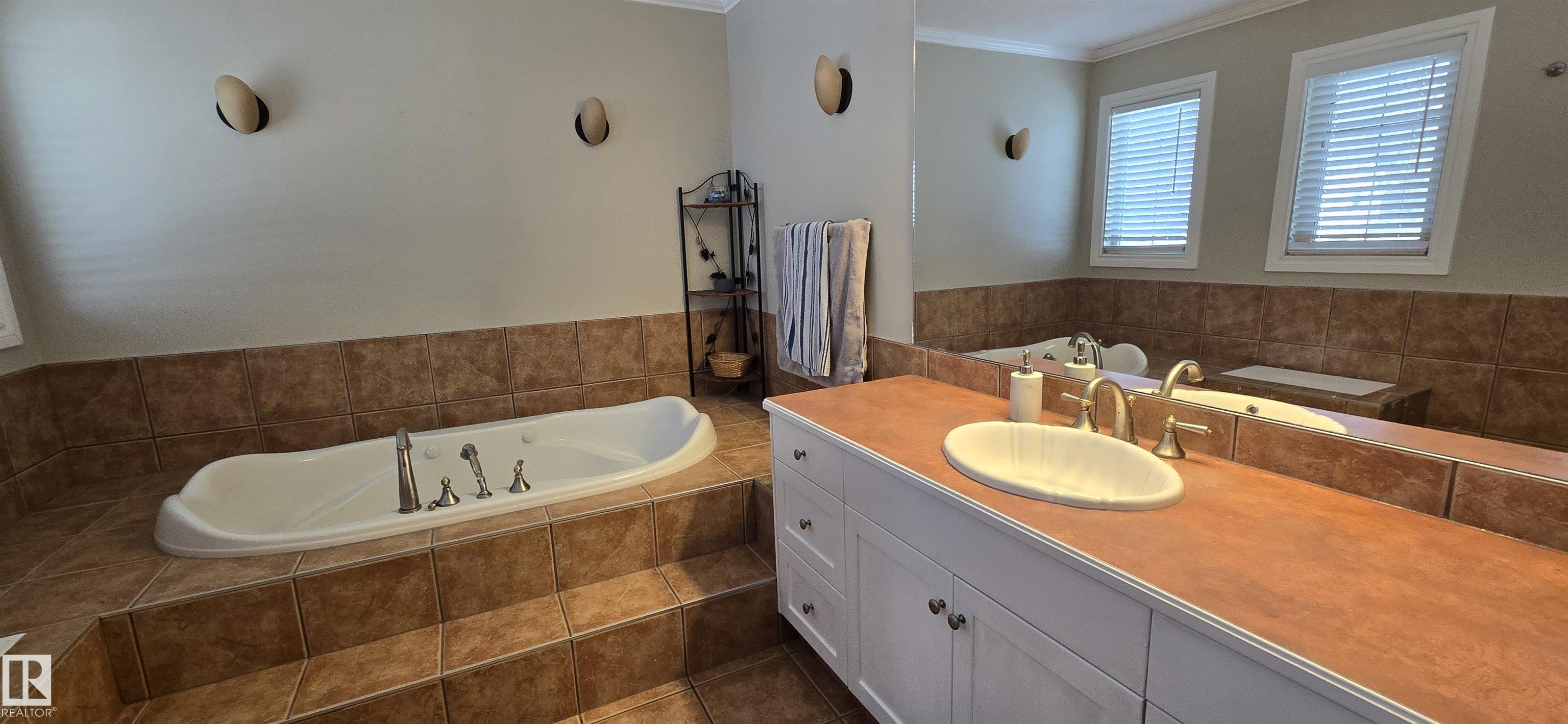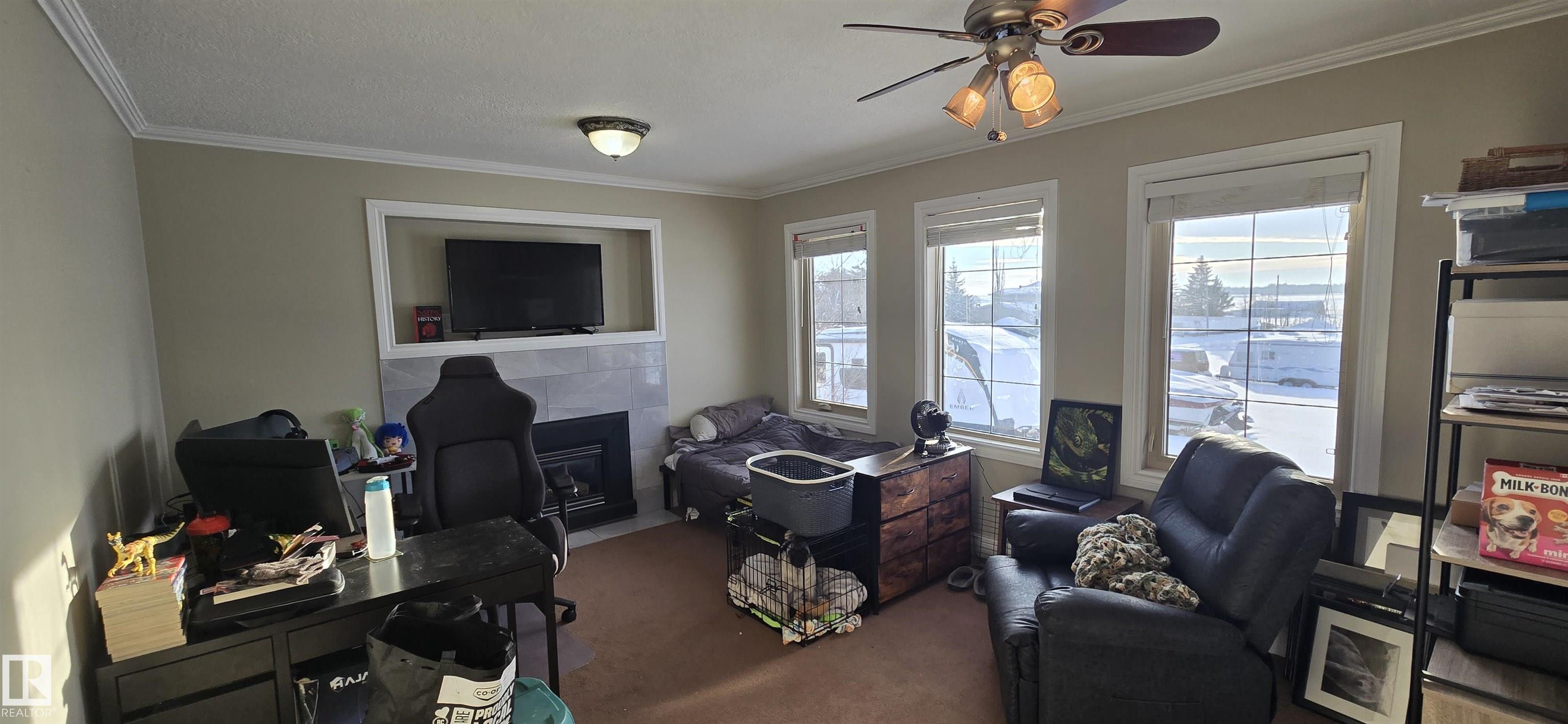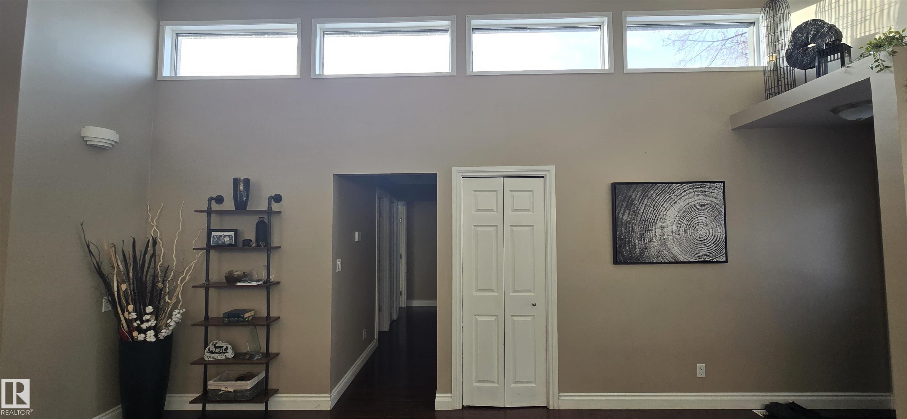 Spacious 5-bedroom family home on Vegreville's desirable south side, with stunning country views from the living room windows. Enjoy an open-concept living & dining area with vaulted ceilings, hardwood floors, and bright natural light?perfect for family gatherings. The modern kitchen offers stainless steel appliances, a large center island, coffee/bar nook, and direct access to the back deck.Main floor features two large bedrooms: primary with ensuite & walk-in closet; second with country views & cozy fireplace. Plus a beautiful main bath with tiled walk-in shower, spacious back entry, and 2-pc powder room. The finished basement includes three good-sized bedrooms, a large family room, 2-pc bath, laundry, and office area.Set on a fully landscaped 8,498 sq ft lot with double detached garage, front & rear drive access, RV parking, and room for outdoor enthusiasts.