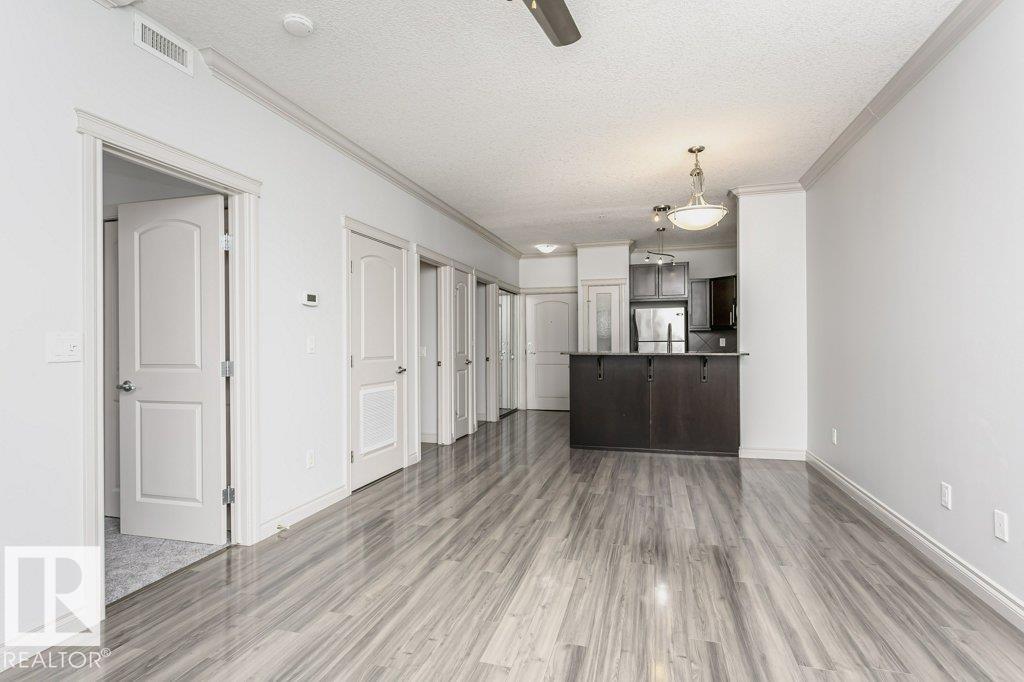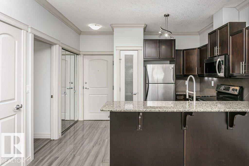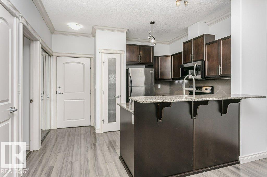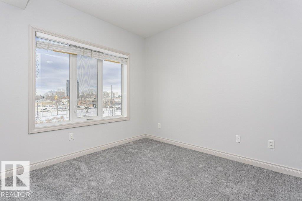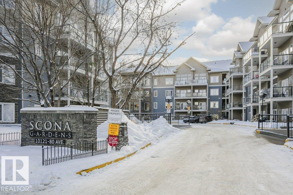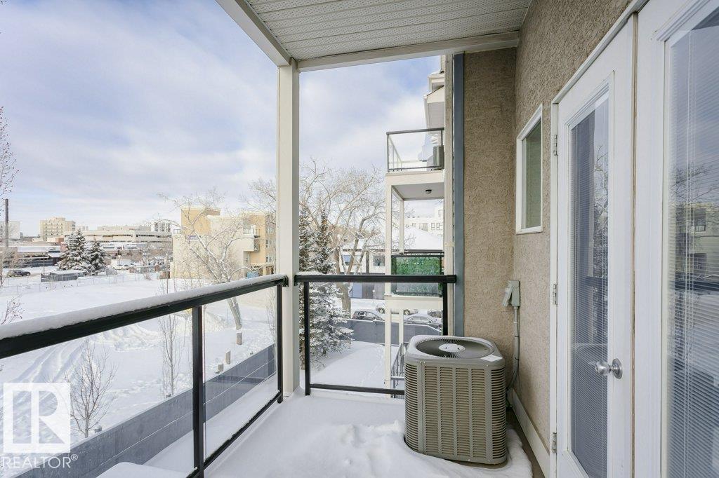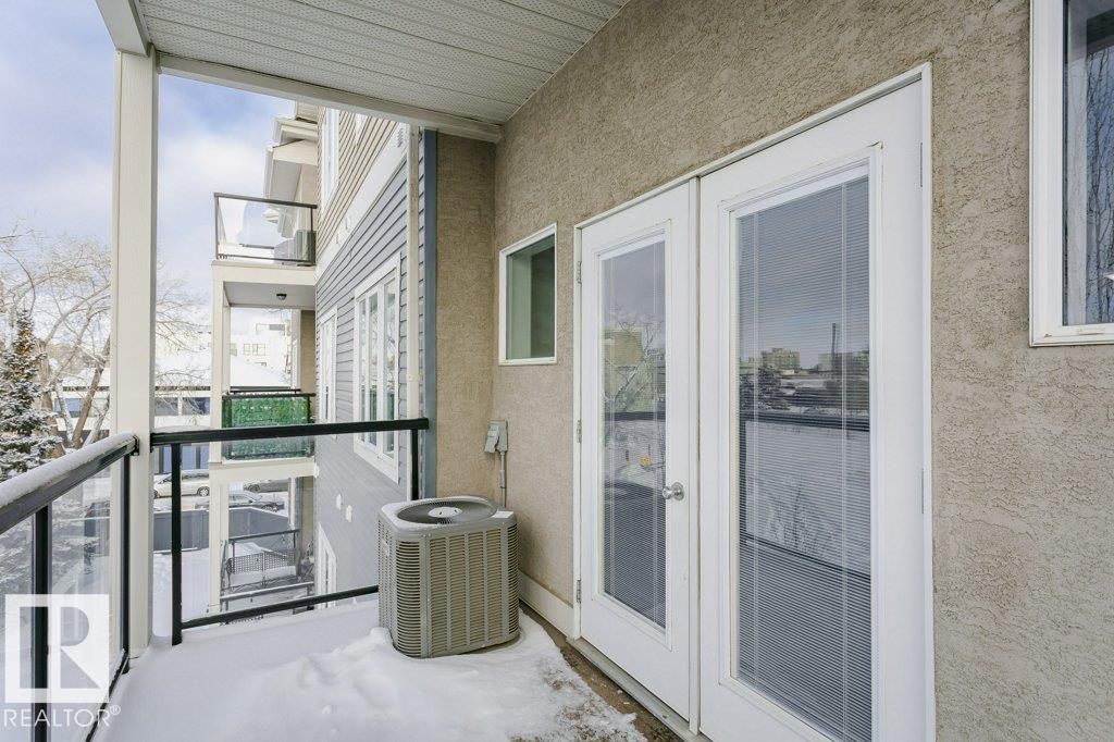 Welcome to this stylish one-bedroom, third-floor condo featuring a bright open floor plan with 9 ft ceilings that create a spacious, airy feel. The modern kitchen is finished with dark cabinetry, granite countertops, and stainless steel appliances, ideal for both everyday living and entertaining. The bedroom offers brand-new carpet, while the additional office space provides flexibility for working from home or extra storage. Enjoy year-round comfort with central air conditioning, in-suite laundry, and a large private balcony perfect for relaxing. This unit includes a secure underground parking stall with storage attached, adding extra convenience. Located in the heart of Whyte Avenue, you?re minutes from the University of Alberta, downtown, shopping, dining, and public transportation. The well-maintained building features excellent amenities, including a fitness room and car wash, making this an outstanding opportunity for professionals, students, or investors seeking vibrant urban living.