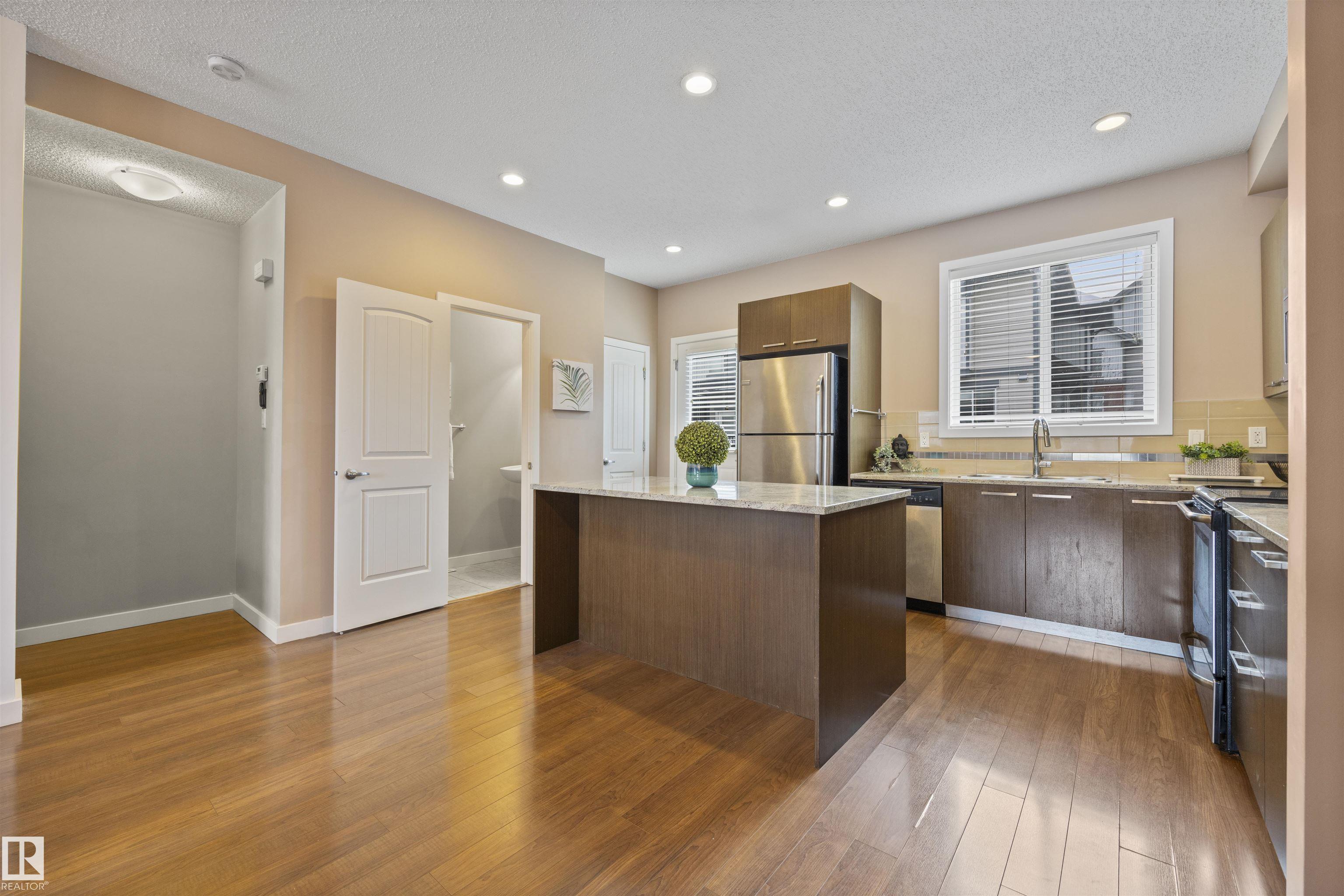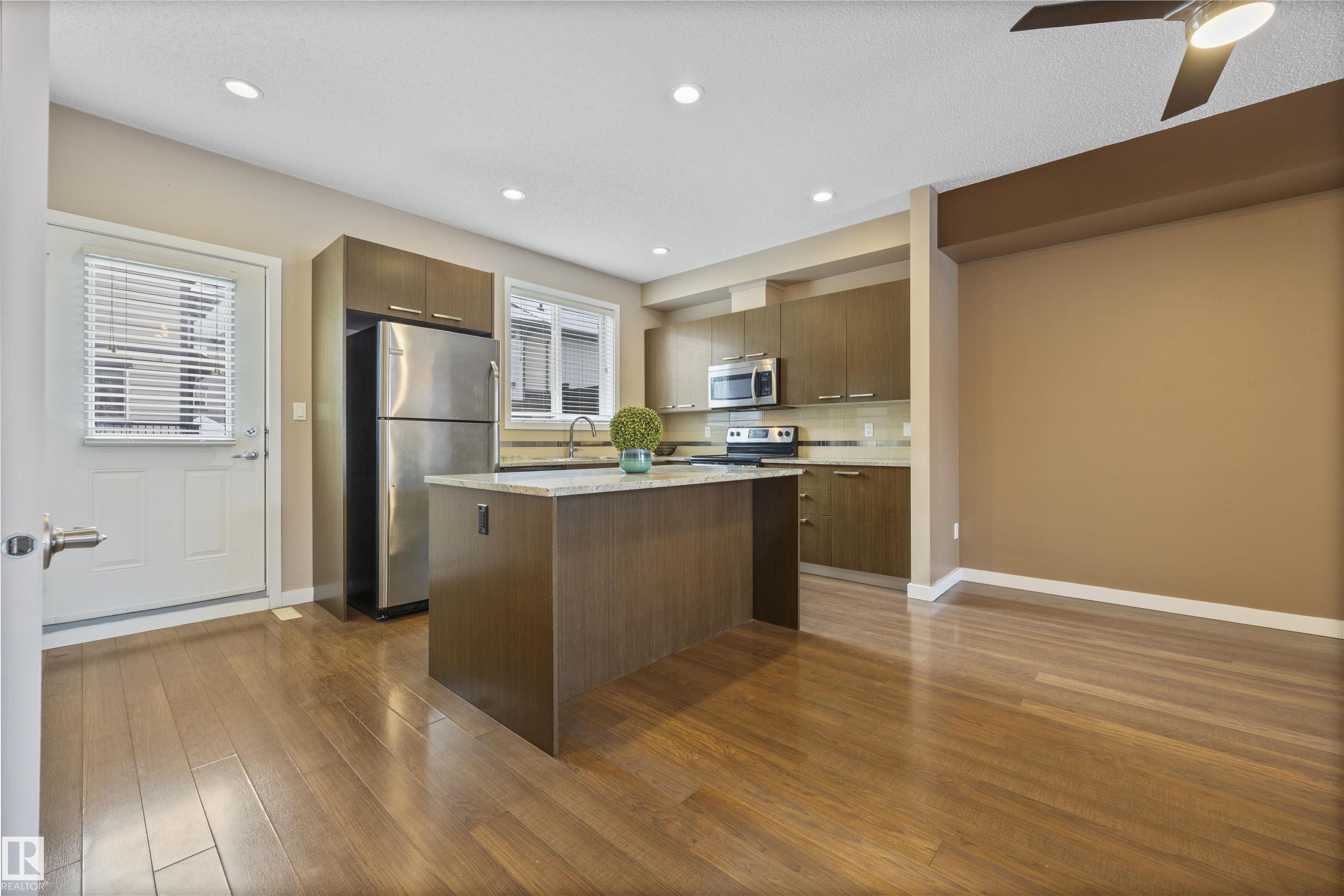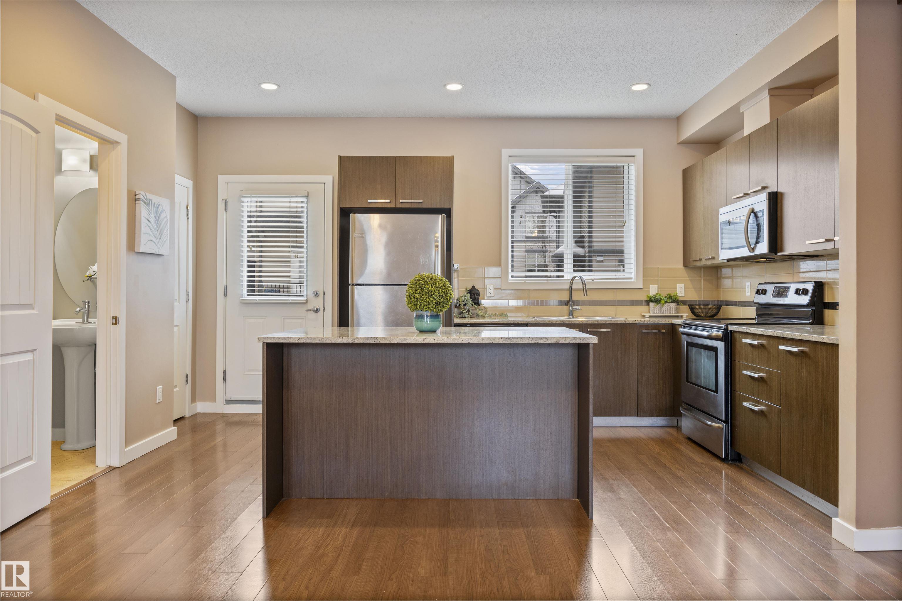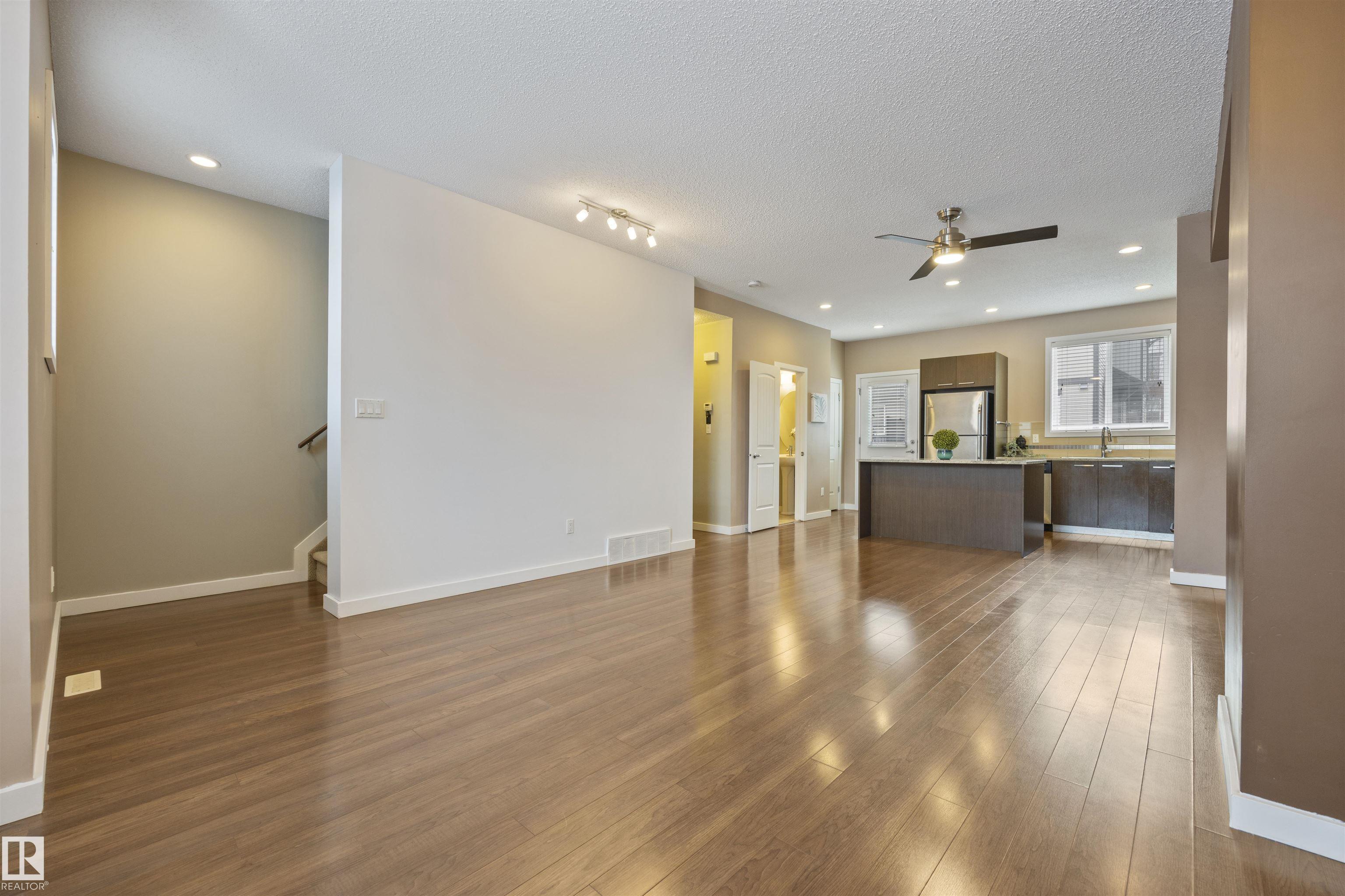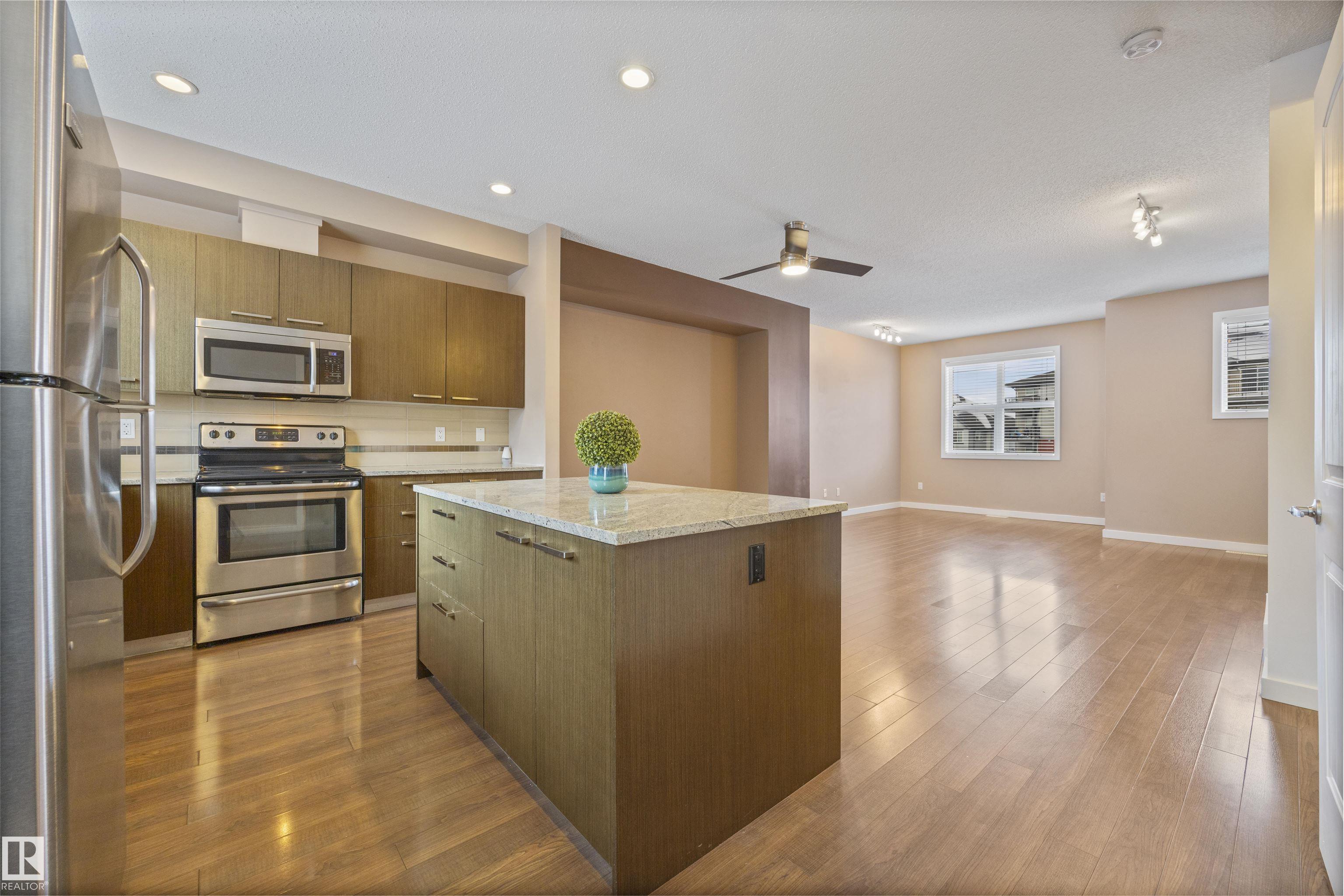 This spacious 3-storey townhouse offers 3 bedrooms, 2.5 bathrooms, and a double attached garage, providing ample room for families or professionals seeking comfort and functionality. The bright, open-concept main living area is ideal for both everyday living and entertaining. The kitchen features granite countertops, soft-close cabinetry, stainless steel appliances, and a practical layout that flows seamlessly into the dining and living spaces. Step outside to the private deck with a gas hookup, perfect for summer barbecues and outdoor relaxation. The primary bedroom is a true retreat, complete with a 4-piece ensuite and his-and-hers closets. The additional bedrooms are well-sized and thoughtfully arranged across the upper levels, offering flexibility for family living, guests, or a home office. Residents enjoy access to a social clubhouse, adding extra value and convenience. Ideally located near parks, shopping, and Edmonton International Airport, this home combines modern design and generous space.