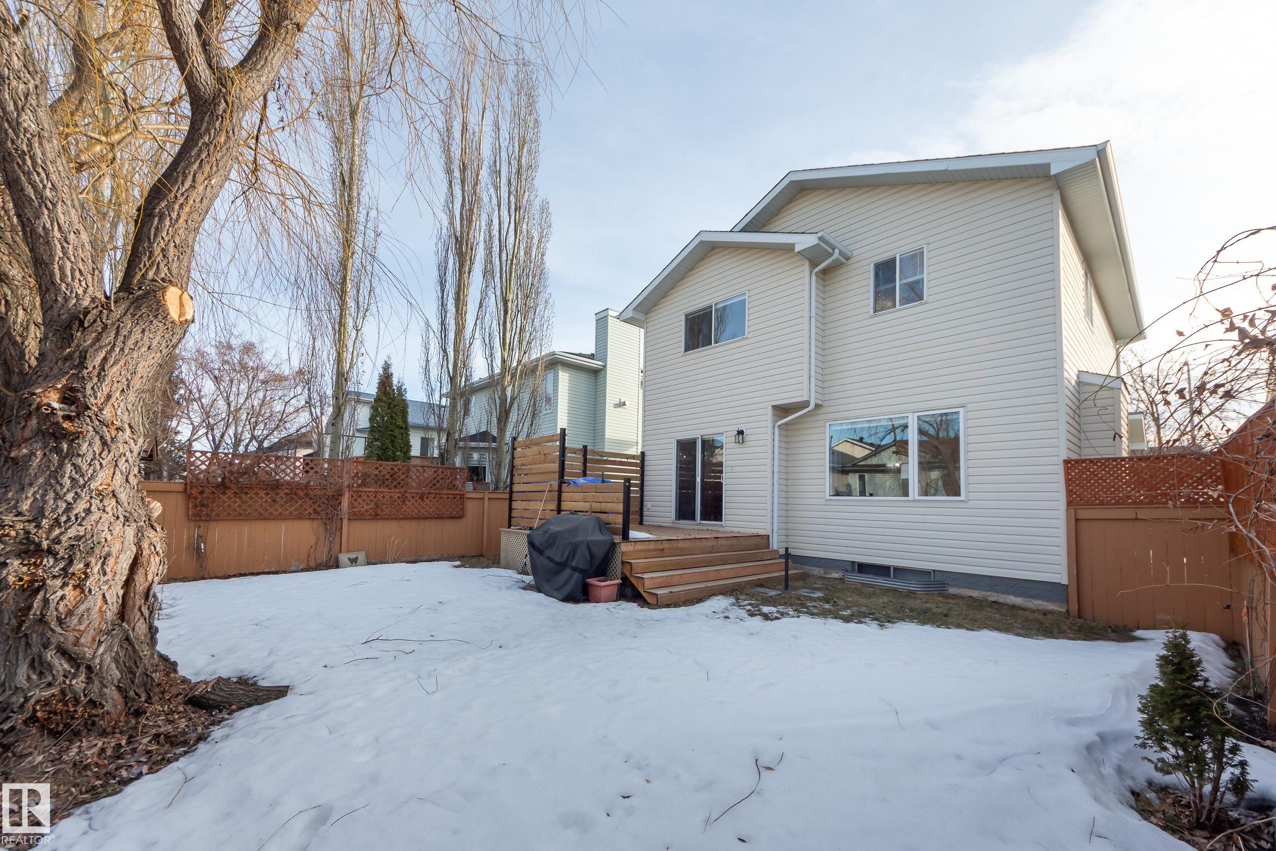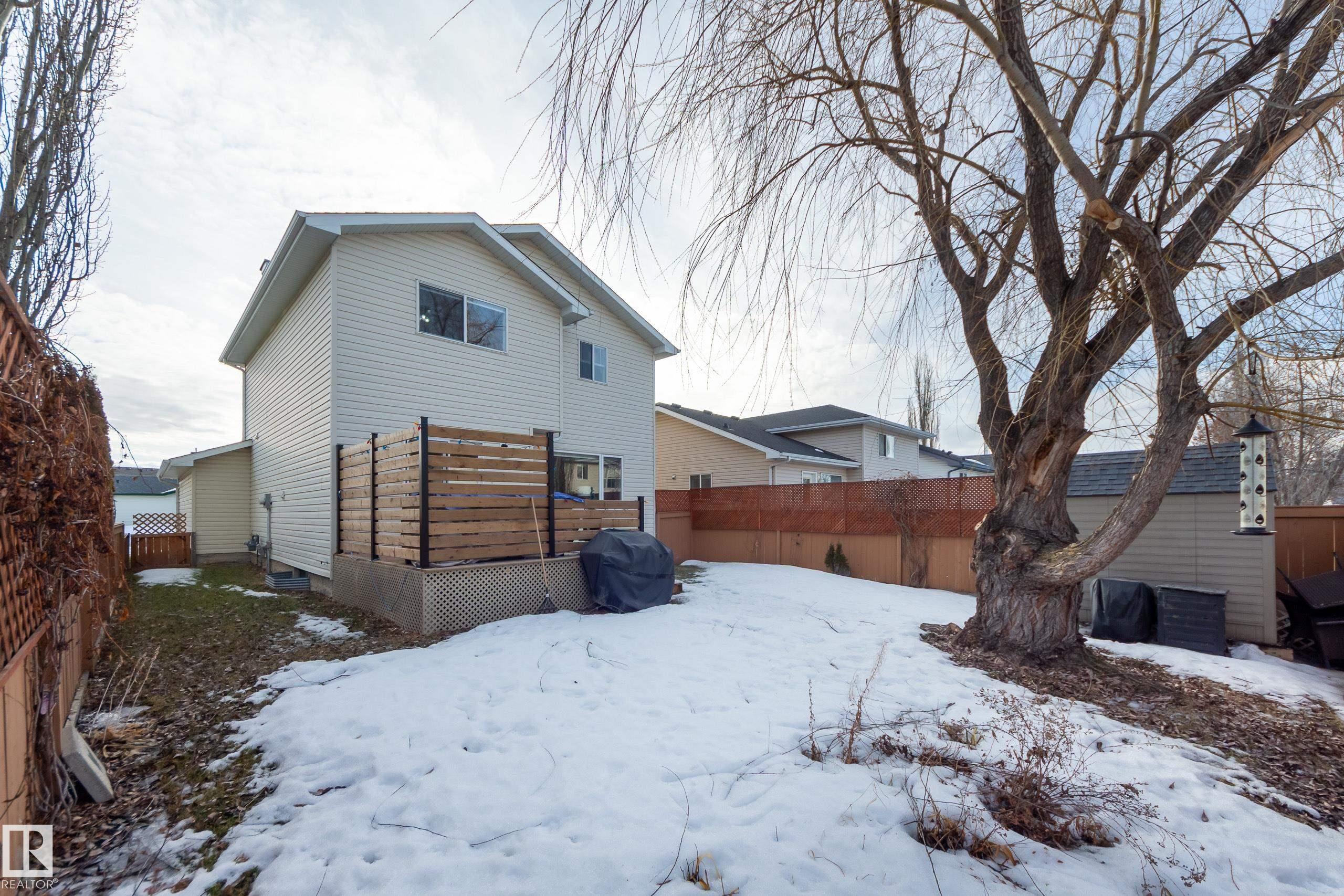 Welcome to this lovingly maintained 2-storey home in Larkspur! Upon entry you're greeted by an impressive entryway with tall ceilings and the warmth of hardwood flooring. This wonderful family home has an open concept kitchen and living area - which is perfect for entertaining! The kitchen island with seating is another bonus, adding functionality, storage, and more counter space. The main floor is completed with an updated 2-piece bath and MAIN FLOOR LAUNDRY! Upstairs you'll find the primary suite featuring double closets and a lovely 3-piece ensuite bath. Two more bedrooms and a full 4-piece bath top off the upper level. The basement is fully finished with an incredible rec area and tons of extra storage. The attached double garage will keep your vehicles out of the elements! The front yard has a nice deck to catch the sun and sip your morning coffee, and the refreshed back deck is perfect for those summer evening bbqs! This home has been well kept, has a manicured yard, and is in a fantastic location!