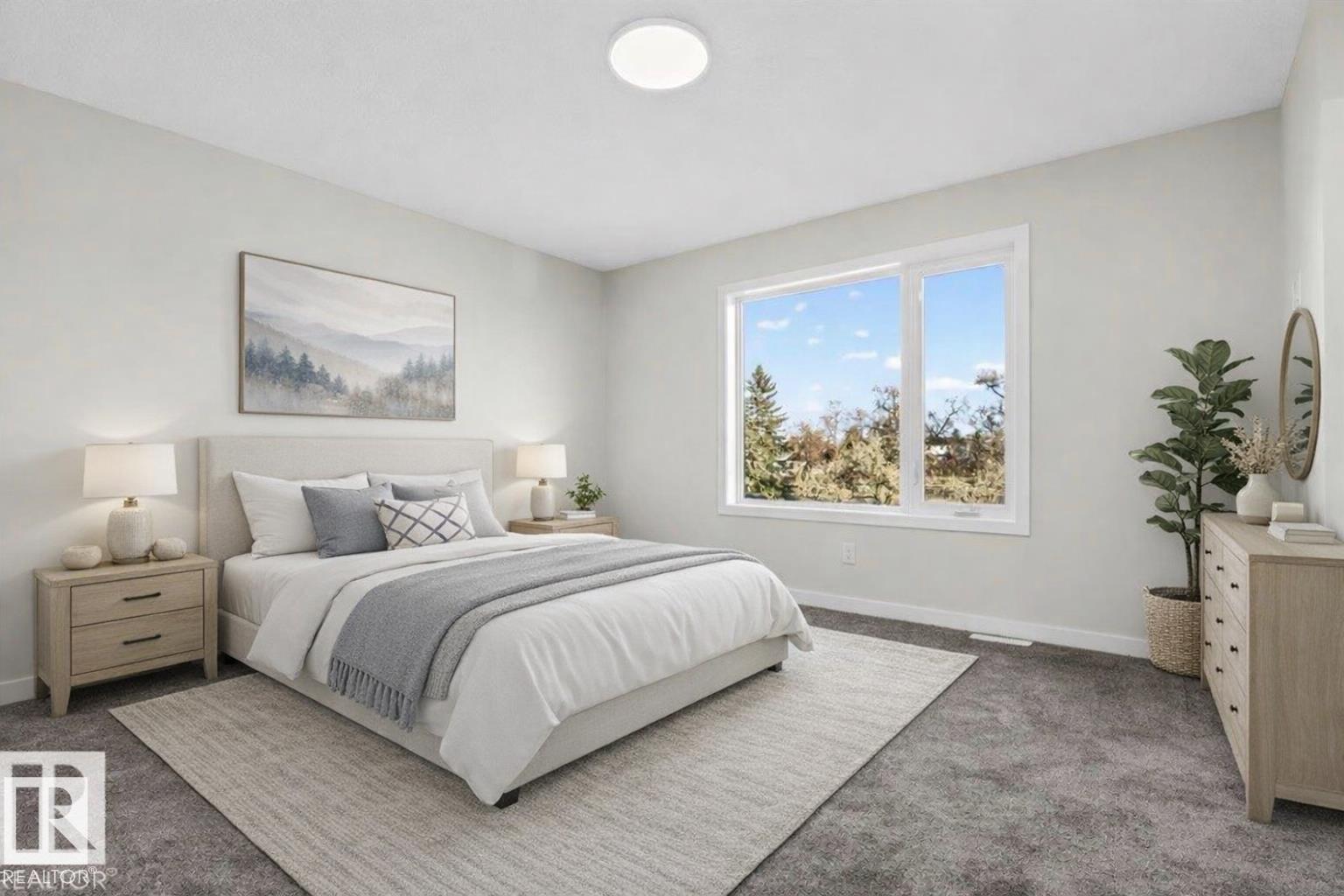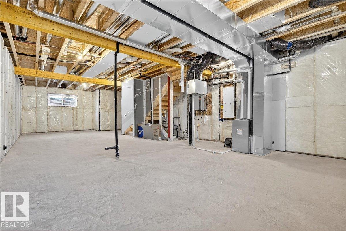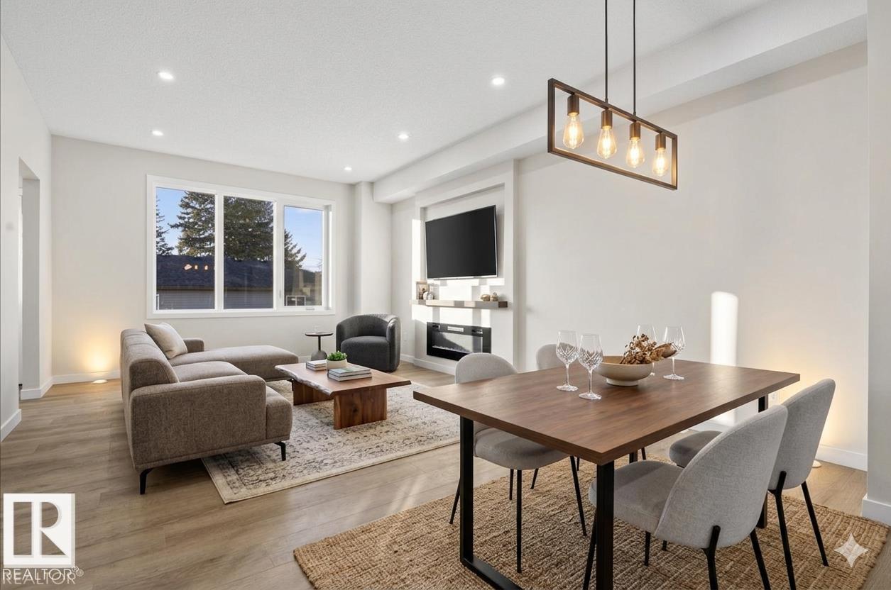 Step inside this well-designed half duplex featuring a bright, open-concept main floor filled with warm natural light from oversized windows. The spacious living room flows seamlessly into the dining area and a modern kitchen with granite countertops, ideal for both daily living and entertaining. A main-floor office offers flexible work or study space, complemented by a convenient 3-piece bath. Upstairs offers 3 generous bedrooms, including a beautiful primary suite with a relaxing 5-piece ensuite, plus an additional full bath and upper-level laundry for added comfort. With 9-ft ceilings and a grand above-ground entrance, the home feels open and sophisticated. Enjoy peaceful views of Dr. Anne Anderson Park directly across the street, along with a separate side entrance providing excellent potential for future basement development. Ideally located close to shopping with quick access to Downtown Edmonton. (2 photos are virtually staged)