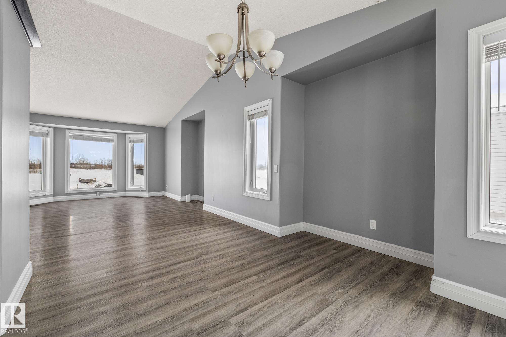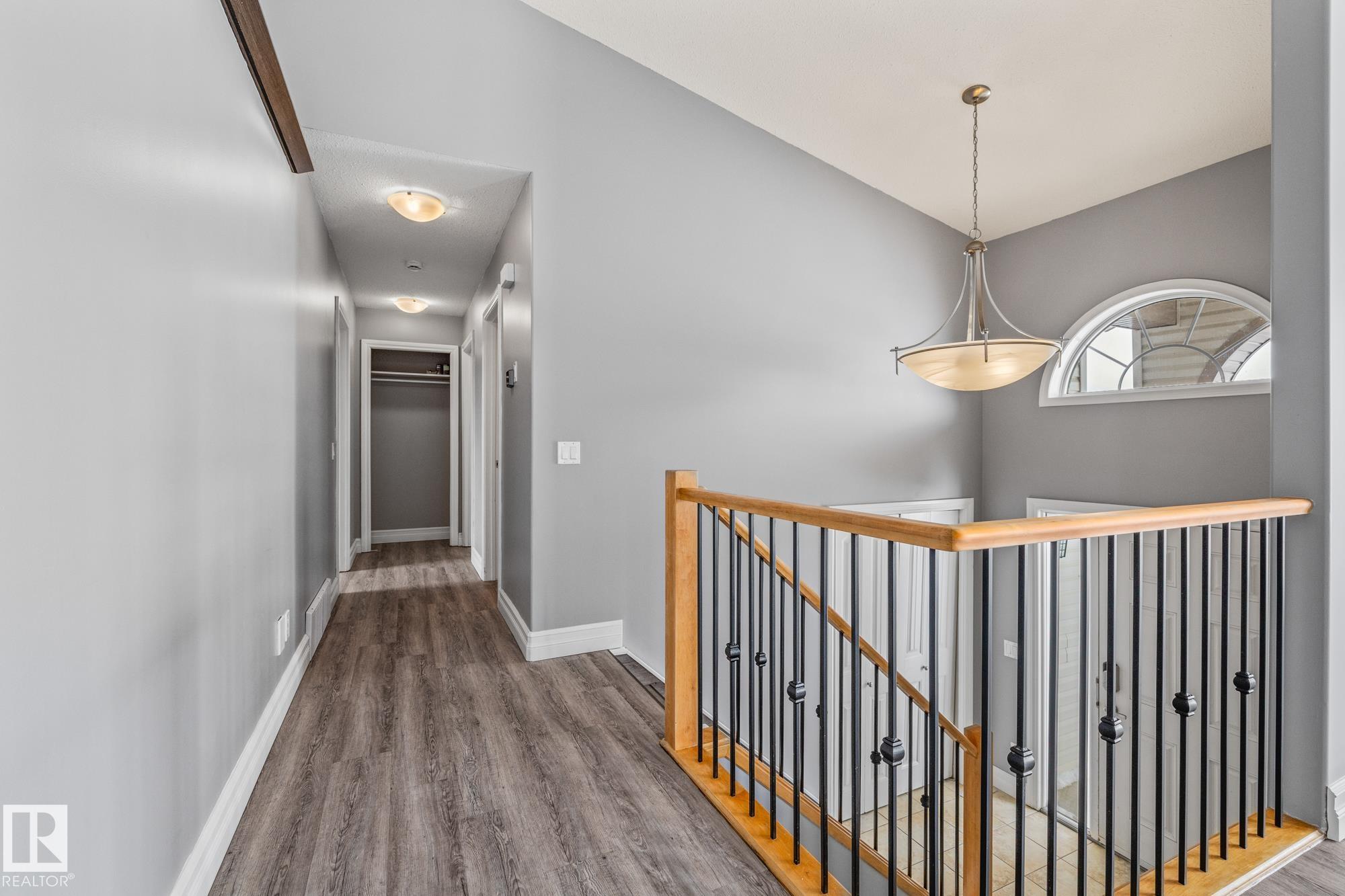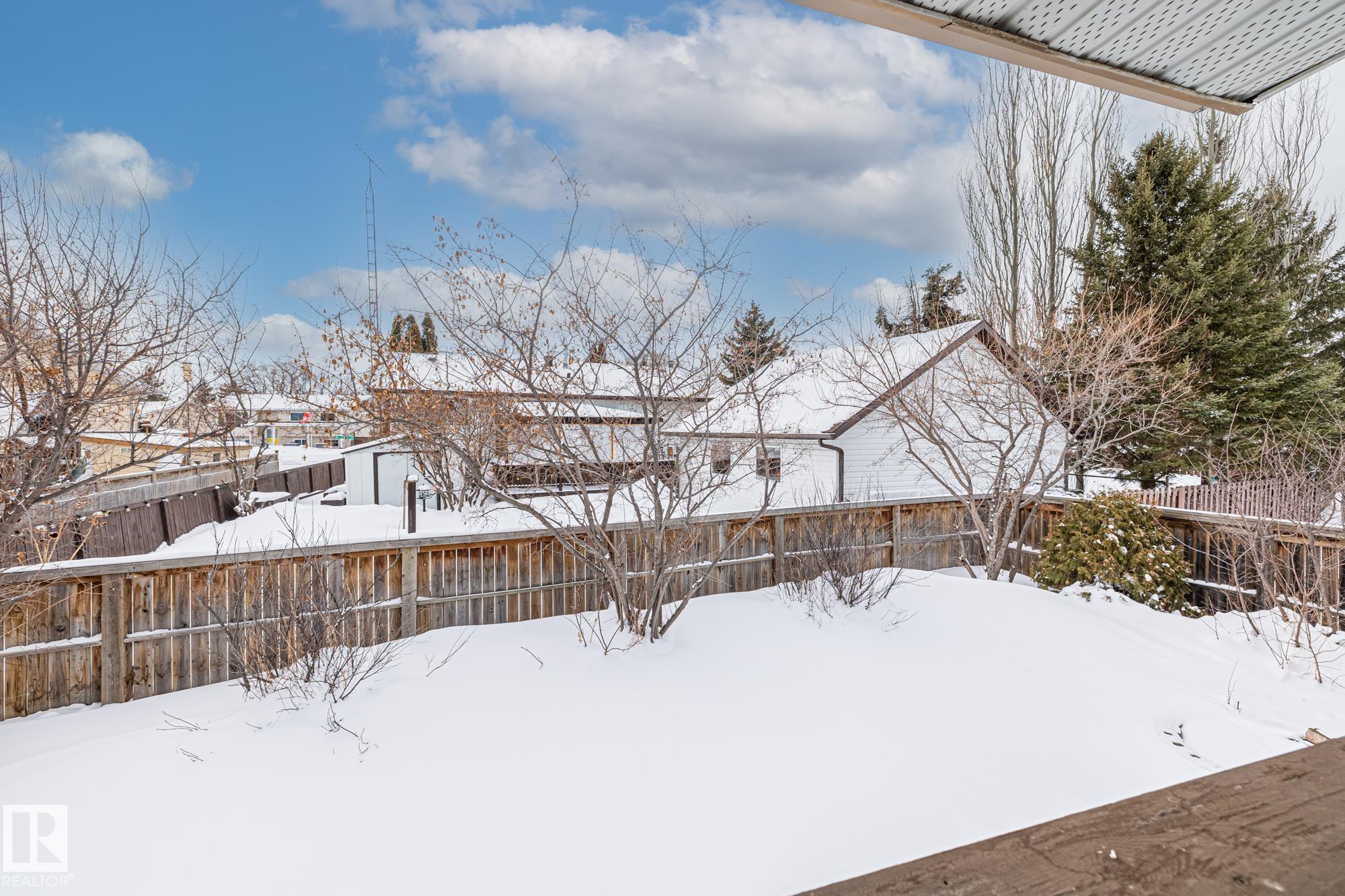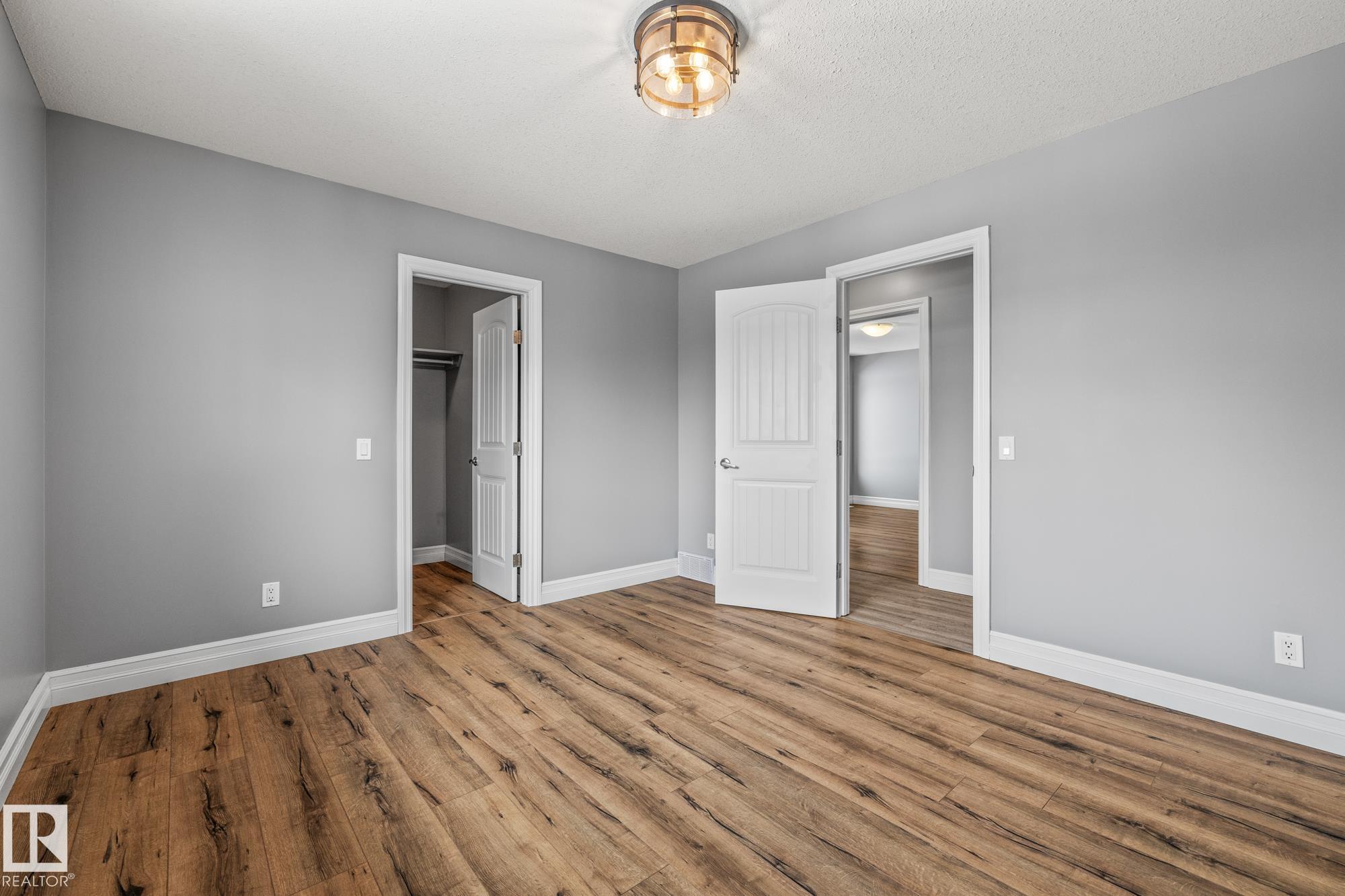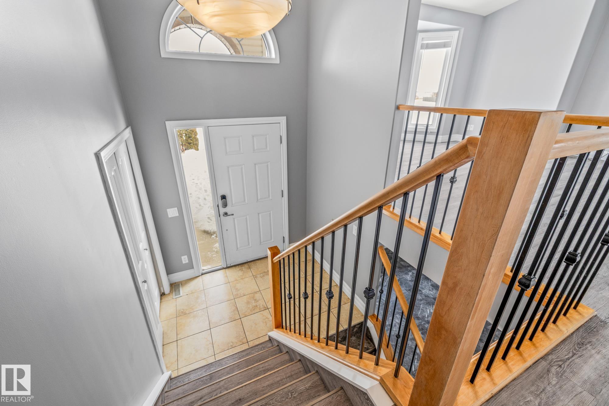 Spacious 4 Bed / 3 Bath Bi-Level offering 2,365 sq.ft. of finished living space and fresh paint throughout! This bright, open home features vaulted ceilings, hardwood and high-end laminate flooring, plus two large bay windows that fill the space with natural light. The functional open-concept main floor connects the living and dining areas to a well-sized kitchen complete with granite counters, oak cabinetry and two pantries. Garden doors lead to a re-modeled covered deck with under-deck storage, perfect for enjoying the 6,226 sq.ft. lot. The main level includes two generous bedrooms with walk-in closets, including a primary suite with 3-pc ensuite, plus a 4-pc guest bath. The fully finished lower level offers a large rec room with marble-surround gas fireplace, two additional bedrooms and another 3-pc bath. Oversized 24?x23? double garage with convenient access from both levels. No west neighbour (vacant lot), walkway to the east, and easy walk to Bruderheim School ? just 20 minutes to Fort Saskatchewan!