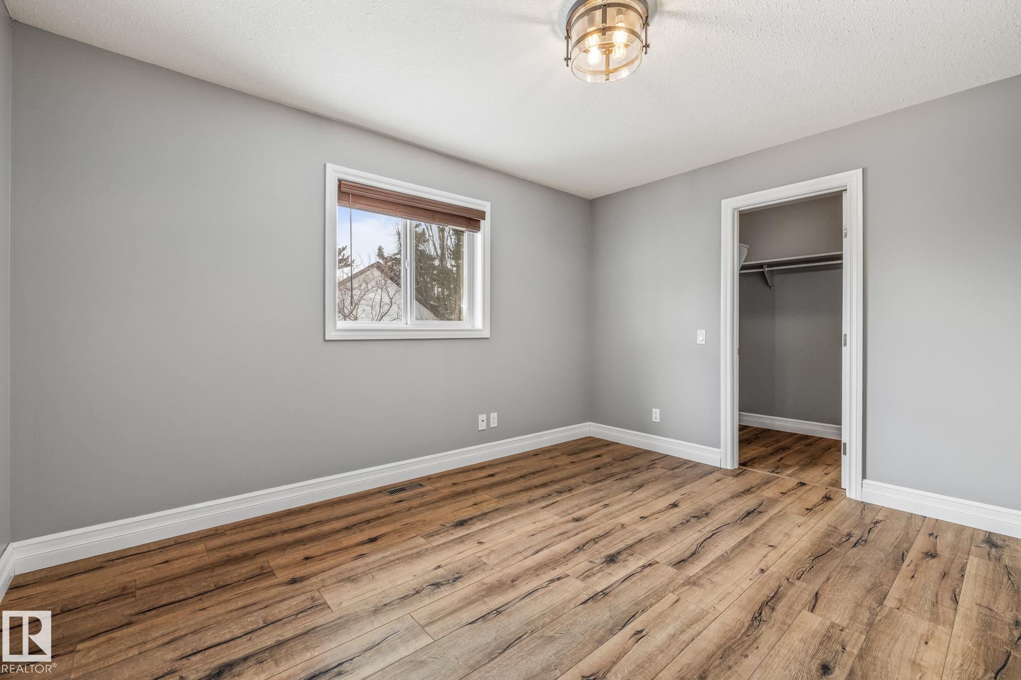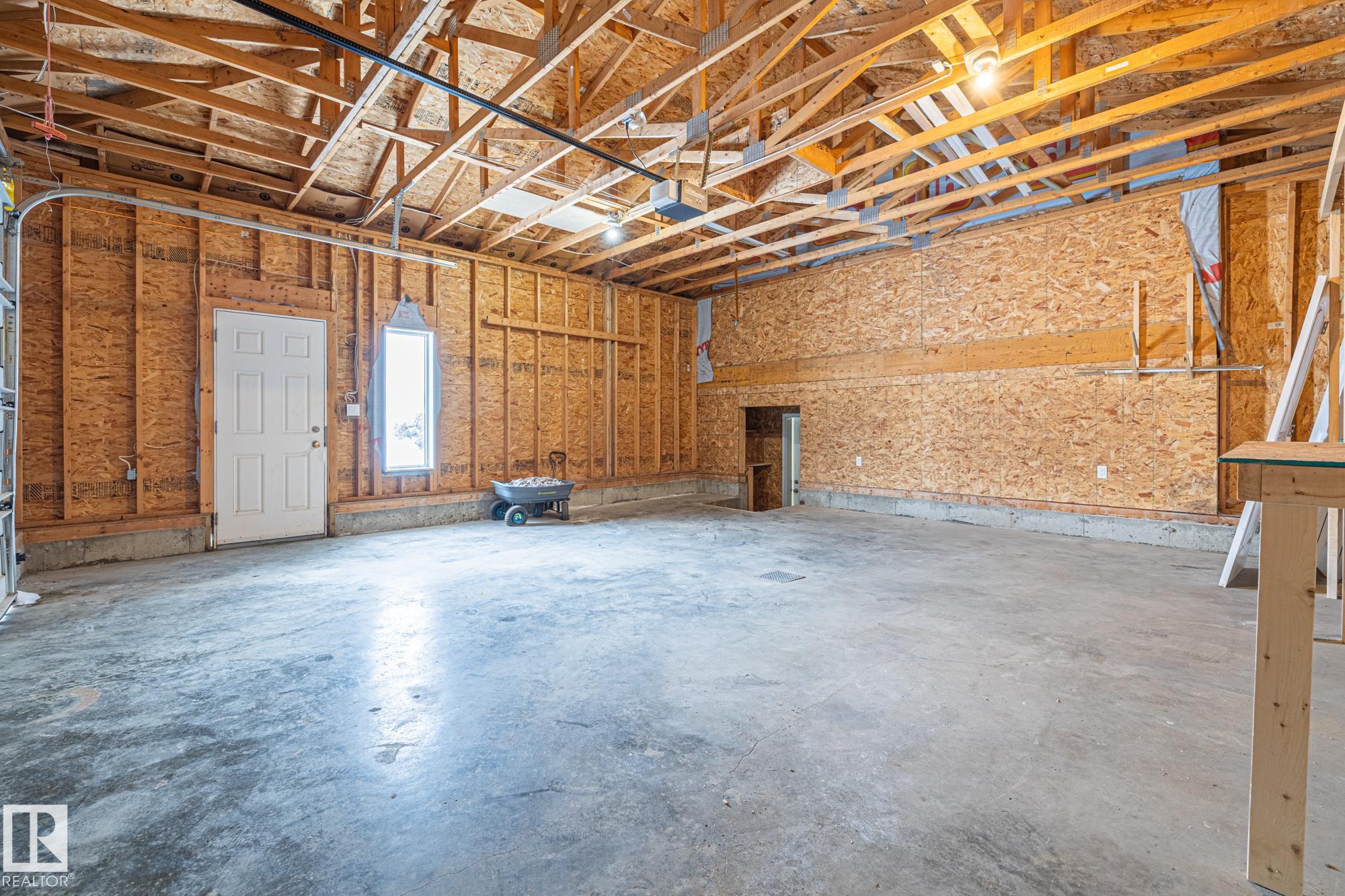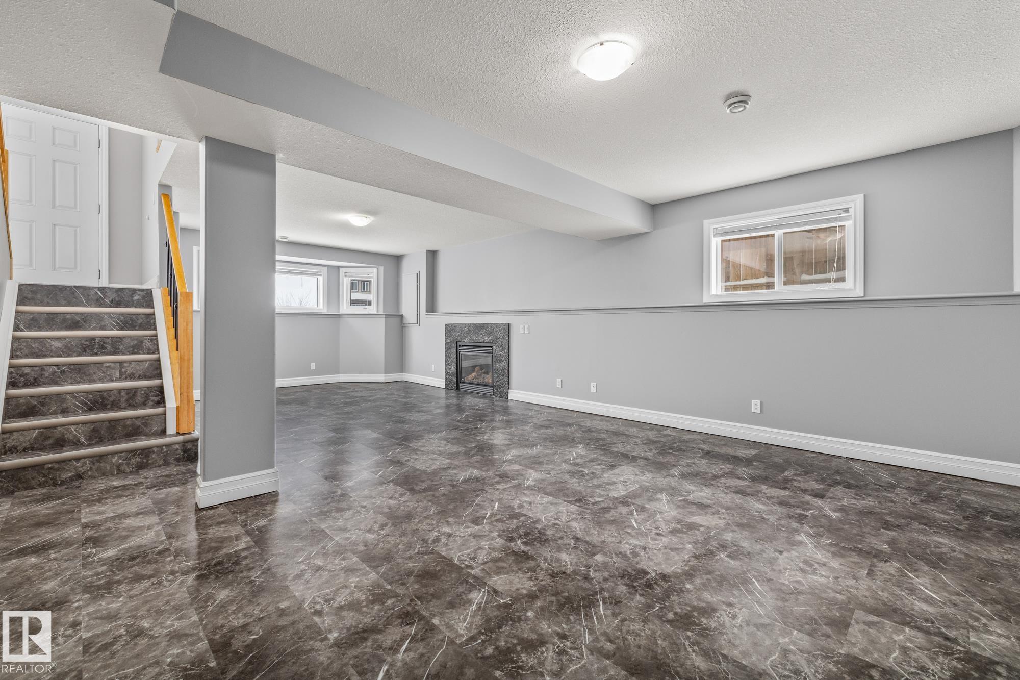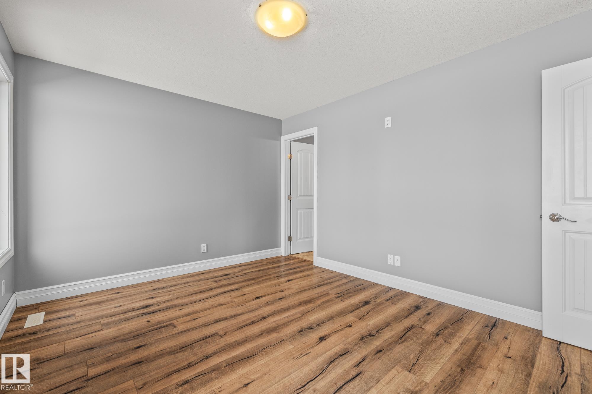 Spacious 4 Bed / 3 Bath Bi-Level offering 2,365 sq.ft. of finished living space and fresh paint throughout! This bright, open home features vaulted ceilings, hardwood and high-end laminate flooring, plus two large bay windows that fill the space with natural light. The functional open-concept main floor connects the living and dining areas to a well-sized kitchen complete with granite counters, oak cabinetry and two pantries. Garden doors lead to a re-modeled covered deck with under-deck storage, perfect for enjoying the 6,226 sq.ft. lot. The main level includes two generous bedrooms with walk-in closets, including a primary suite with 3-pc ensuite, plus a 4-pc guest bath. The fully finished lower level offers a large rec room with marble-surround gas fireplace, two additional bedrooms and another 3-pc bath. Oversized 24?x23? double garage with convenient access from both levels. No west neighbour (vacant lot), walkway to the east, and easy walk to Bruderheim School ? just 20 minutes to Fort Saskatchewan!