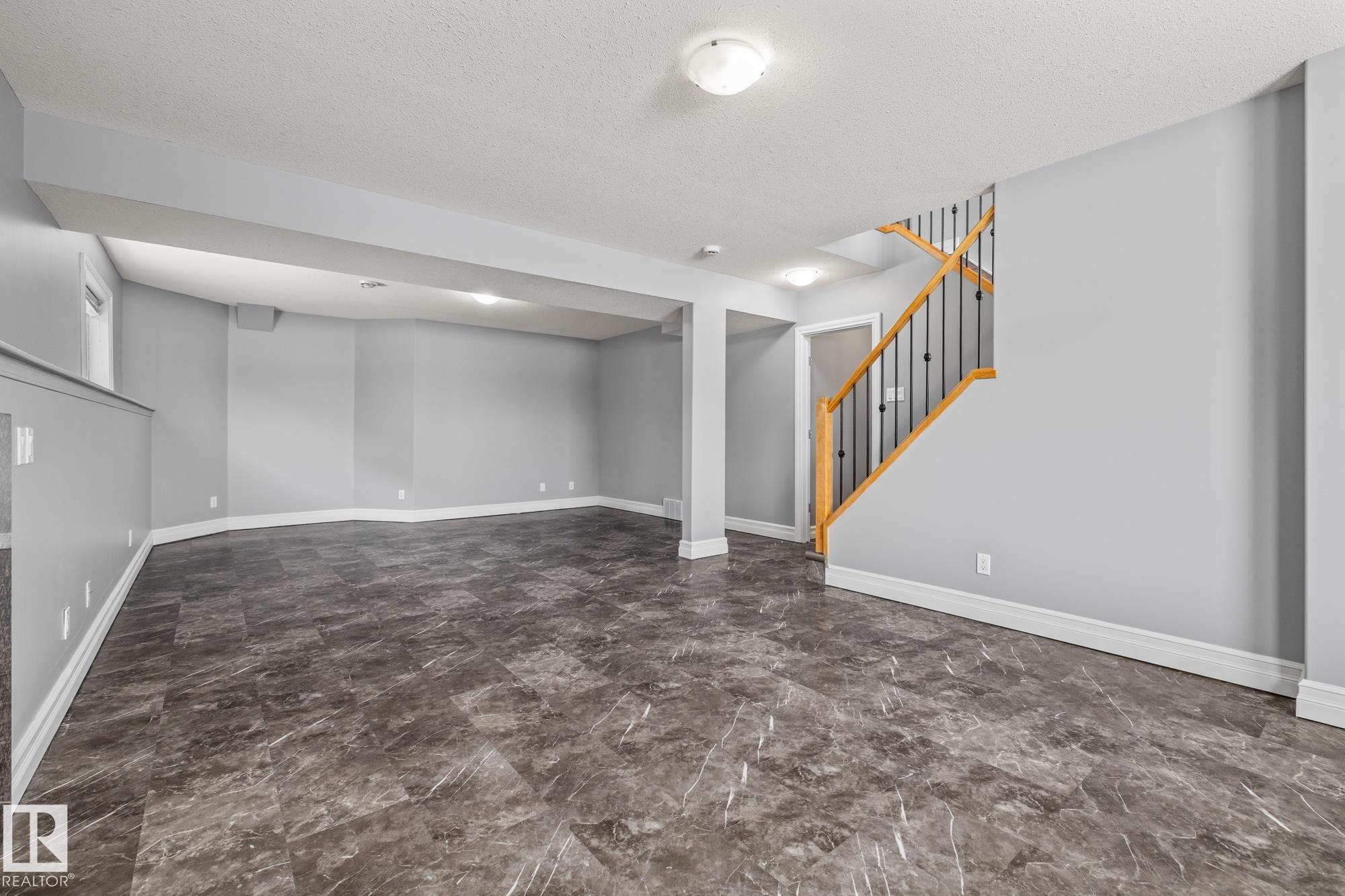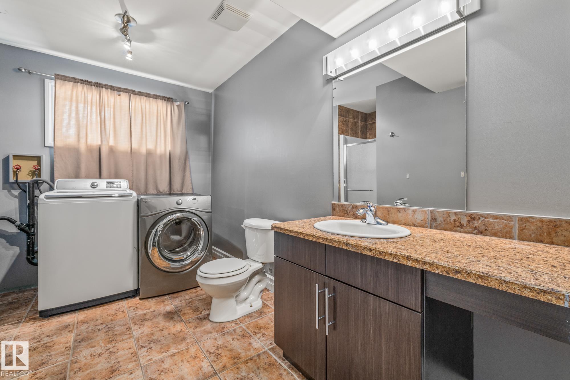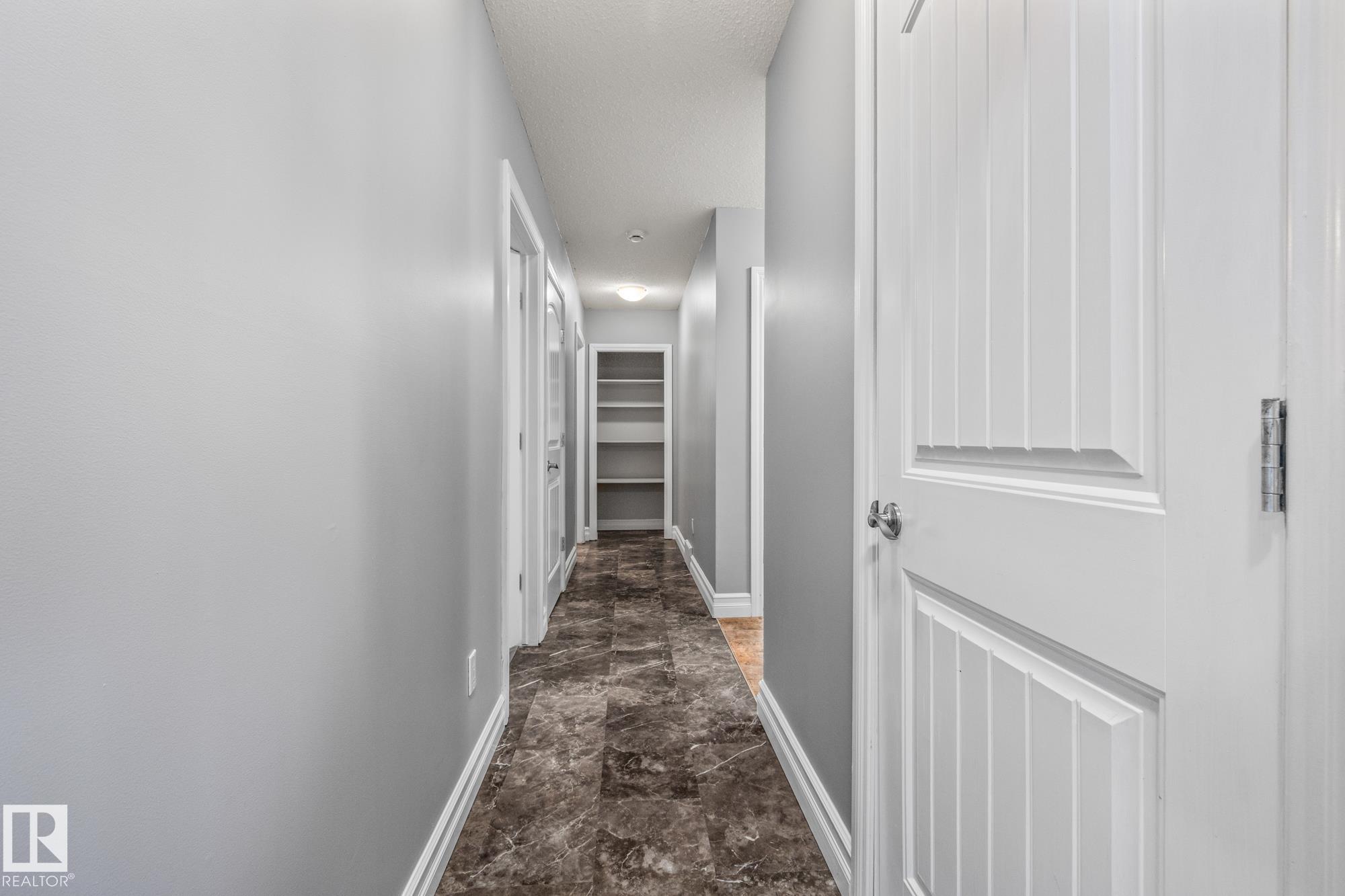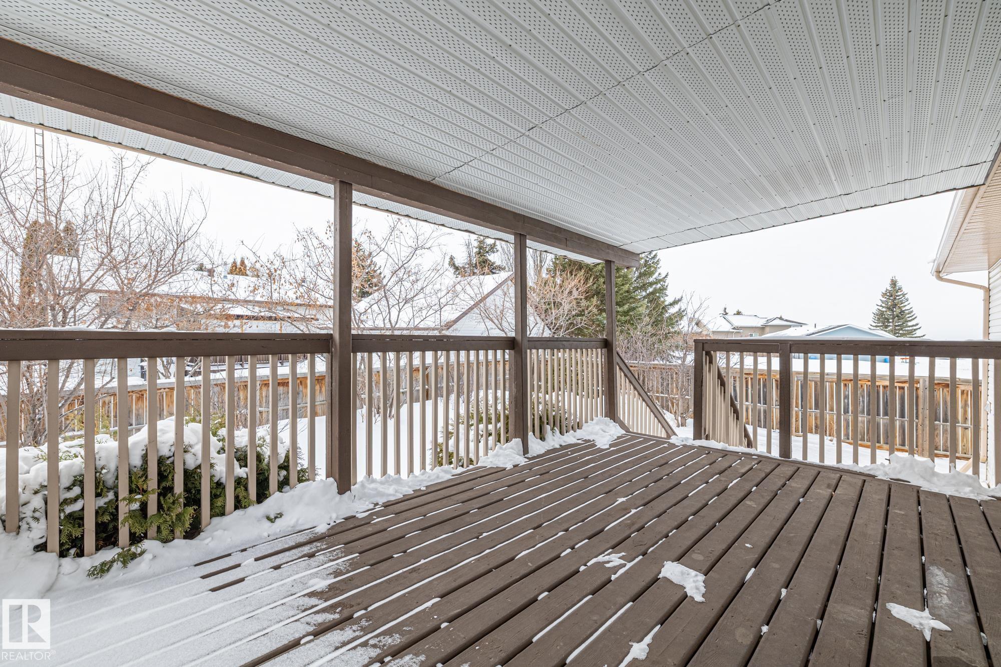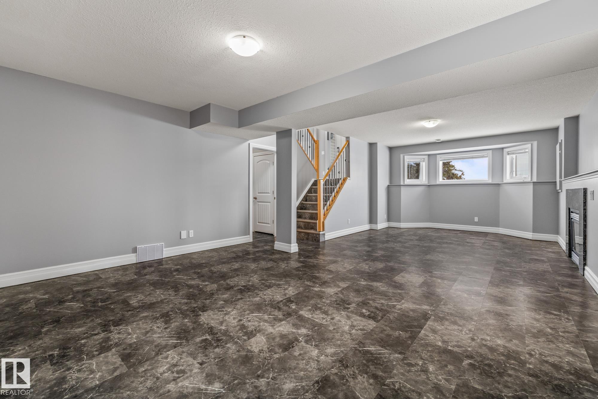 Spacious 4 Bed / 3 Bath Bi-Level offering 2,365 sq.ft. of finished living space and fresh paint throughout! This bright, open home features vaulted ceilings, hardwood and high-end laminate flooring, plus two large bay windows that fill the space with natural light. The functional open-concept main floor connects the living and dining areas to a well-sized kitchen complete with granite counters, oak cabinetry and two pantries. Garden doors lead to a re-modeled covered deck with under-deck storage, perfect for enjoying the 6,226 sq.ft. lot. The main level includes two generous bedrooms with walk-in closets, including a primary suite with 3-pc ensuite, plus a 4-pc guest bath. The fully finished lower level offers a large rec room with marble-surround gas fireplace, two additional bedrooms and another 3-pc bath. Oversized 24?x23? double garage with convenient access from both levels. No west neighbour (vacant lot), walkway to the east, and easy walk to Bruderheim School ? just 20 minutes to Fort Saskatchewan!