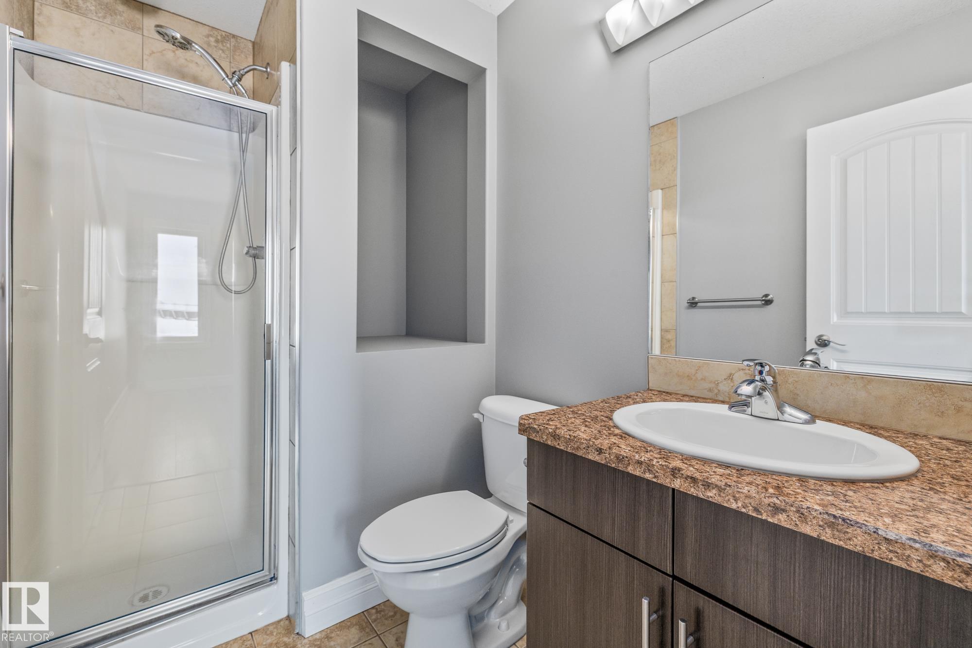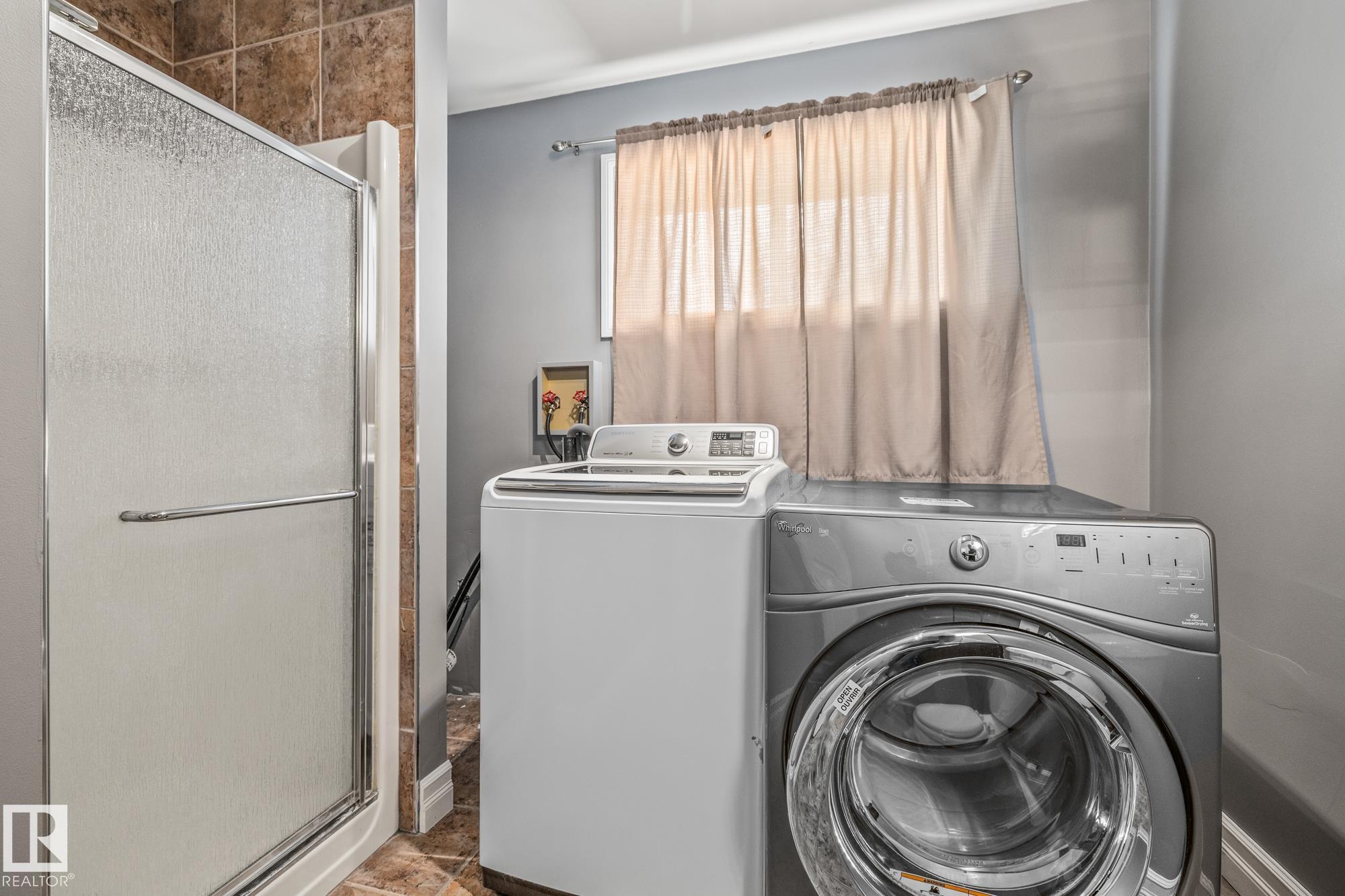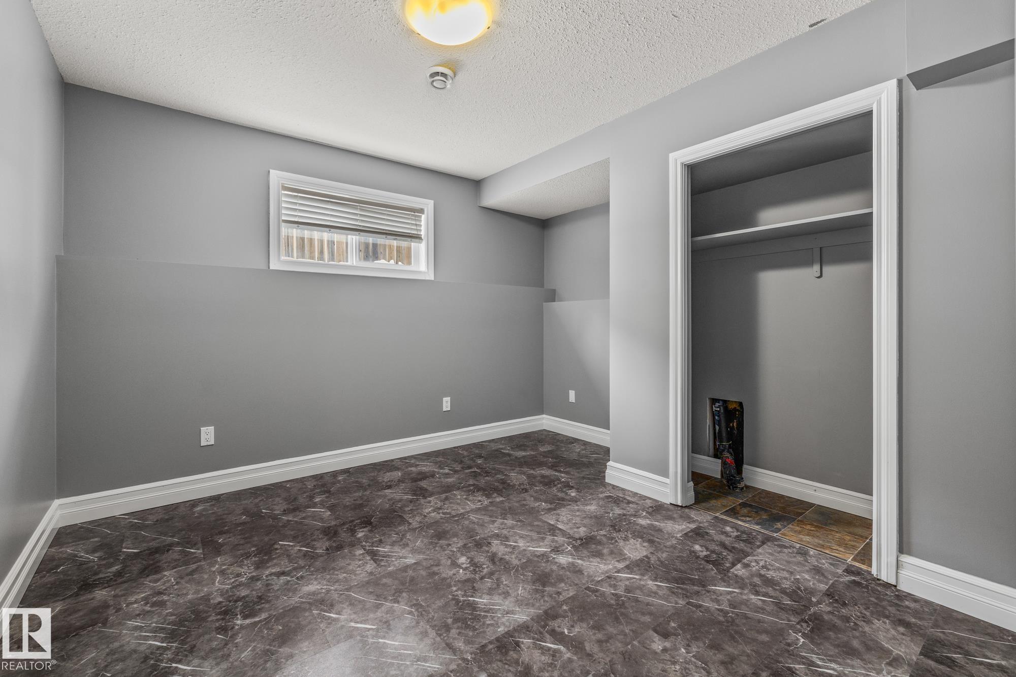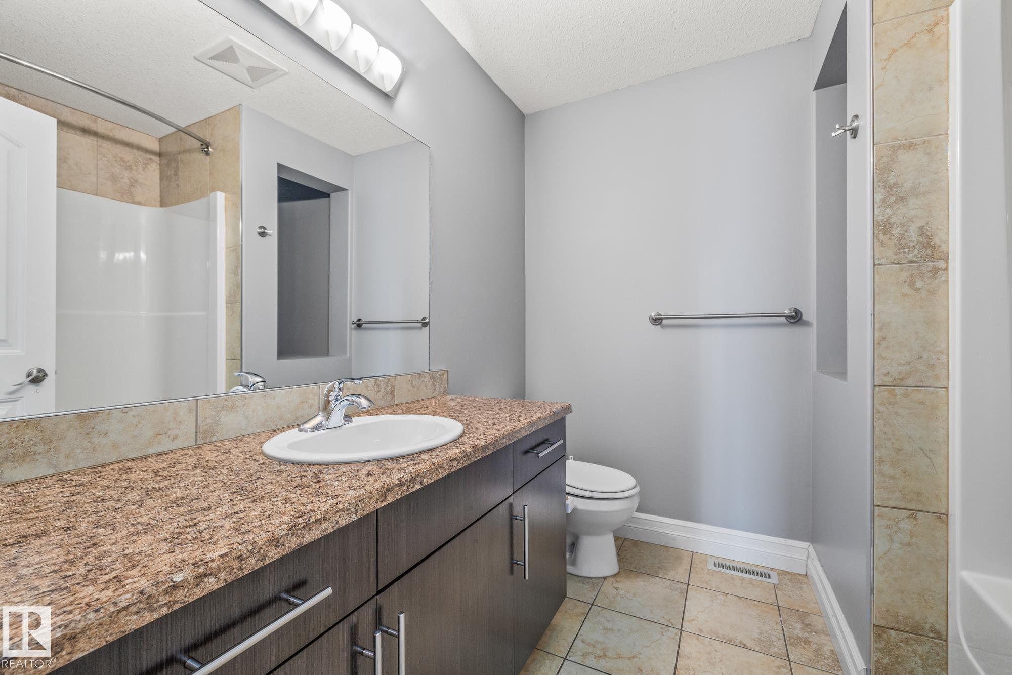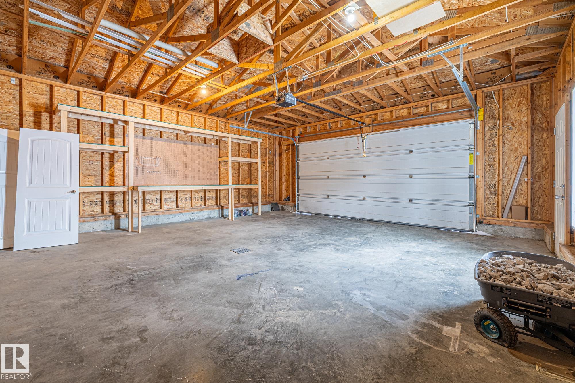 Spacious 4 Bed / 3 Bath Bi-Level offering 2,365 sq.ft. of finished living space and fresh paint throughout! This bright, open home features vaulted ceilings, hardwood and high-end laminate flooring, plus two large bay windows that fill the space with natural light. The functional open-concept main floor connects the living and dining areas to a well-sized kitchen complete with granite counters, oak cabinetry and two pantries. Garden doors lead to a re-modeled covered deck with under-deck storage, perfect for enjoying the 6,226 sq.ft. lot. The main level includes two generous bedrooms with walk-in closets, including a primary suite with 3-pc ensuite, plus a 4-pc guest bath. The fully finished lower level offers a large rec room with marble-surround gas fireplace, two additional bedrooms and another 3-pc bath. Oversized 24?x23? double garage with convenient access from both levels. No west neighbour (vacant lot), walkway to the east, and easy walk to Bruderheim School ? just 20 minutes to Fort Saskatchewan!