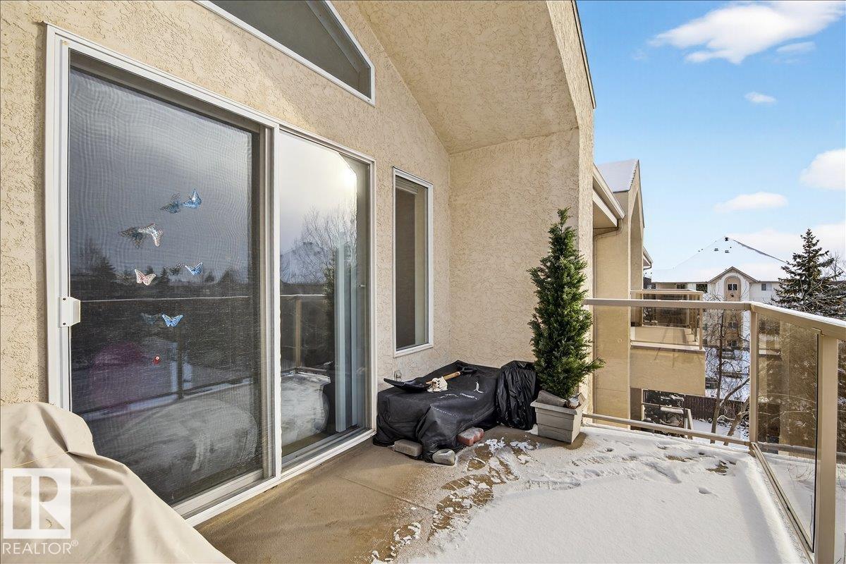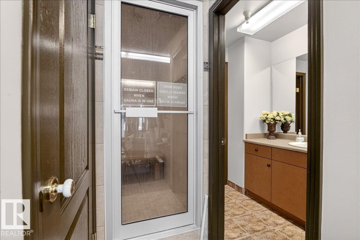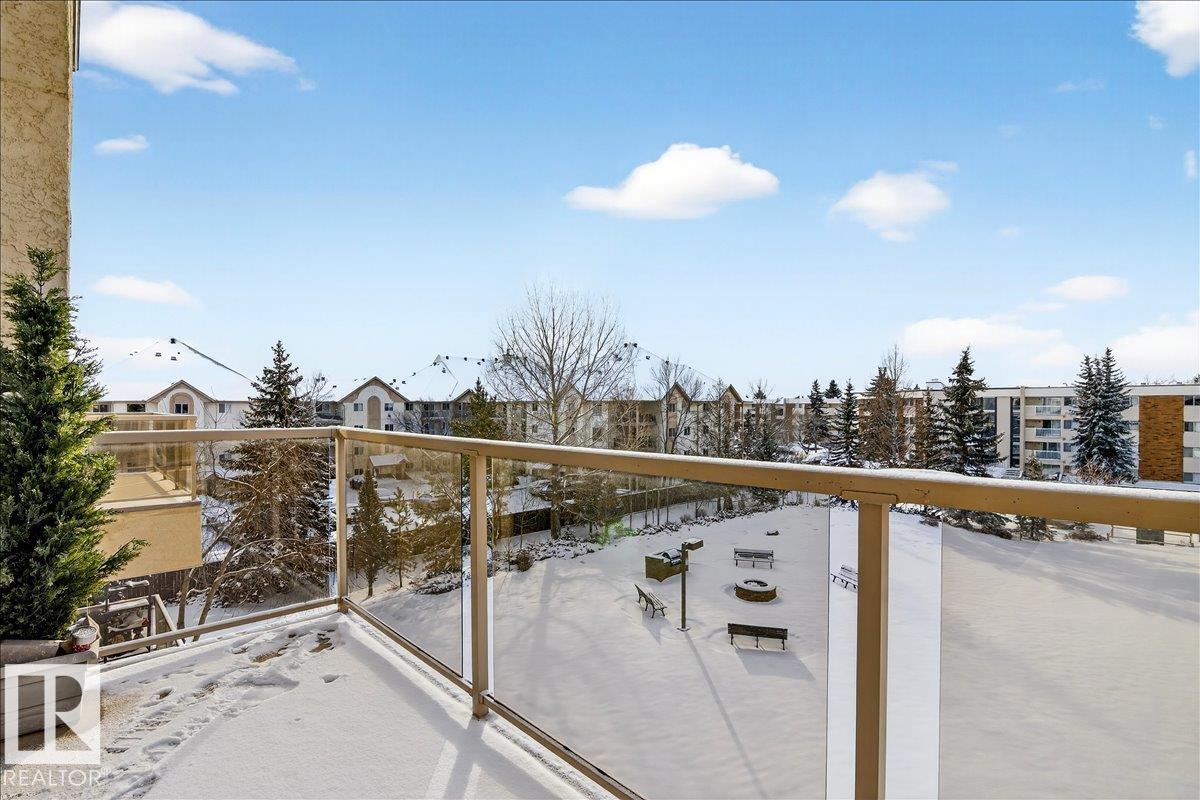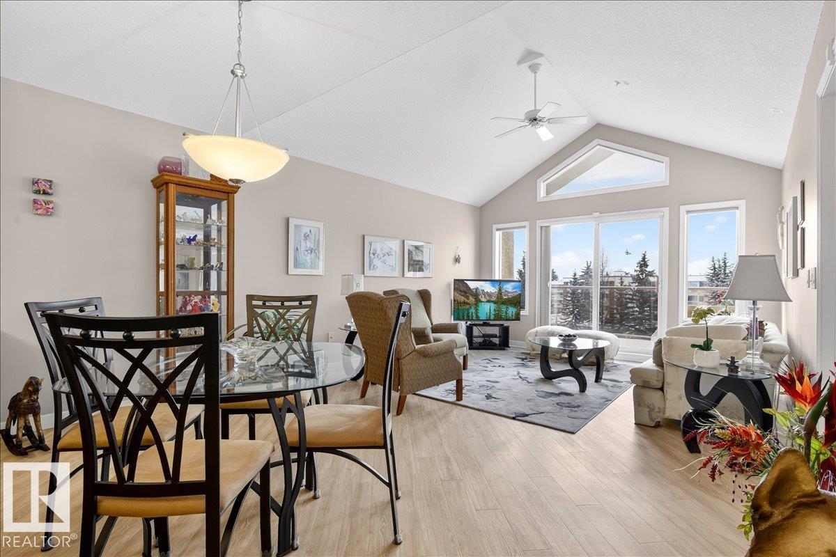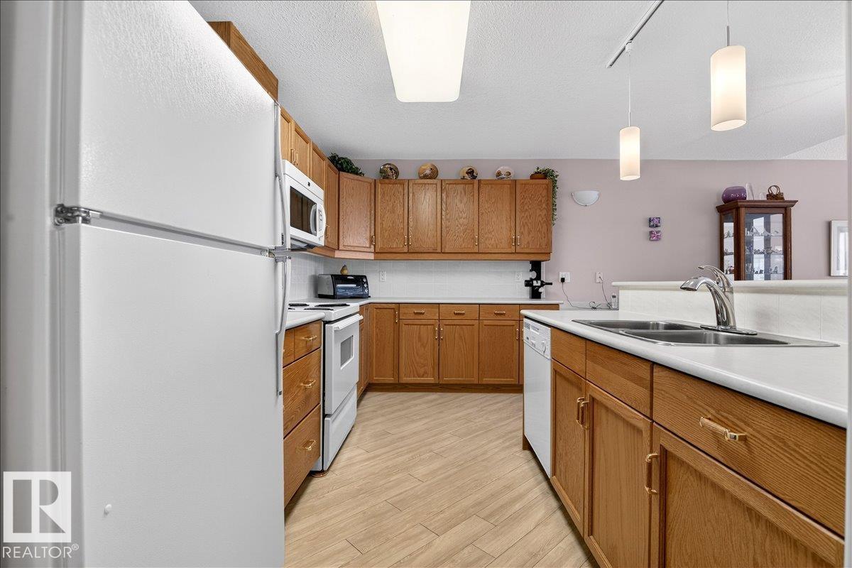 Experience luxury 55+ living in this beautifully appointed top-floor 1 bedroom + den, 1 bathroom condo at Country Club Court in Callingwood! Soaring vaulted ceilings create a bright, airy yet cozy atmosphere you?ll love coming home to, complemented by in-floor heating throughout the entire building for year-round comfort. Step onto your private deck overlooking the tranquil courtyard?an ideal setting for morning coffee or evening unwinding. The spacious den offers flexibility for a home office, reading nook, or guest space. Enjoy exceptional amenities including underground parking with car wash, a fully equipped fitness room with sauna, woodworking shop, and an inviting social room for gatherings. Perfectly located near shopping, transit, and everyday conveniences, this well-managed building offers comfort, community, and low-maintenance living in desirable Callingwood.