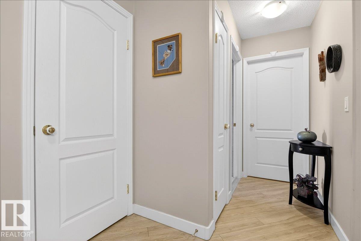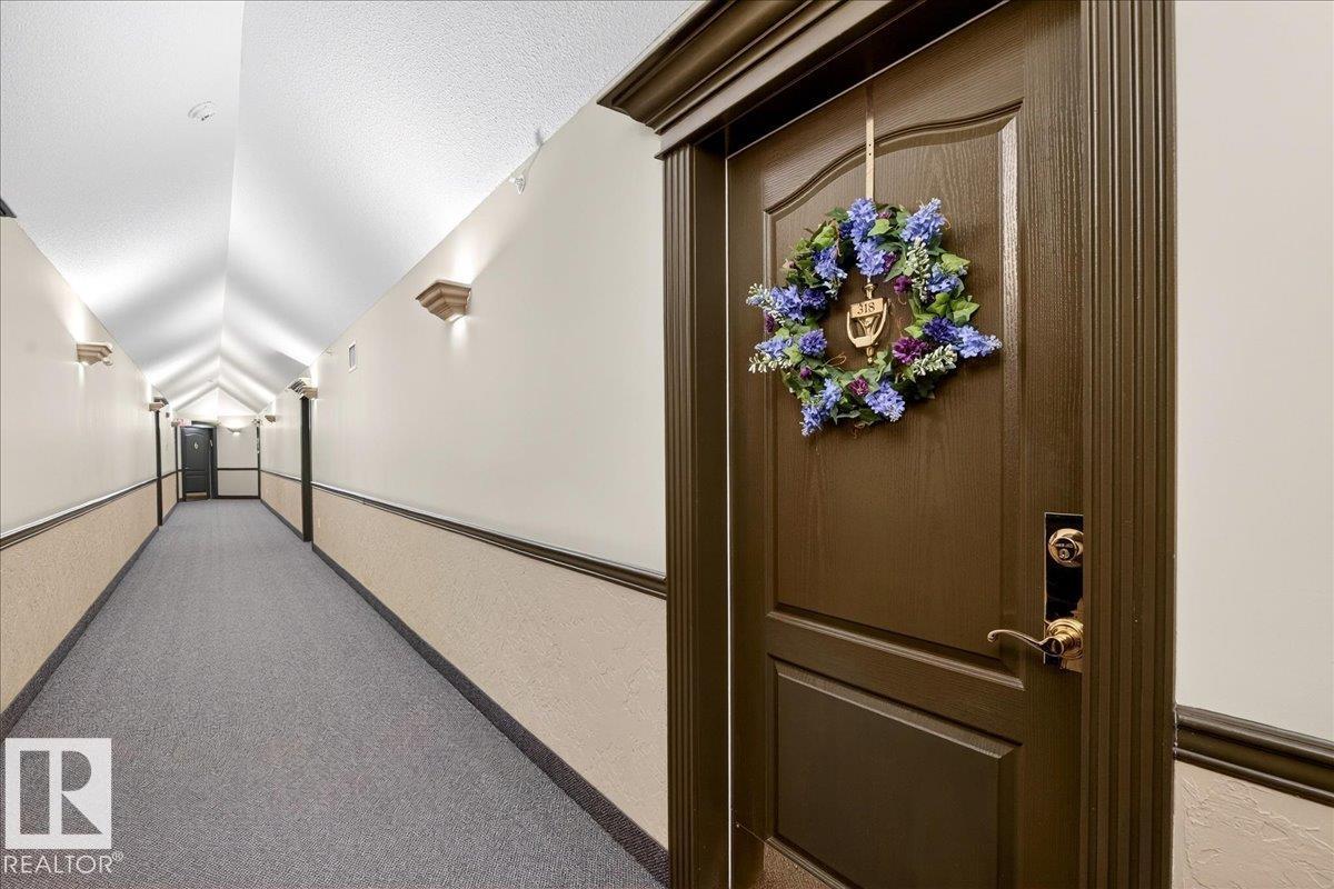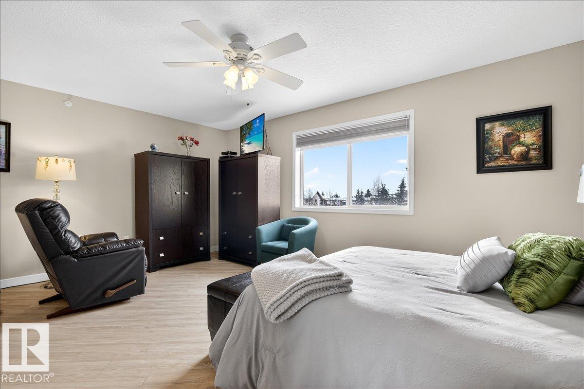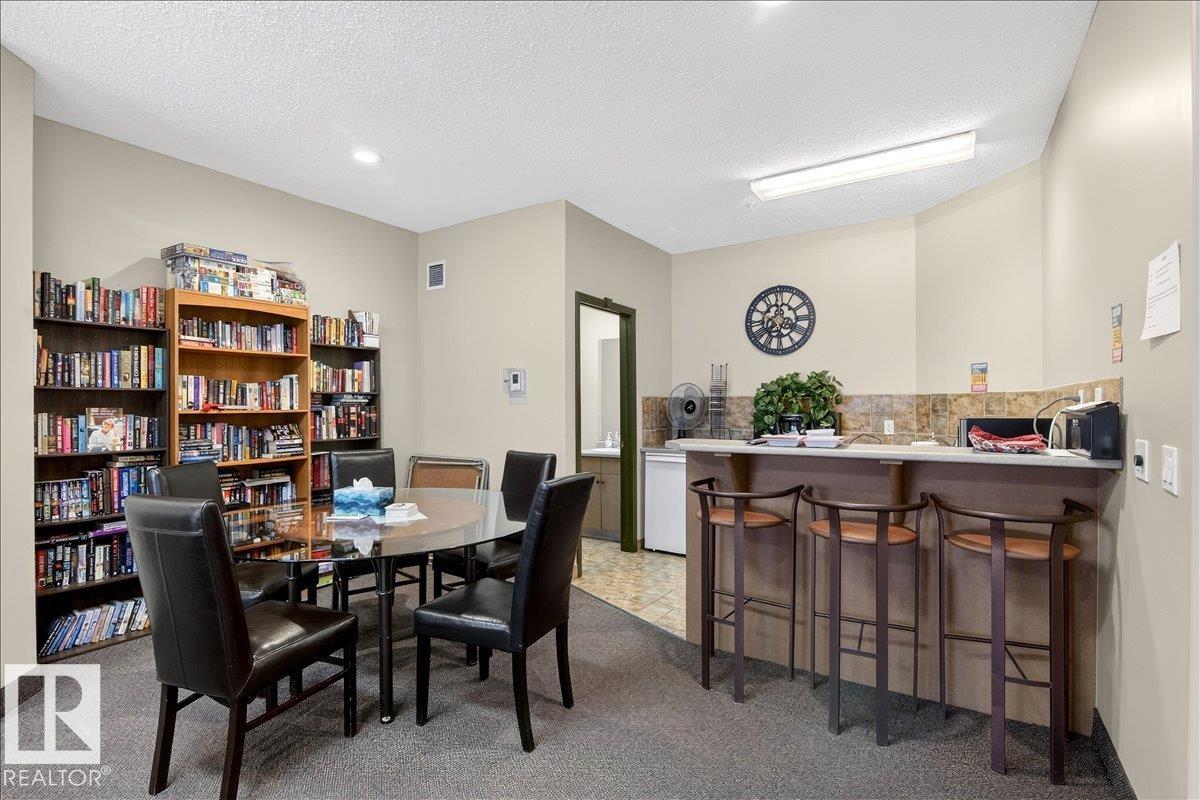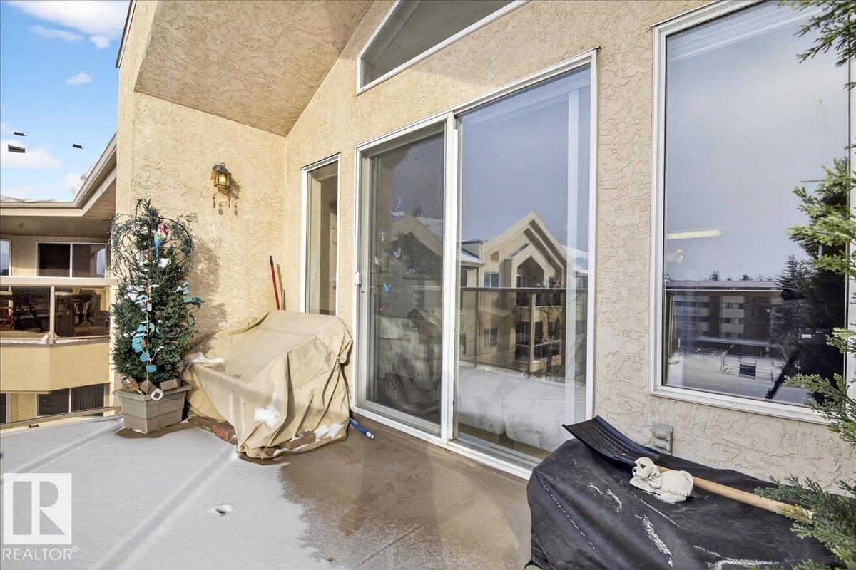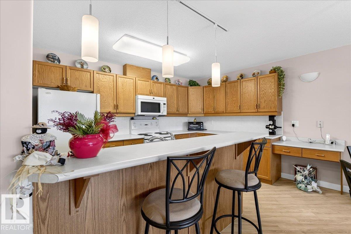 Experience luxury 55+ living in this beautifully appointed top-floor 1 bedroom + den, 1 bathroom condo at Country Club Court in Callingwood! Soaring vaulted ceilings create a bright, airy yet cozy atmosphere you?ll love coming home to, complemented by in-floor heating throughout the entire building for year-round comfort. Step onto your private deck overlooking the tranquil courtyard?an ideal setting for morning coffee or evening unwinding. The spacious den offers flexibility for a home office, reading nook, or guest space. Enjoy exceptional amenities including underground parking with car wash, a fully equipped fitness room with sauna, woodworking shop, and an inviting social room for gatherings. Perfectly located near shopping, transit, and everyday conveniences, this well-managed building offers comfort, community, and low-maintenance living in desirable Callingwood.