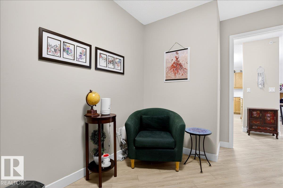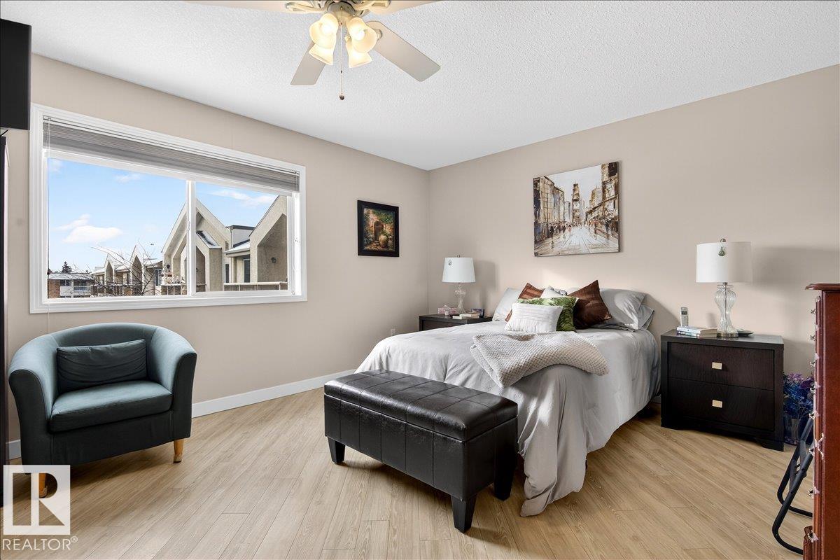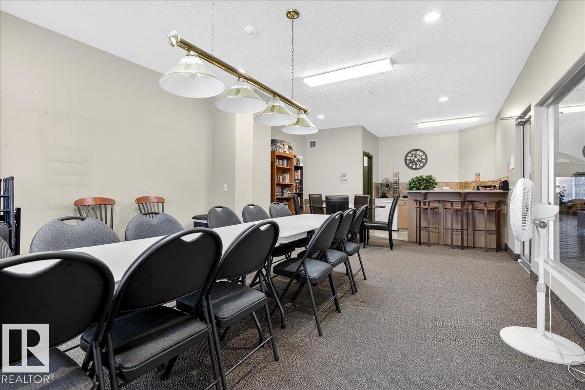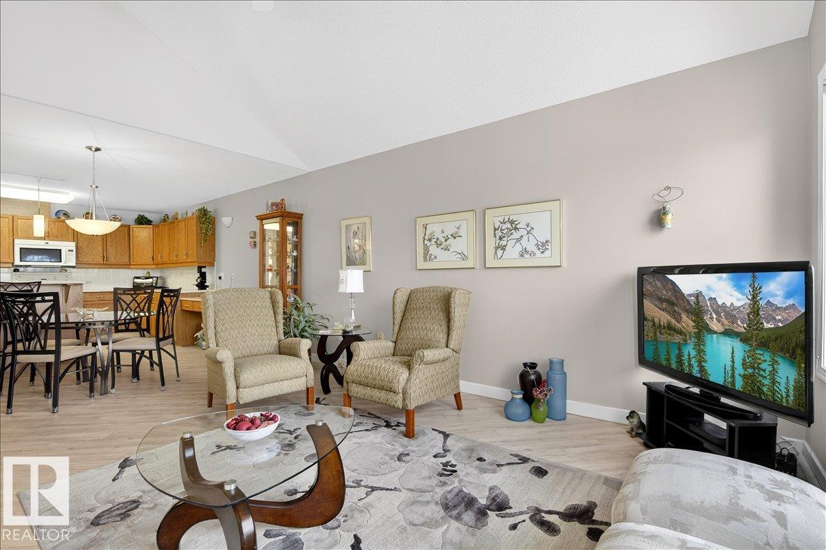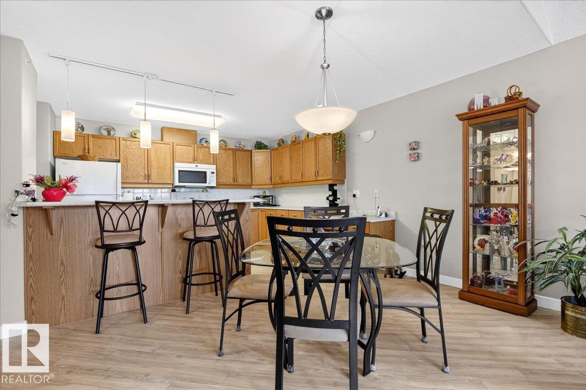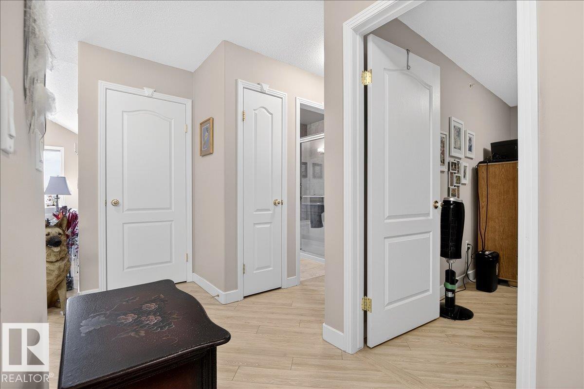 Experience luxury 55+ living in this beautifully appointed top-floor 1 bedroom + den, 1 bathroom condo at Country Club Court in Callingwood! Soaring vaulted ceilings create a bright, airy yet cozy atmosphere you?ll love coming home to, complemented by in-floor heating throughout the entire building for year-round comfort. Step onto your private deck overlooking the tranquil courtyard?an ideal setting for morning coffee or evening unwinding. The spacious den offers flexibility for a home office, reading nook, or guest space. Enjoy exceptional amenities including underground parking with car wash, a fully equipped fitness room with sauna, woodworking shop, and an inviting social room for gatherings. Perfectly located near shopping, transit, and everyday conveniences, this well-managed building offers comfort, community, and low-maintenance living in desirable Callingwood.