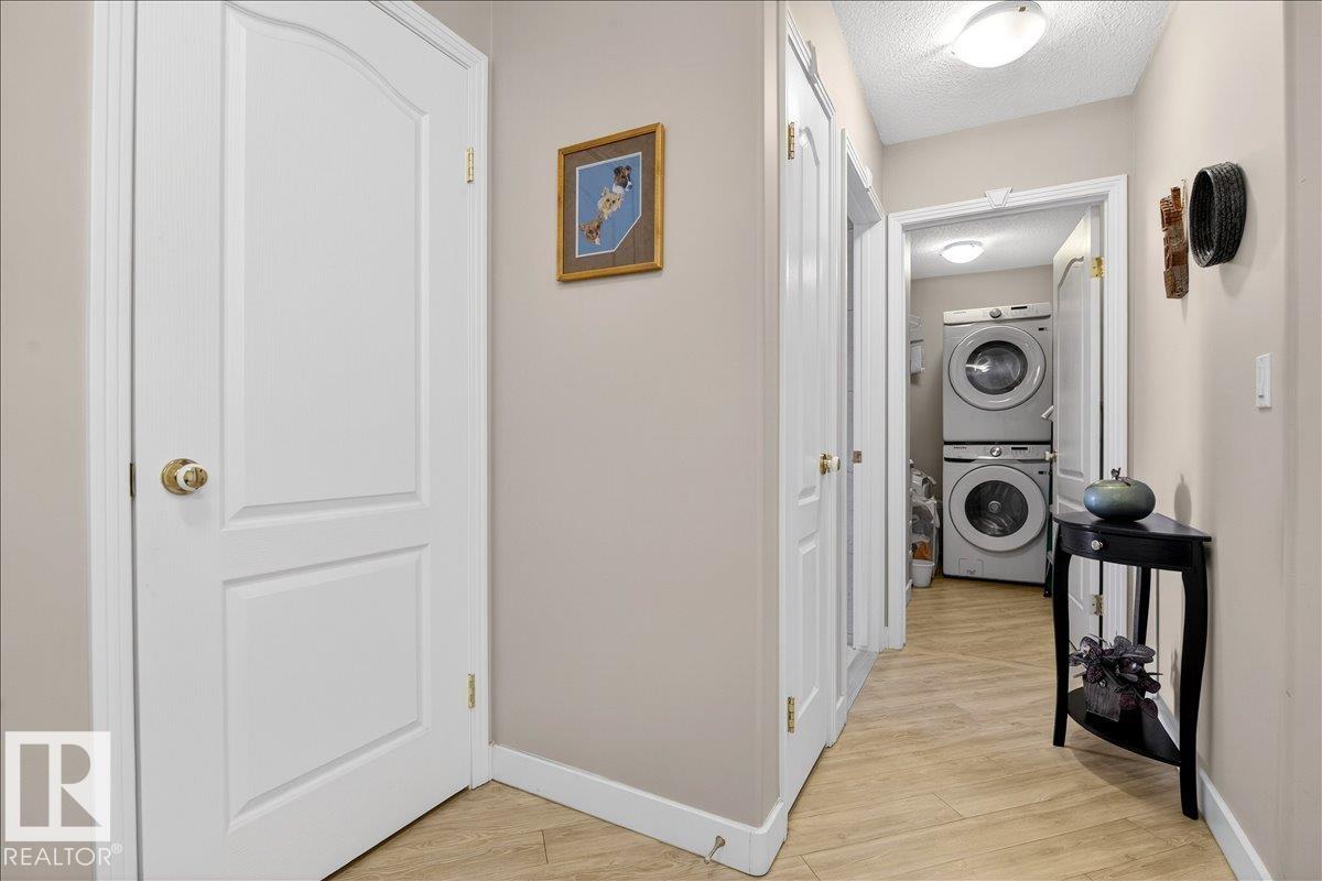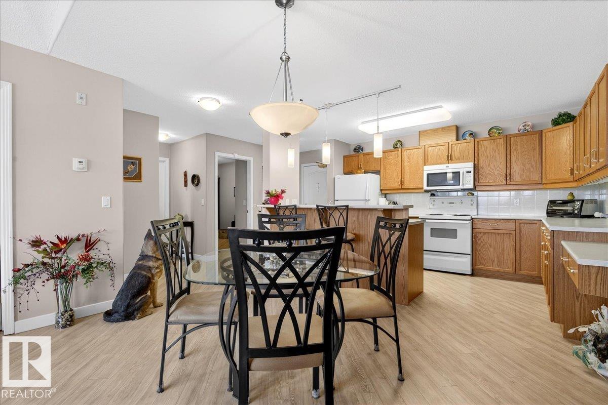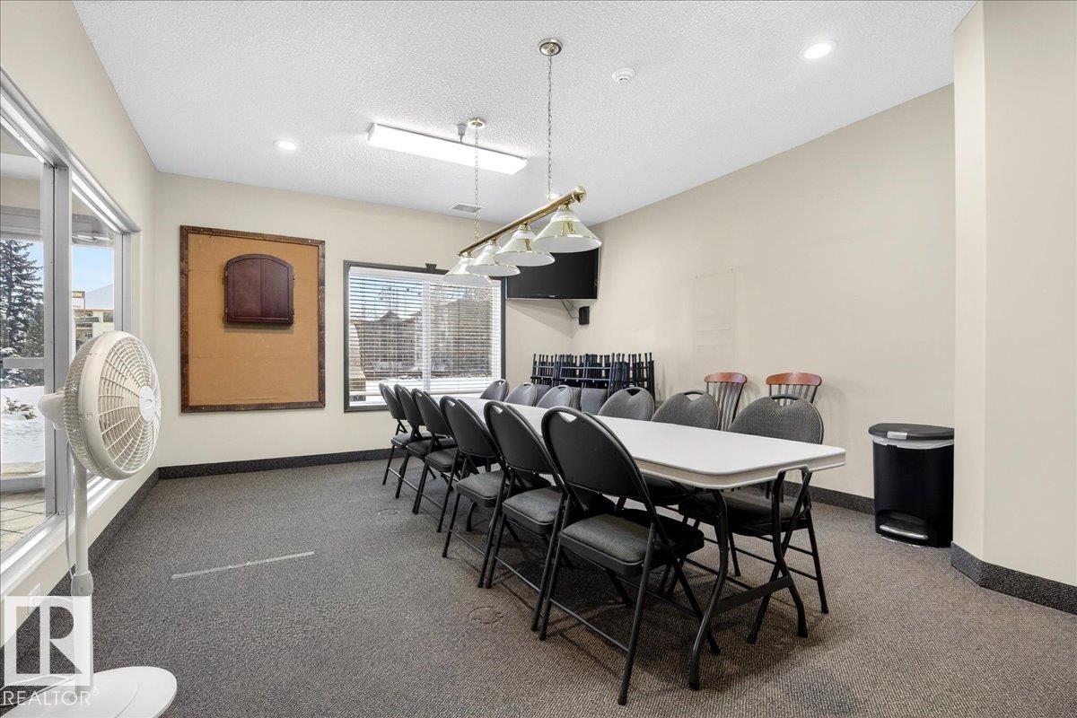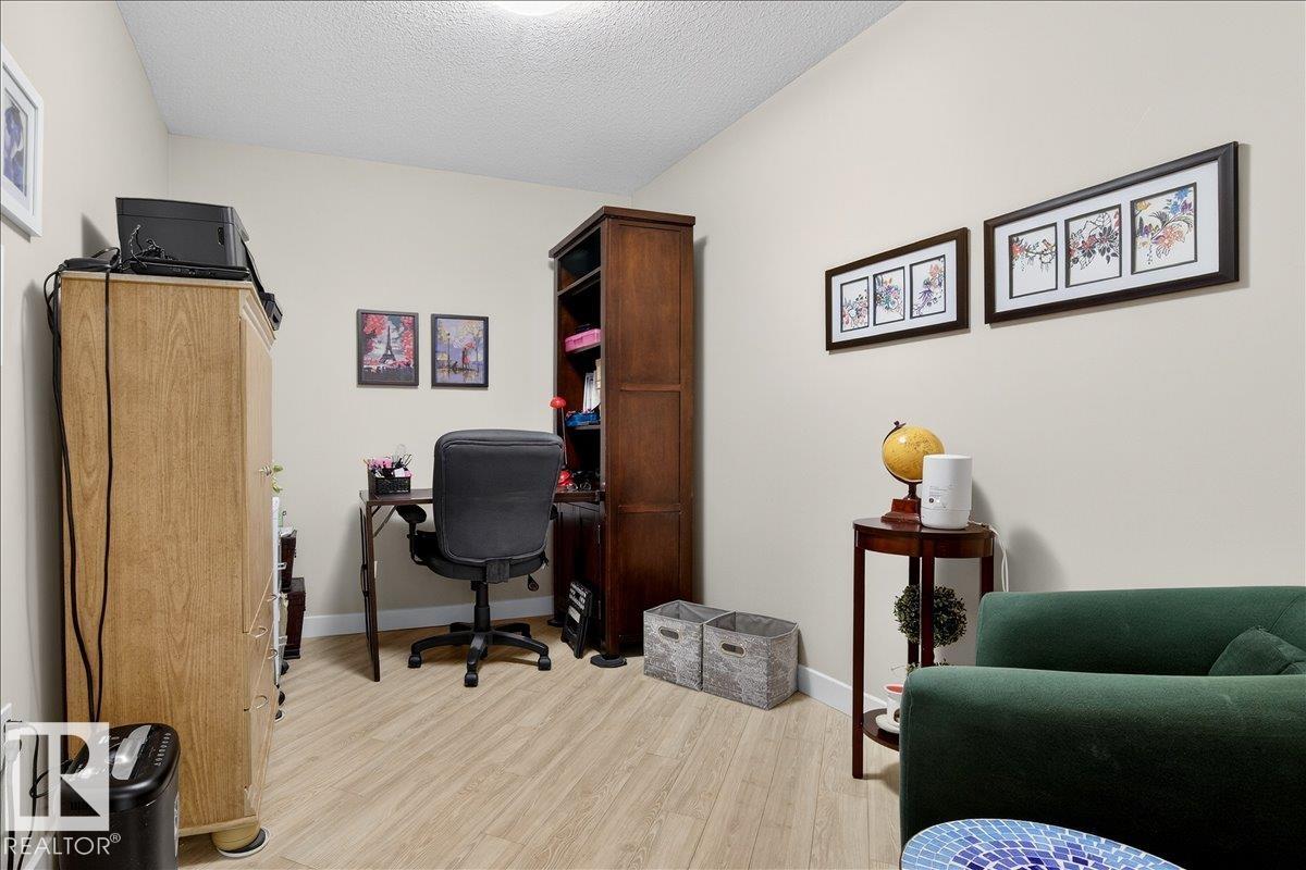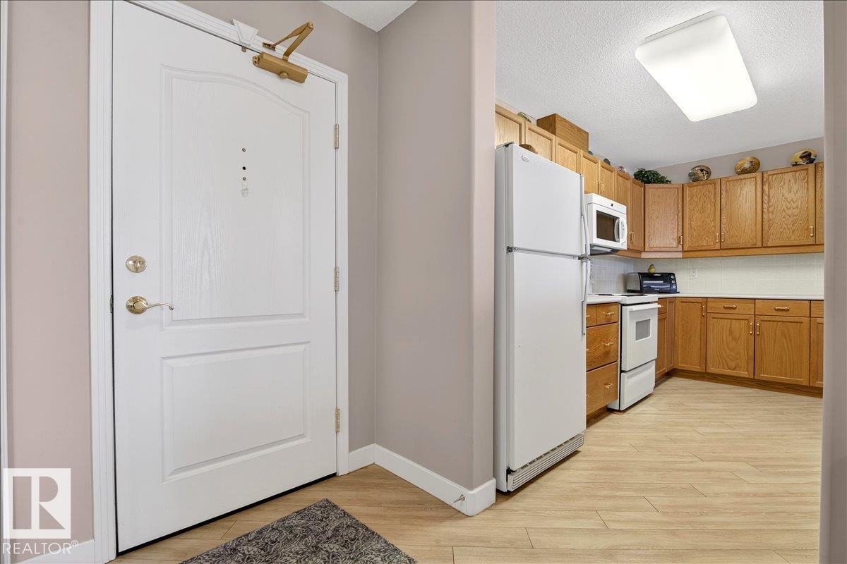 Experience luxury 55+ living in this beautifully appointed top-floor 1 bedroom + den, 1 bathroom condo at Country Club Court in Callingwood! Soaring vaulted ceilings create a bright, airy yet cozy atmosphere you?ll love coming home to, complemented by in-floor heating throughout the entire building for year-round comfort. Step onto your private deck overlooking the tranquil courtyard?an ideal setting for morning coffee or evening unwinding. The spacious den offers flexibility for a home office, reading nook, or guest space. Enjoy exceptional amenities including underground parking with car wash, a fully equipped fitness room with sauna, woodworking shop, and an inviting social room for gatherings. Perfectly located near shopping, transit, and everyday conveniences, this well-managed building offers comfort, community, and low-maintenance living in desirable Callingwood.
