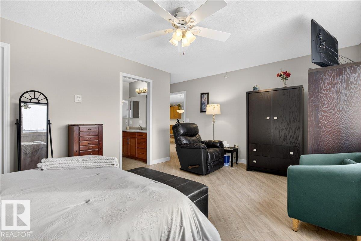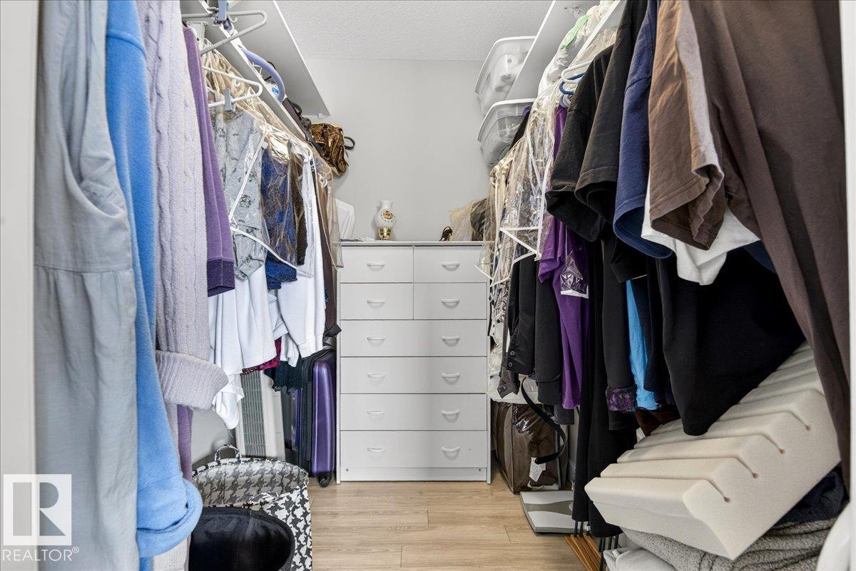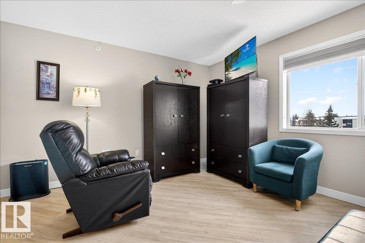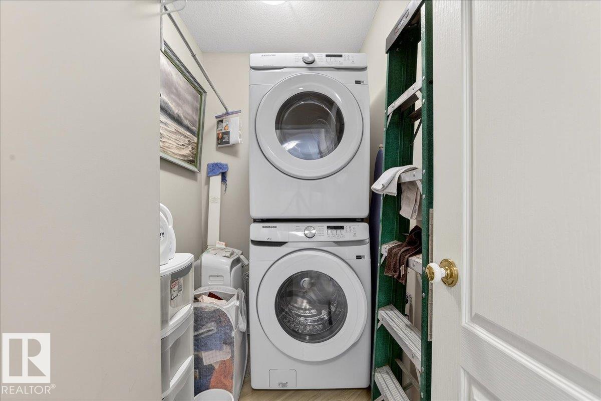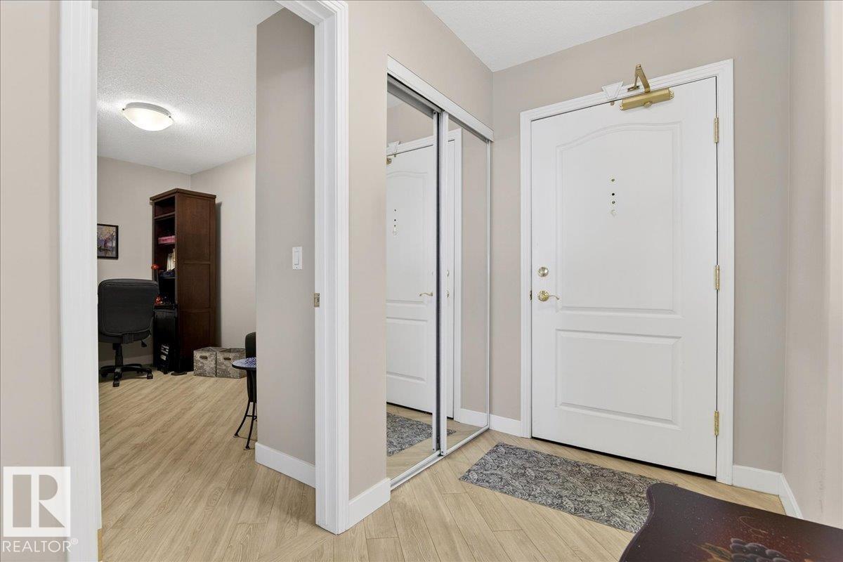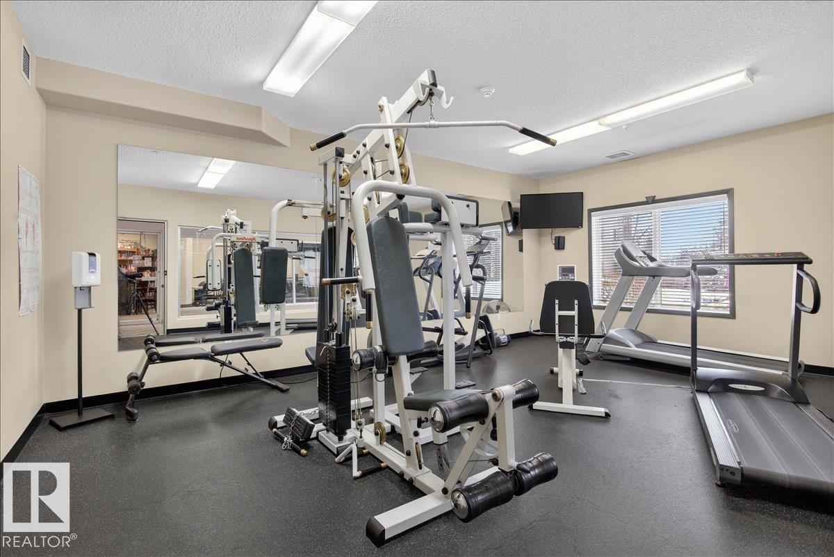 Experience luxury 55+ living in this beautifully appointed top-floor 1 bedroom + den, 1 bathroom condo at Country Club Court in Callingwood! Soaring vaulted ceilings create a bright, airy yet cozy atmosphere you?ll love coming home to, complemented by in-floor heating throughout the entire building for year-round comfort. Step onto your private deck overlooking the tranquil courtyard?an ideal setting for morning coffee or evening unwinding. The spacious den offers flexibility for a home office, reading nook, or guest space. Enjoy exceptional amenities including underground parking with car wash, a fully equipped fitness room with sauna, woodworking shop, and an inviting social room for gatherings. Perfectly located near shopping, transit, and everyday conveniences, this well-managed building offers comfort, community, and low-maintenance living in desirable Callingwood.