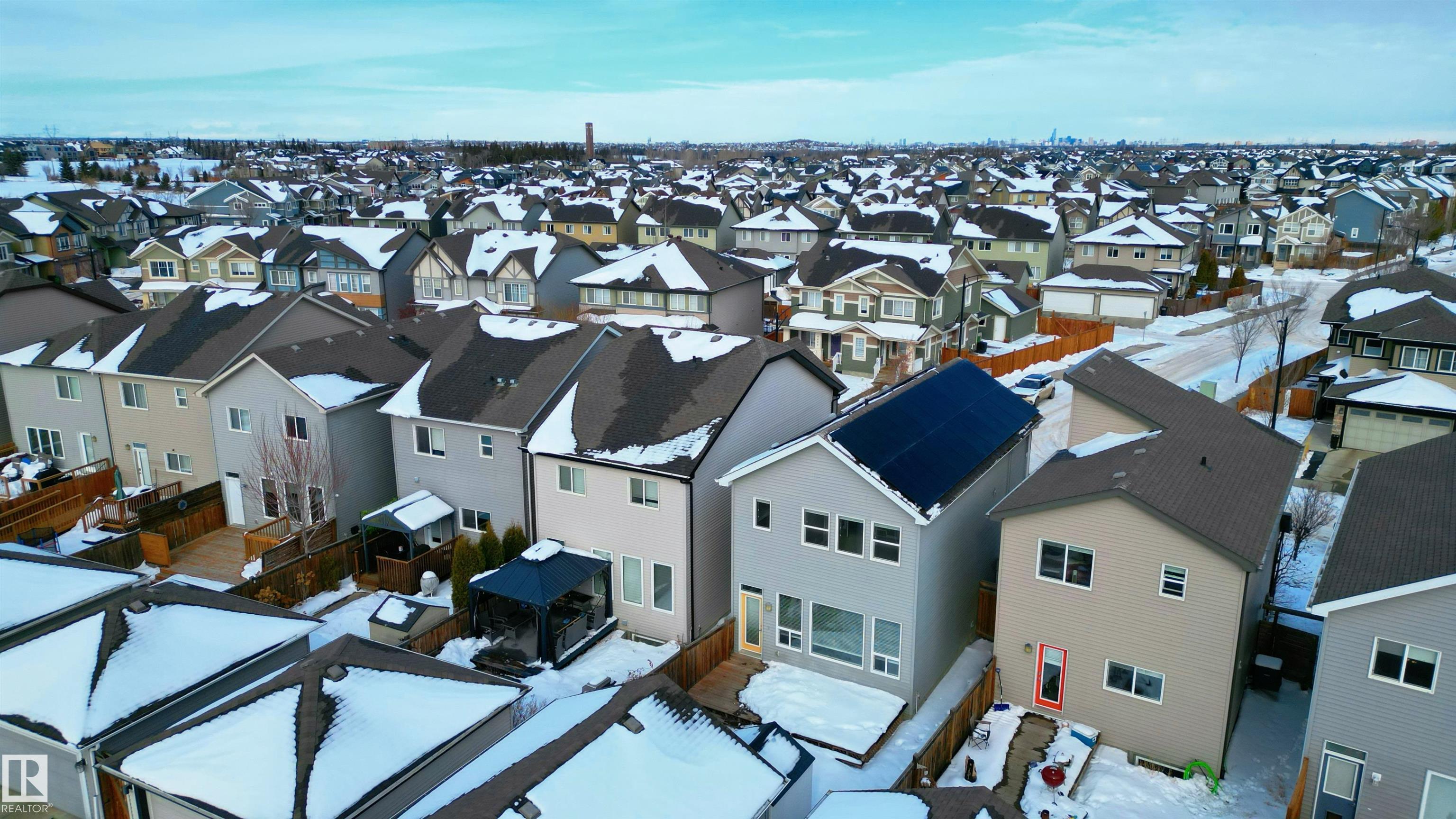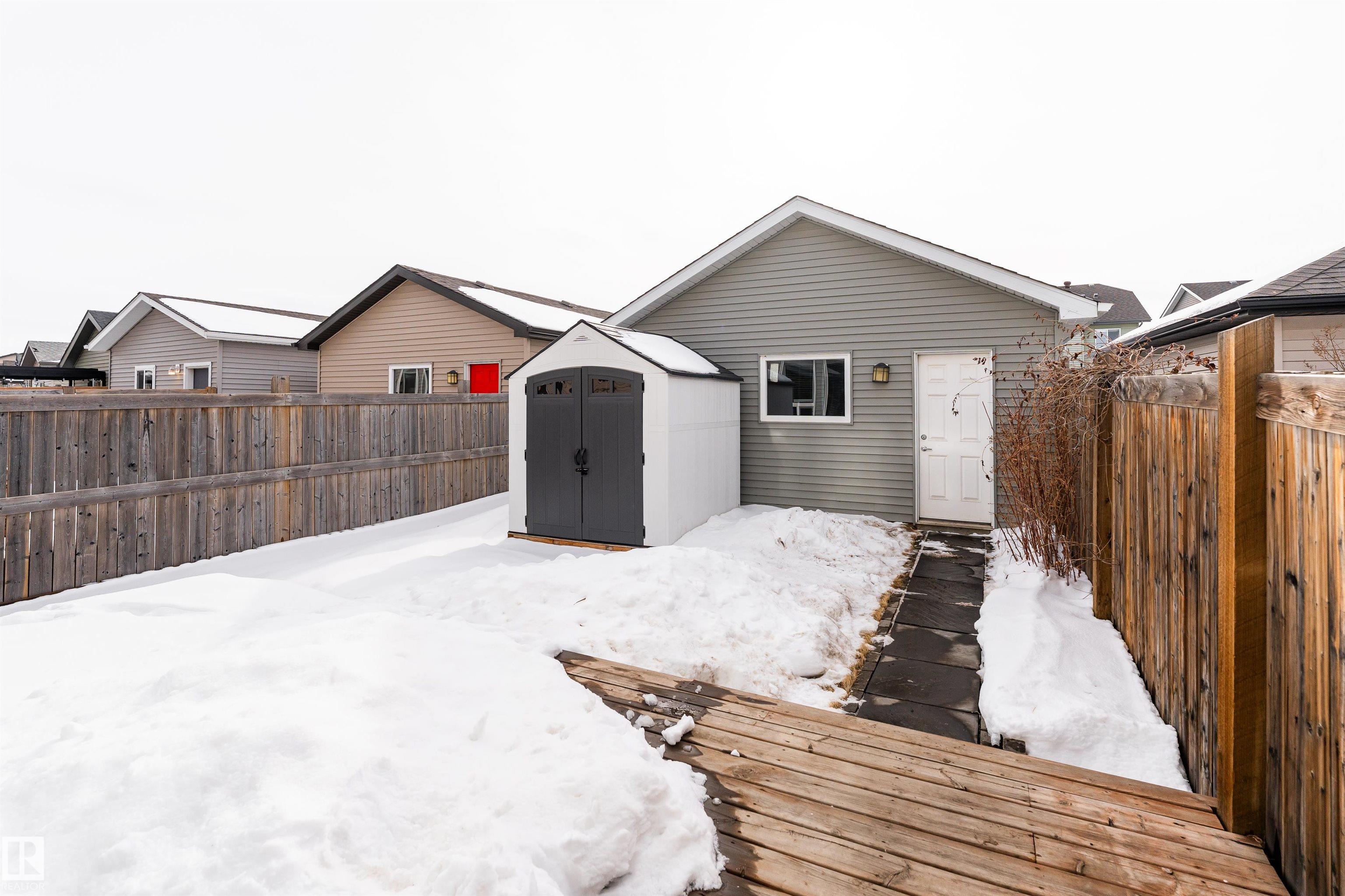 Welcome to Paisley, where comfort, style, and smart upgrades come together in this beautifully maintained Craftsman-style home. The main floor greets you with a bright entryway and a flexible front den, perfect for a home office! The heart of the home is the modern eat-in kitchen, featuring sleek cabinetry, glass tile backsplash, stainless steel appliances, and generous counter space. The open layout flows seamlessly into the living area, creating an ideal setting for both everyday living and entertaining. Upstairs, the spacious primary bedroom offers a private ensuite and two ample closets. Two additional bedrooms, a full 4-piece bathroom, and convenient second-floor laundry add practicality. Enjoy the fully fenced backyard complete with a spacious deck and a handy storage shed provides extra room for tools and outdoor equipment. Comfort is covered year-round with central A/C, while ENERGY-EFFICIENT SOLAR PANELS offer long-term savings and sustainability. *some photos are virtually staged*
