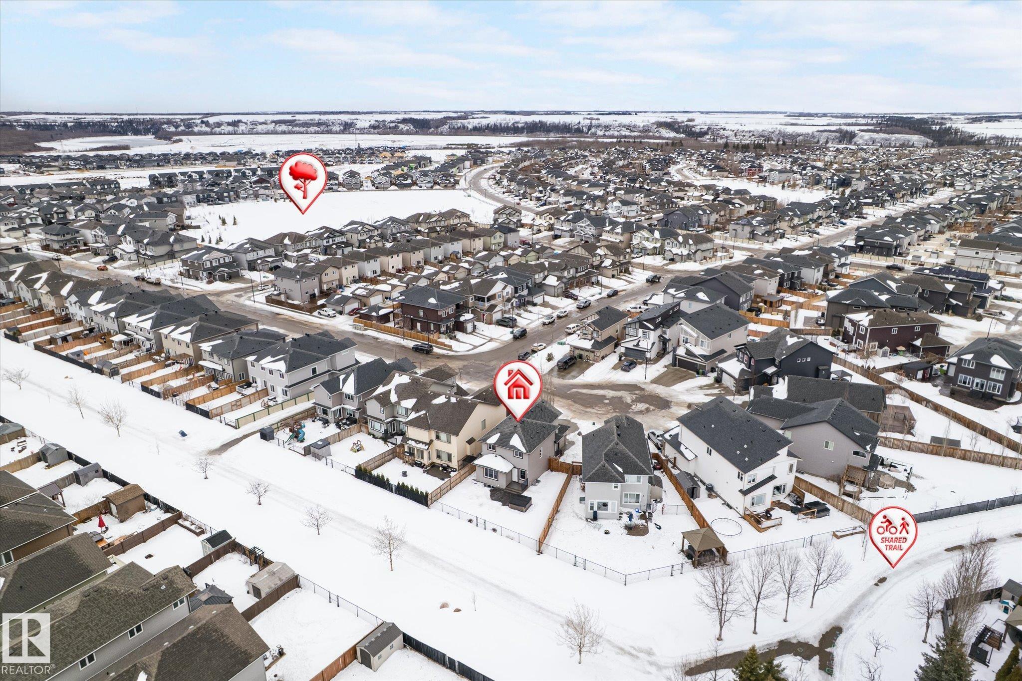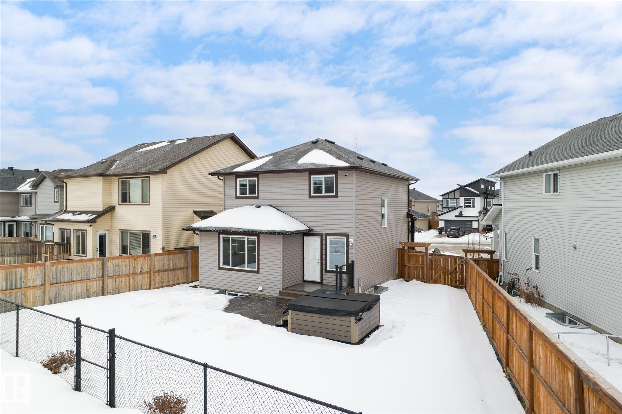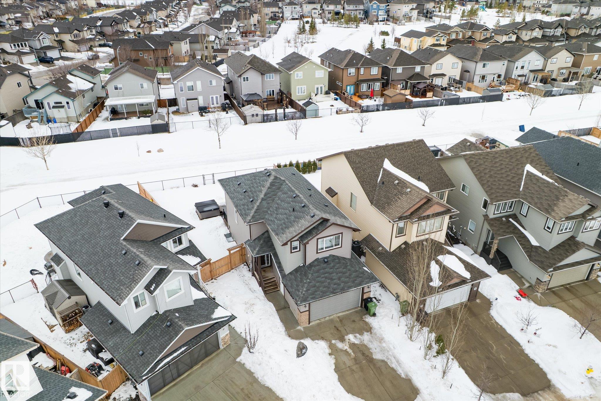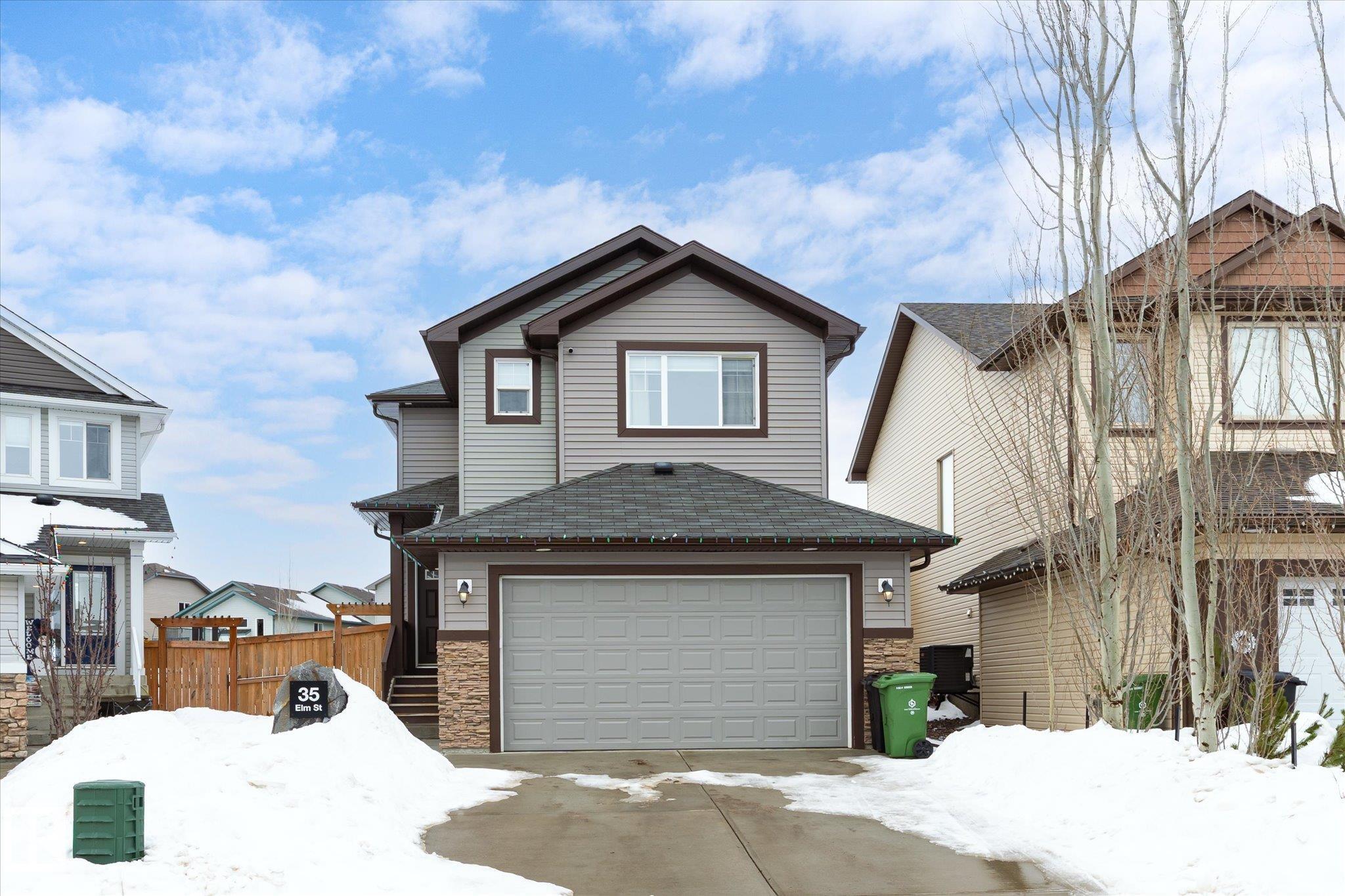 Located in Westpark this beautiful 3 bedroom, 2.5 bath two-storey resides on a desirable pie lot, backing a greenspace and walking path. The island kitchen features a convenient eat-up bar and walk-through pantry that opens to a bright living room and dining room. Large bonus room upstairs for added space. The upper level includes 3 bedrooms, convenient laundry closet, and 4 pc bathroom. The primary has a 4 pc ensuite and walk-in closet. Enjoy impressive upgrades including a 13x30 stamped and dyed concrete patio designed to resemble slate rock, plus a 10x6 composite deck with built-in LED lighting. The double attached garage is heated and fully equipped with 40-amp service, hot and cold water, extra electrical outlets, floor drain, and plumbed for in-floor heat. Additional highlights include central AC and a partially finished basement that has been drywalled. Close to all amenities, this is truly a fantastic family home!