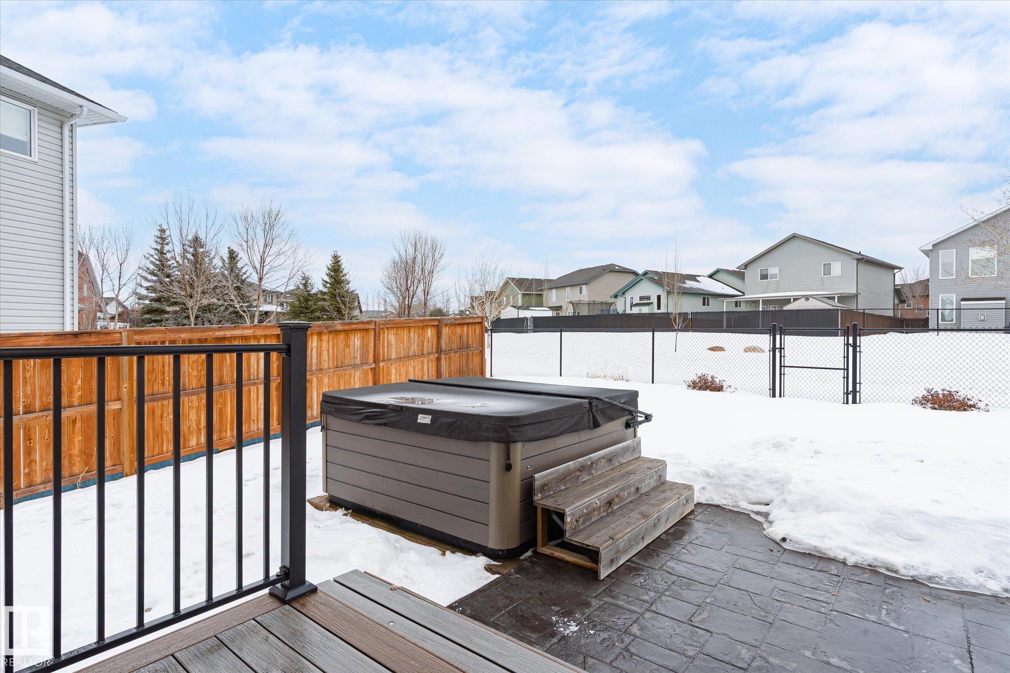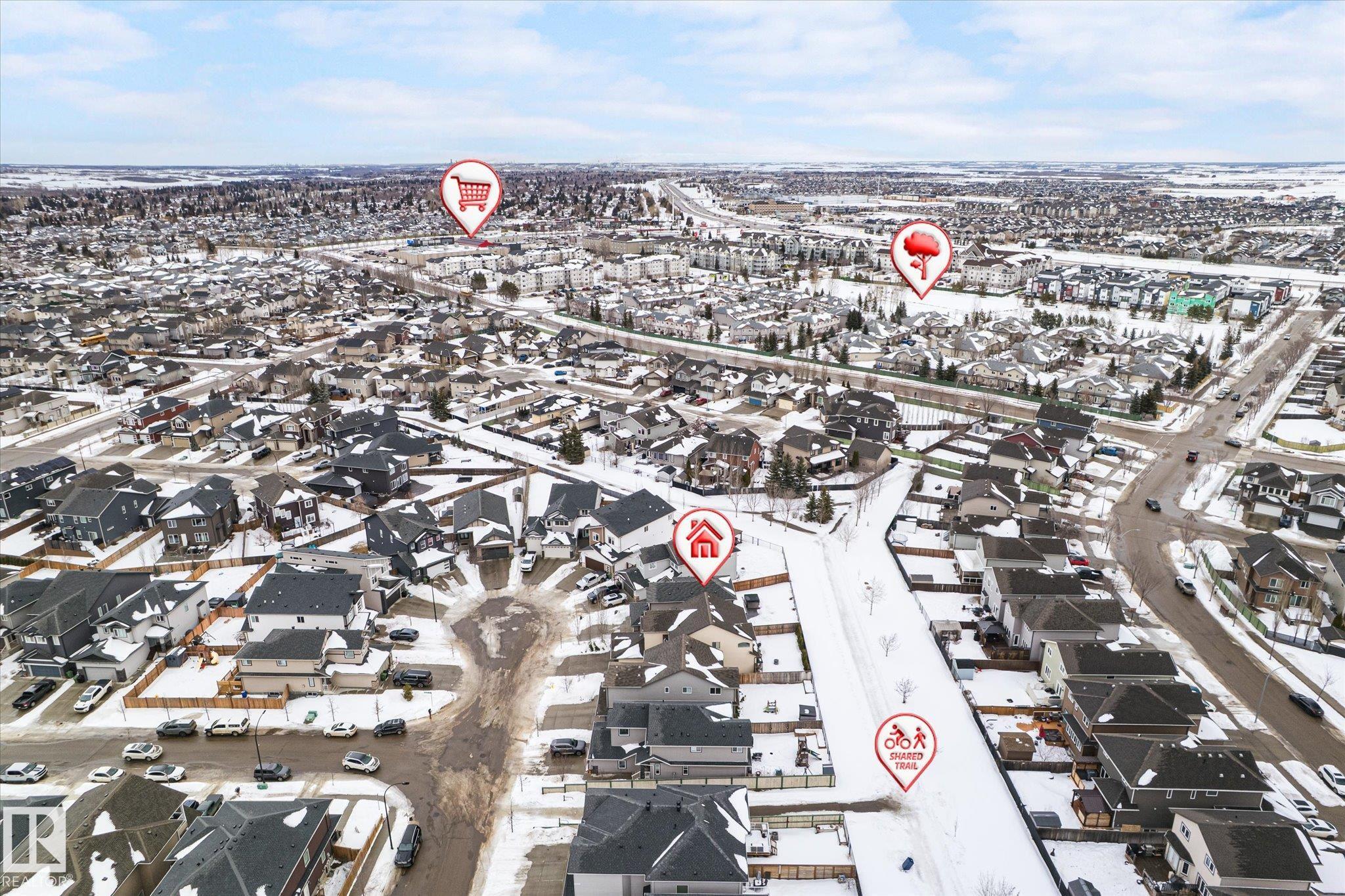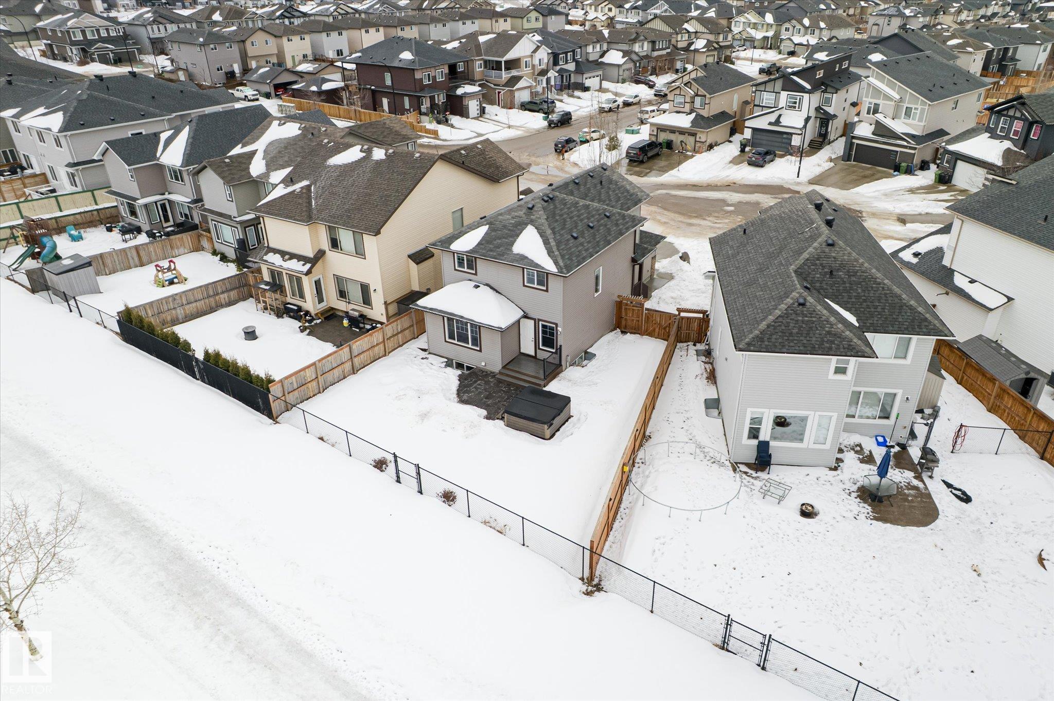 Located in Westpark this beautiful 3 bedroom, 2.5 bath two-storey resides on a desirable pie lot, backing a greenspace and walking path. The island kitchen features a convenient eat-up bar and walk-through pantry that opens to a bright living room and dining room. Large bonus room upstairs for added space. The upper level includes 3 bedrooms, convenient laundry closet, and 4 pc bathroom. The primary has a 4 pc ensuite and walk-in closet. Enjoy impressive upgrades including a 13x30 stamped and dyed concrete patio designed to resemble slate rock, plus a 10x6 composite deck with built-in LED lighting. The double attached garage is heated and fully equipped with 40-amp service, hot and cold water, extra electrical outlets, floor drain, and plumbed for in-floor heat. Additional highlights include central AC and a partially finished basement that has been drywalled. Close to all amenities, this is truly a fantastic family home!