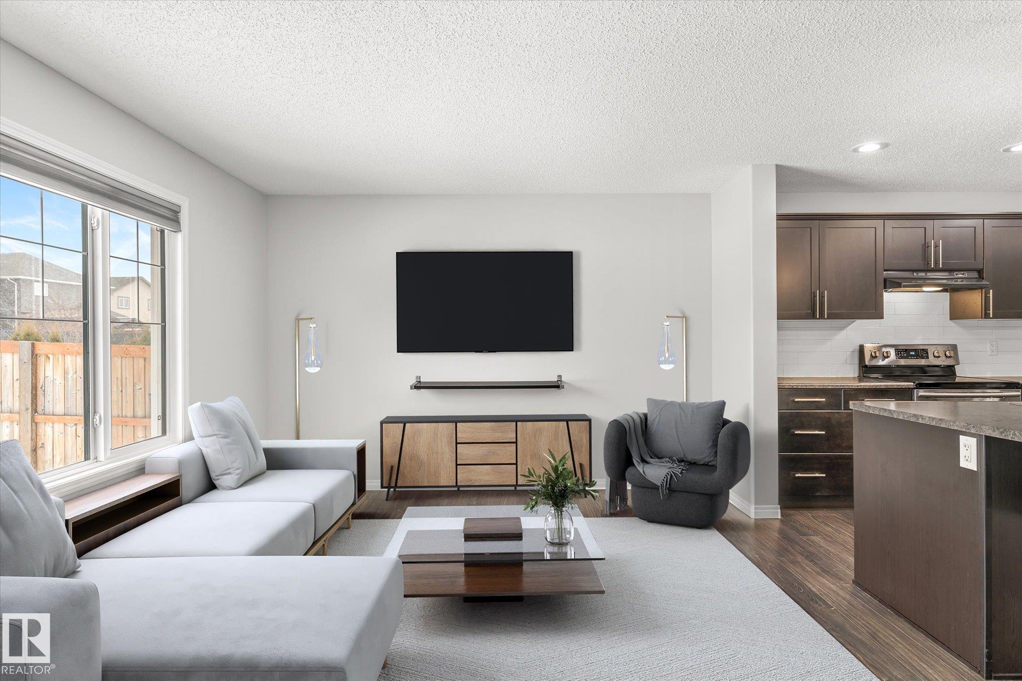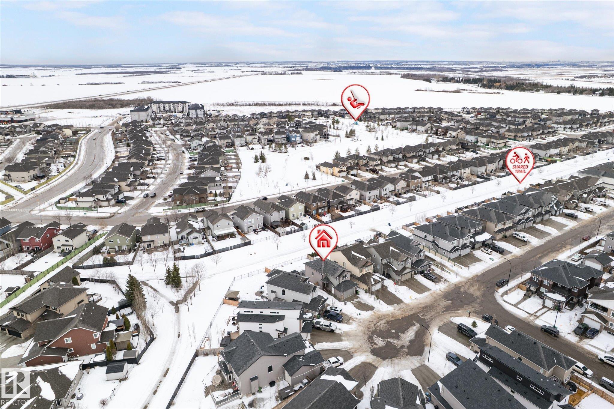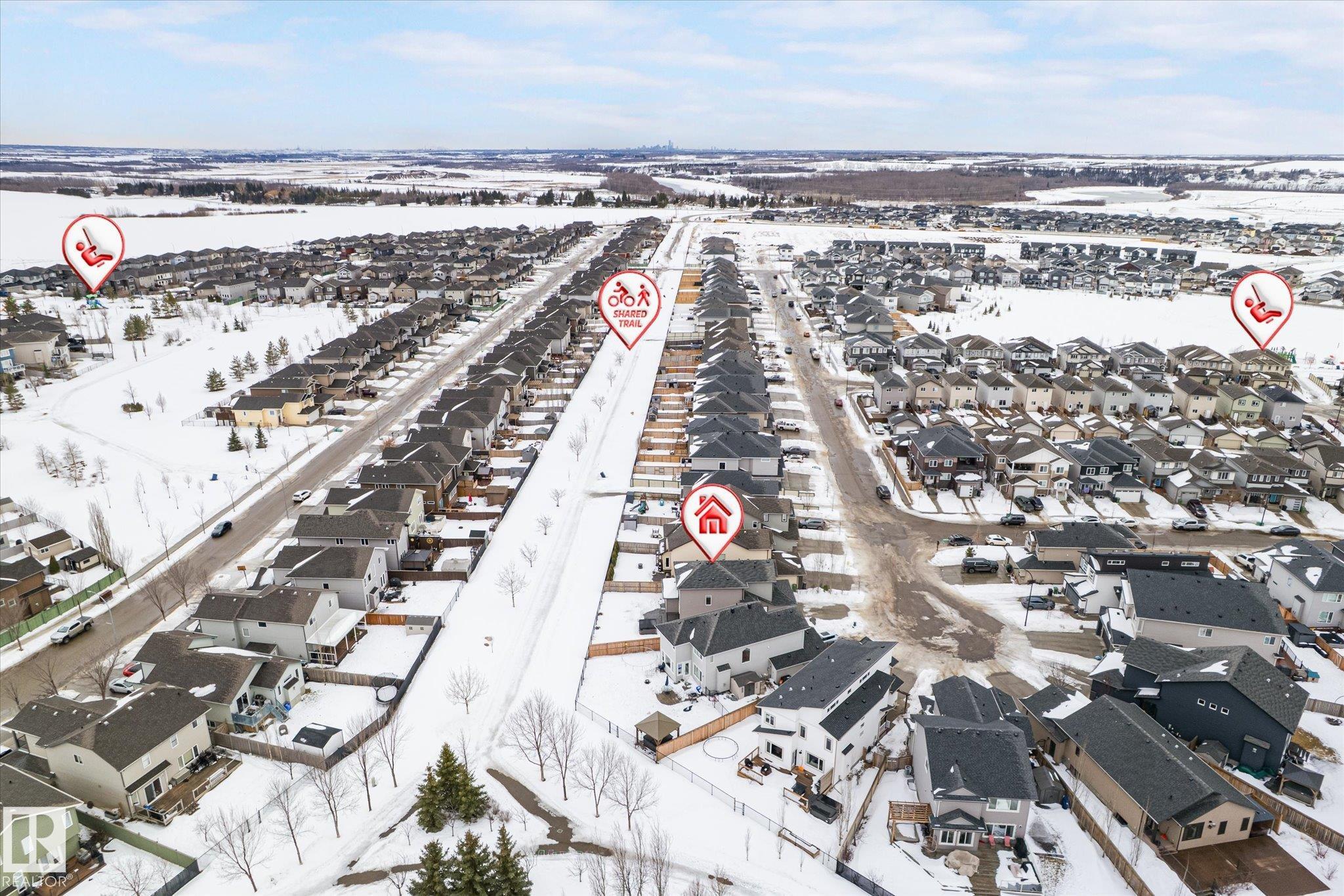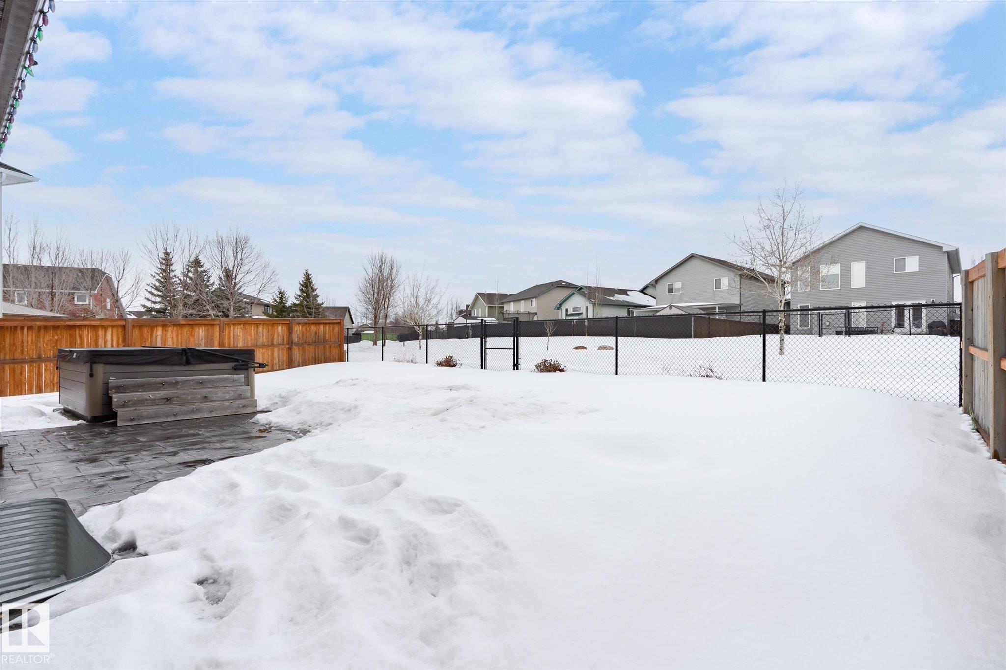 Located in Westpark this beautiful 3 bedroom, 2.5 bath two-storey resides on a desirable pie lot, backing a greenspace and walking path. The island kitchen features a convenient eat-up bar and walk-through pantry that opens to a bright living room and dining room. Large bonus room upstairs for added space. The upper level includes 3 bedrooms, convenient laundry closet, and 4 pc bathroom. The primary has a 4 pc ensuite and walk-in closet. Enjoy impressive upgrades including a 13x30 stamped and dyed concrete patio designed to resemble slate rock, plus a 10x6 composite deck with built-in LED lighting. The double attached garage is heated and fully equipped with 40-amp service, hot and cold water, extra electrical outlets, floor drain, and plumbed for in-floor heat. Additional highlights include central AC and a partially finished basement that has been drywalled. Close to all amenities, this is truly a fantastic family home!