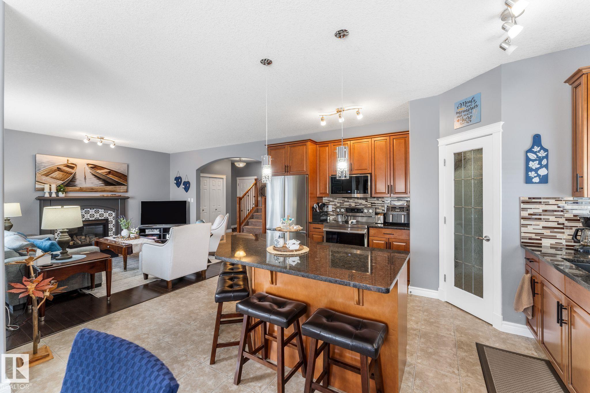 Beautiful fully finished two-story home located on a quiet crescent next to a walking path and close to Pryce Alderson Park. The main floor features 9? ceilings, a spacious living room with updated fireplace, large dining area, main floor laundry, and a stunning renovated kitchen with walk thru panty, updated island, countertops, and NEW appliances. Upstairs offers 3 bedrooms including a primary suite with walk-in closet and full 4-piece ensuite, plus an additional 4-piece bath. The finished basement includes a large entertainment/rec space, bedroom, 3pc bathroom and office area. Enjoy air conditioning, large concrete edging, large deck and heated garage. Completely finished inside and out?move-in ready!