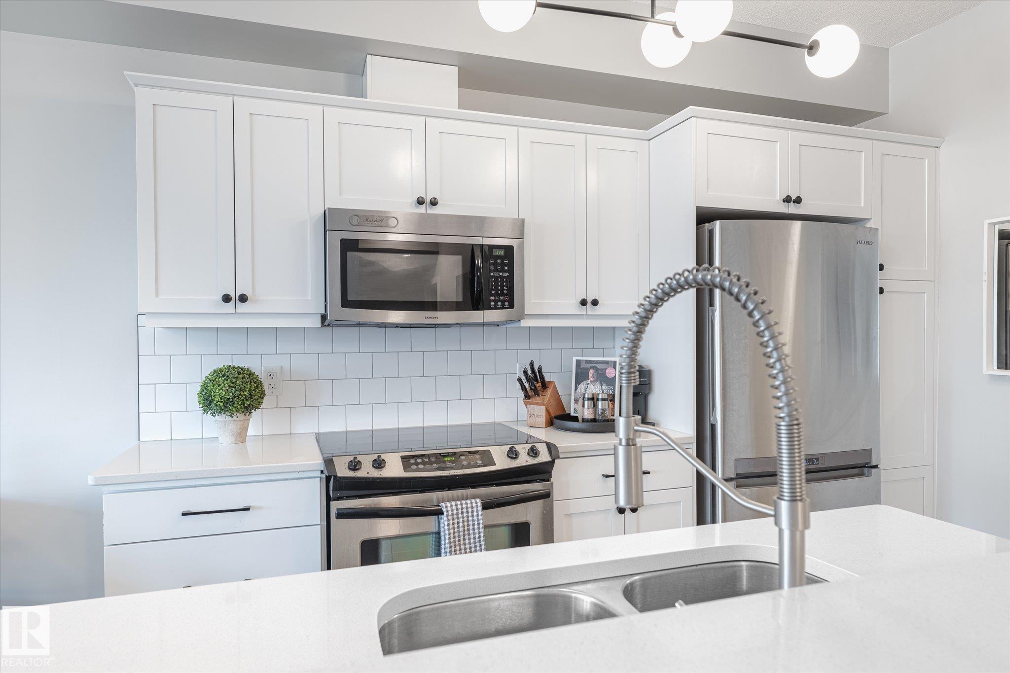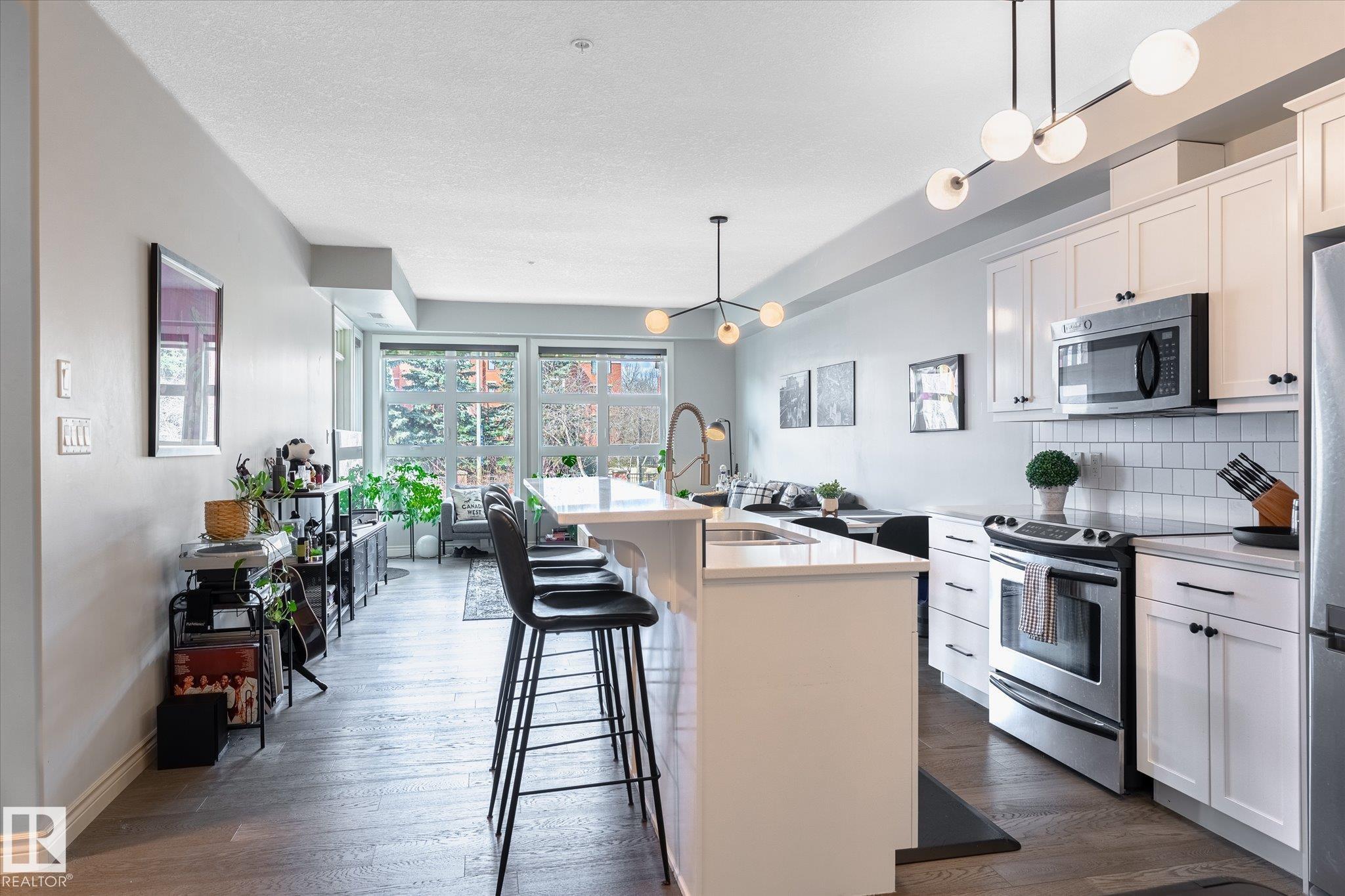 Step into this beautifully maintained & updated suite in the heart of Cloverdale, just minutes from downtown Edmonton and only steps from the River Valley trail system and in the summer... Folk Fest!! ? perfect for outdoor enthusiasts and urban commuters alike. Enjoy a bright open-concept layout with stylish finishes and in-suite laundry, thoughtfully designed for daily living and entertaining. The modern updated kitchen features quality appliances, quartz countertops and ample cabinetry, flowing seamlessly into the spacious living area. Retreat to two generous bedrooms, including a primary with its own ensuite for added convenience and comfort. The private ground-level entrance adds ease of access plus enjoy the underground parking stall, storage cage and building amenities including car wash. Located close to the Valley Line LRT, major bus routes, parks, shops, and restaurants, this home combines lifestyle and location in one outstanding package especially with LOW CONDO FEES!