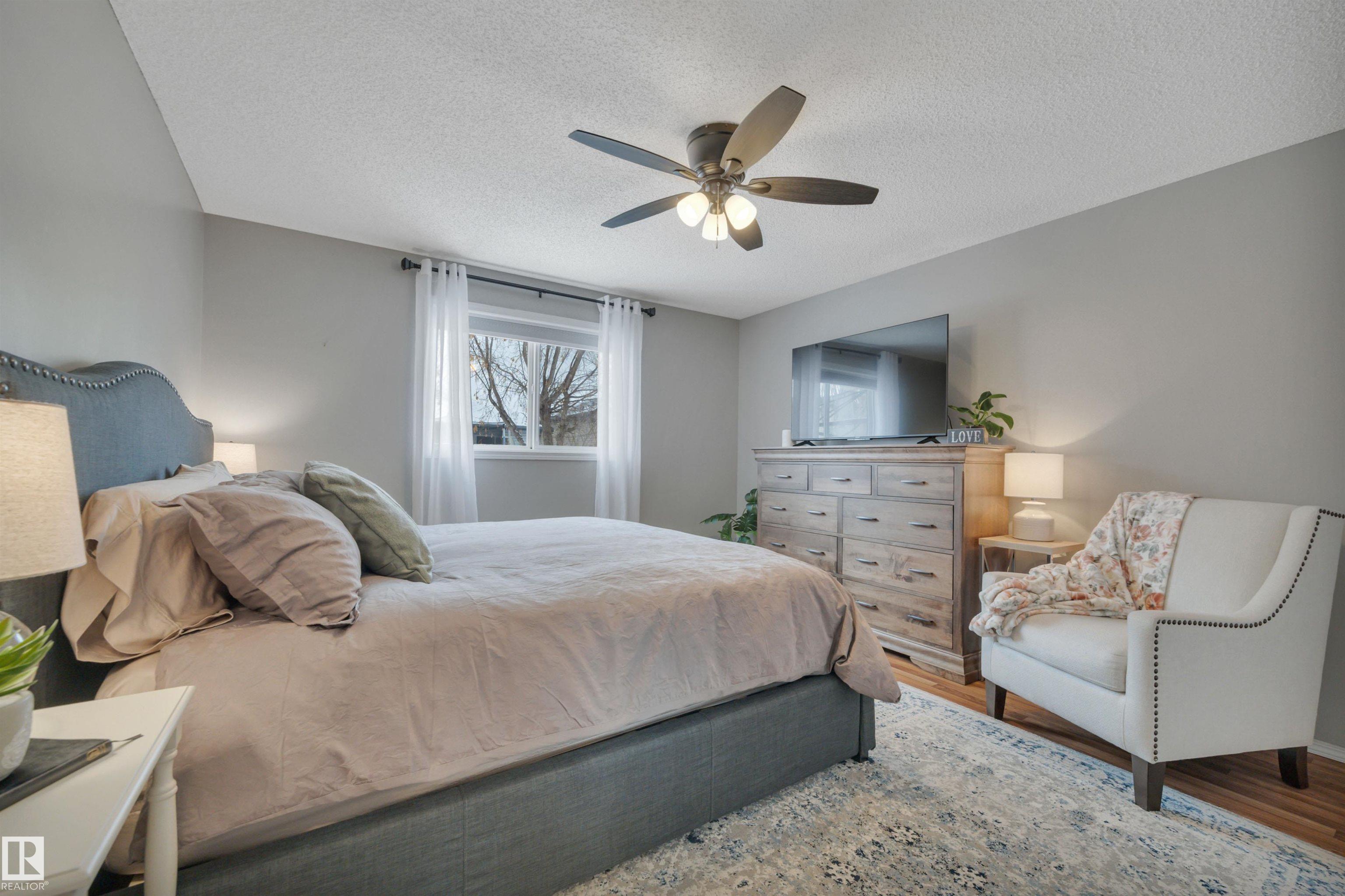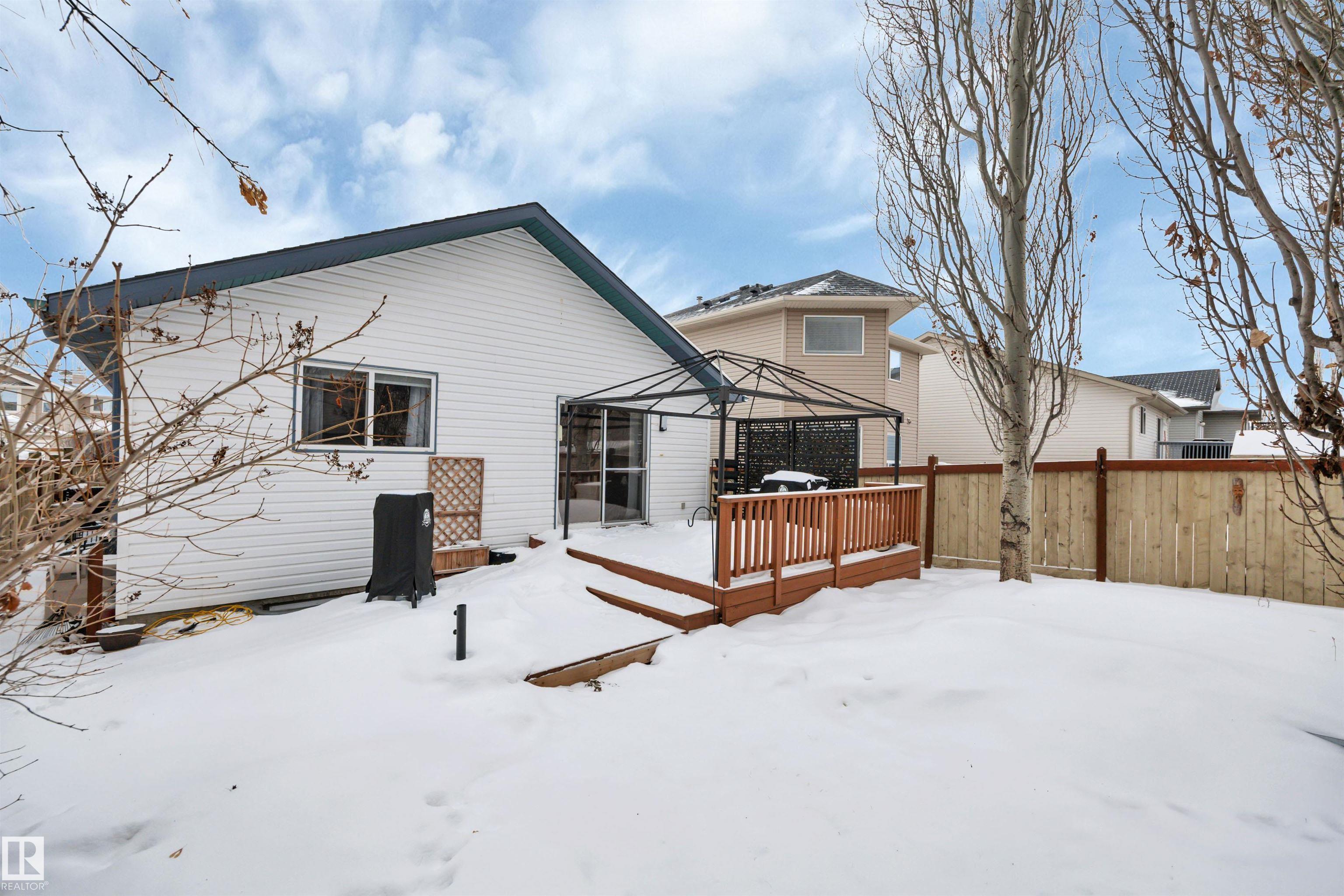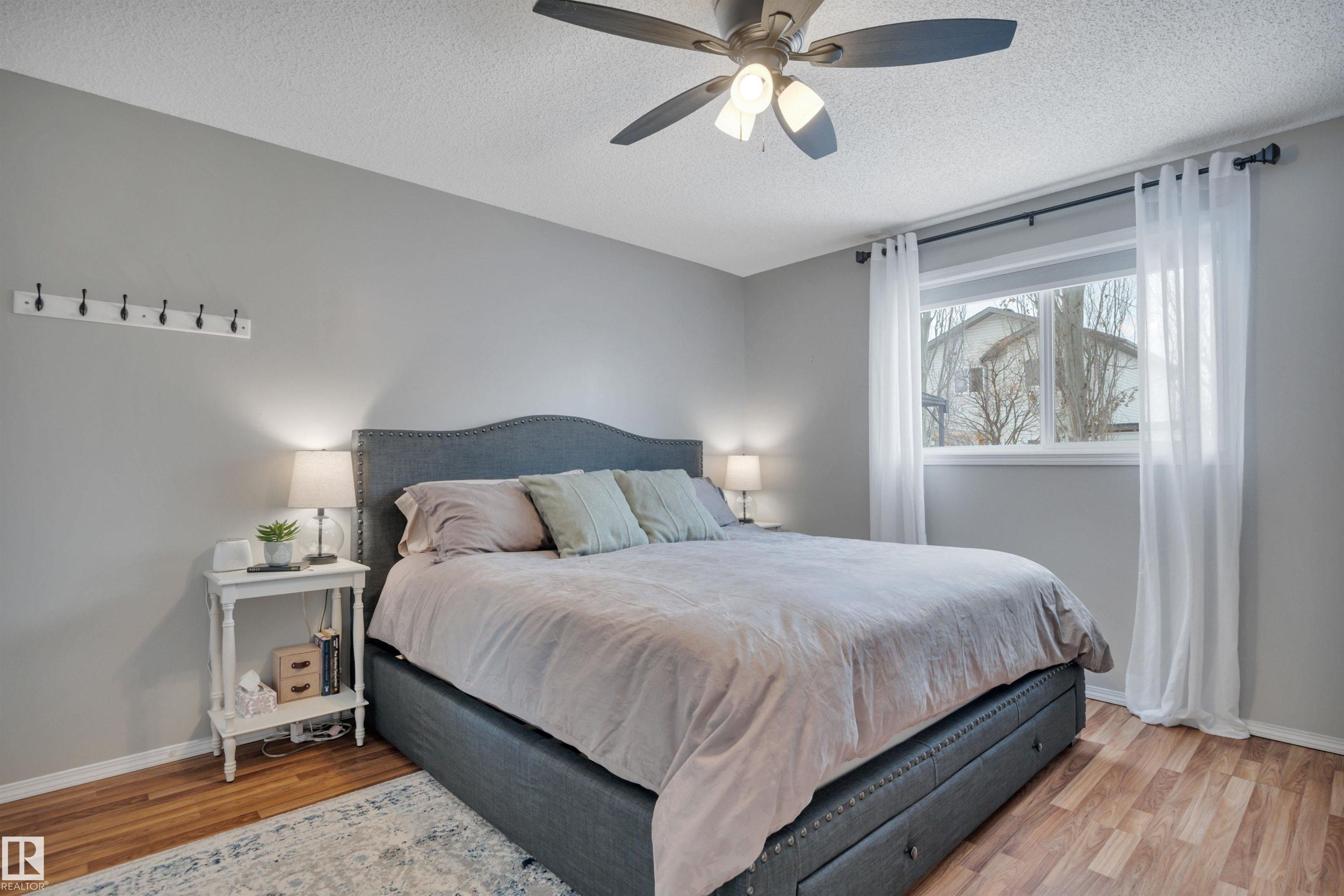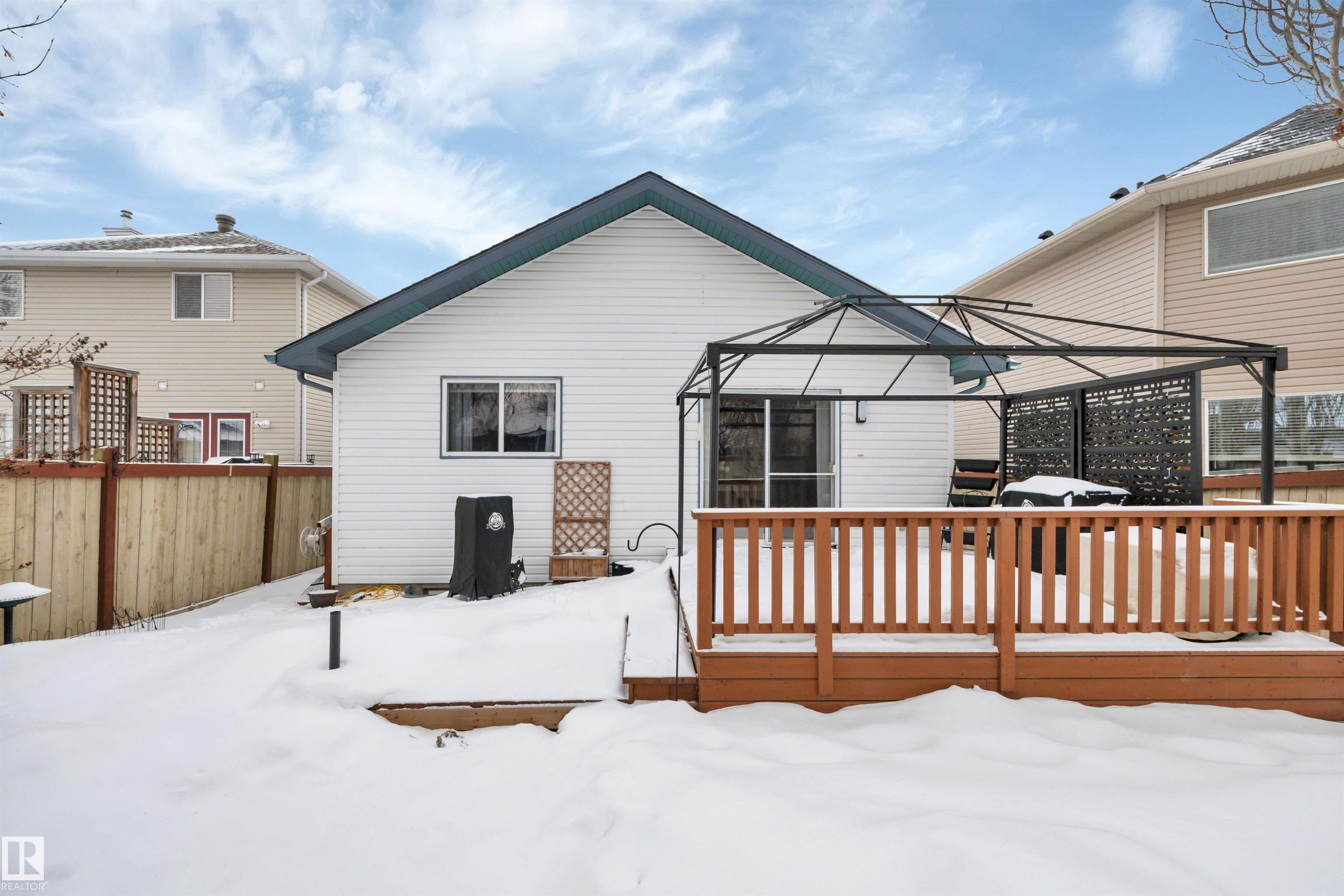 Immaculate and inviting, this charming bungalow is the ideal home for a small family or first-time buyers. The spacious eat-in kitchen features ceramic tile, warm oak cabinetry, and patio doors that open onto a private yard with a welcoming deck. Laminate flooring flows through the bright living room and into the two generously sized main-floor bedrooms. The fully finished basement adds exceptional value with a large 3-piece bathroom, comfortable rec room, additional bedroom, bonus room and abundant storage space. Situated within walking distance of Lakewood Park and close to schools, shopping, a theatre and everyday amenities, this home is also an easy commute to Edmonton. An attached double garage completes the package. This is a delightful home to move into and enjoy!