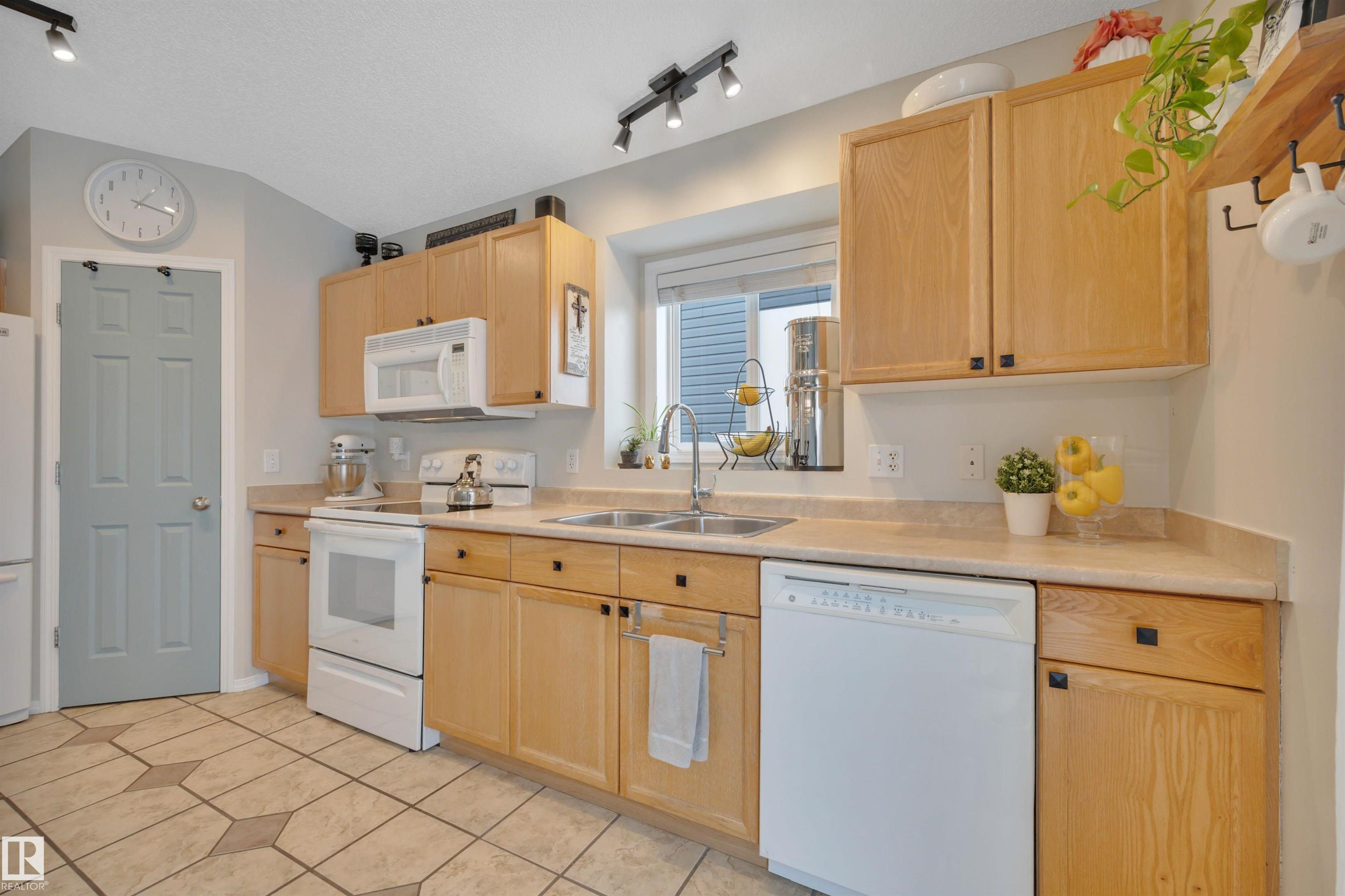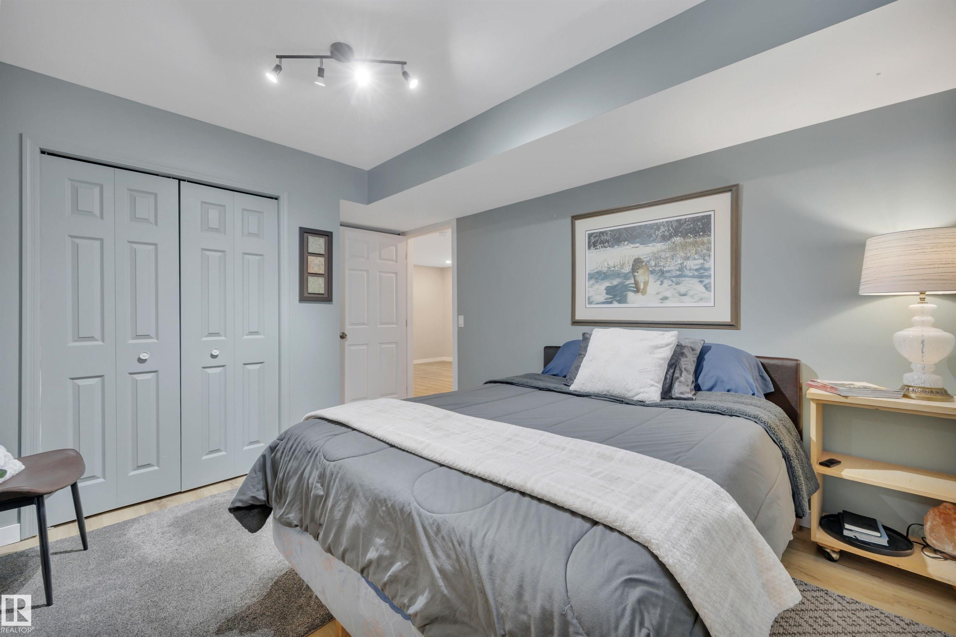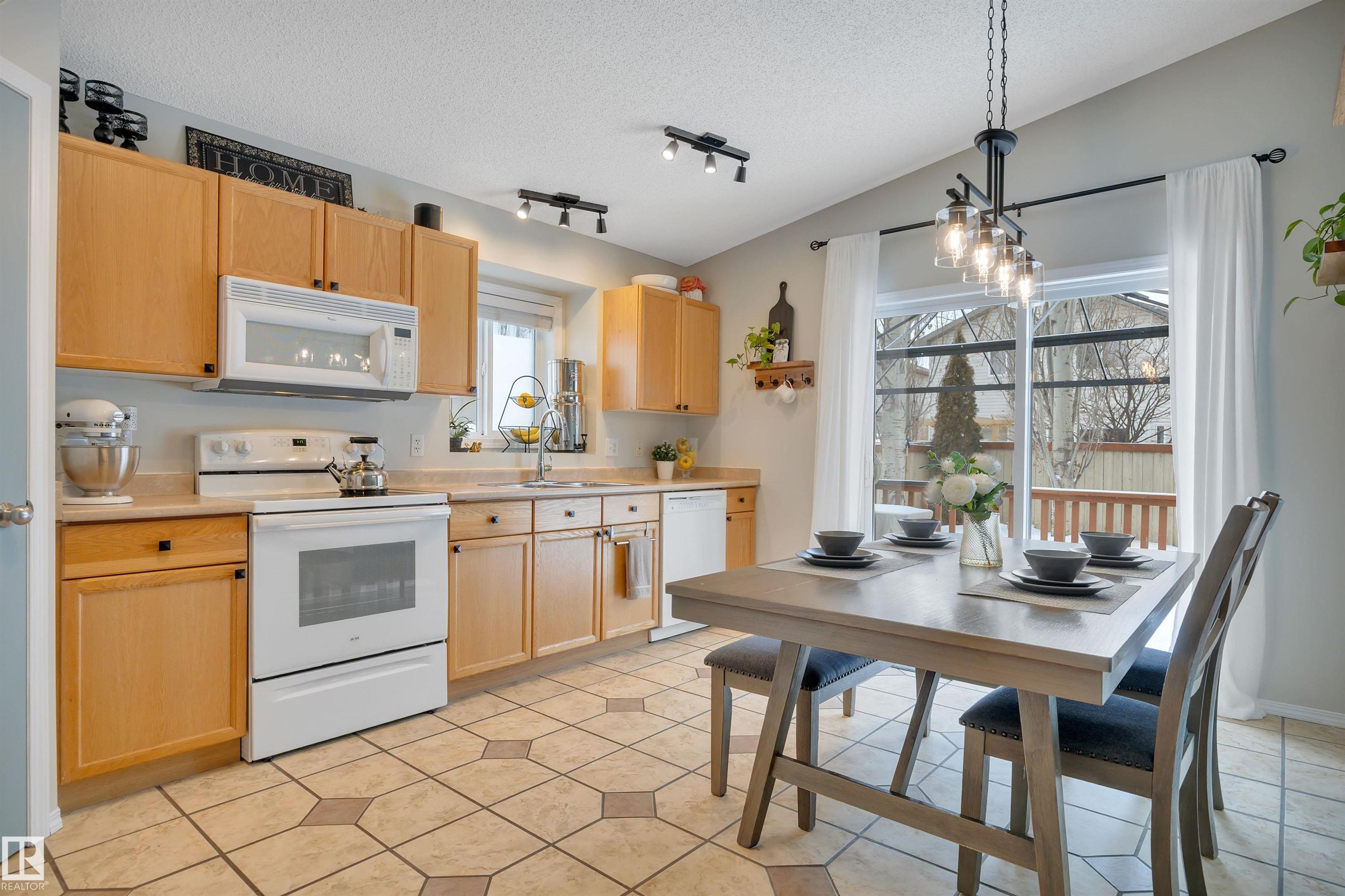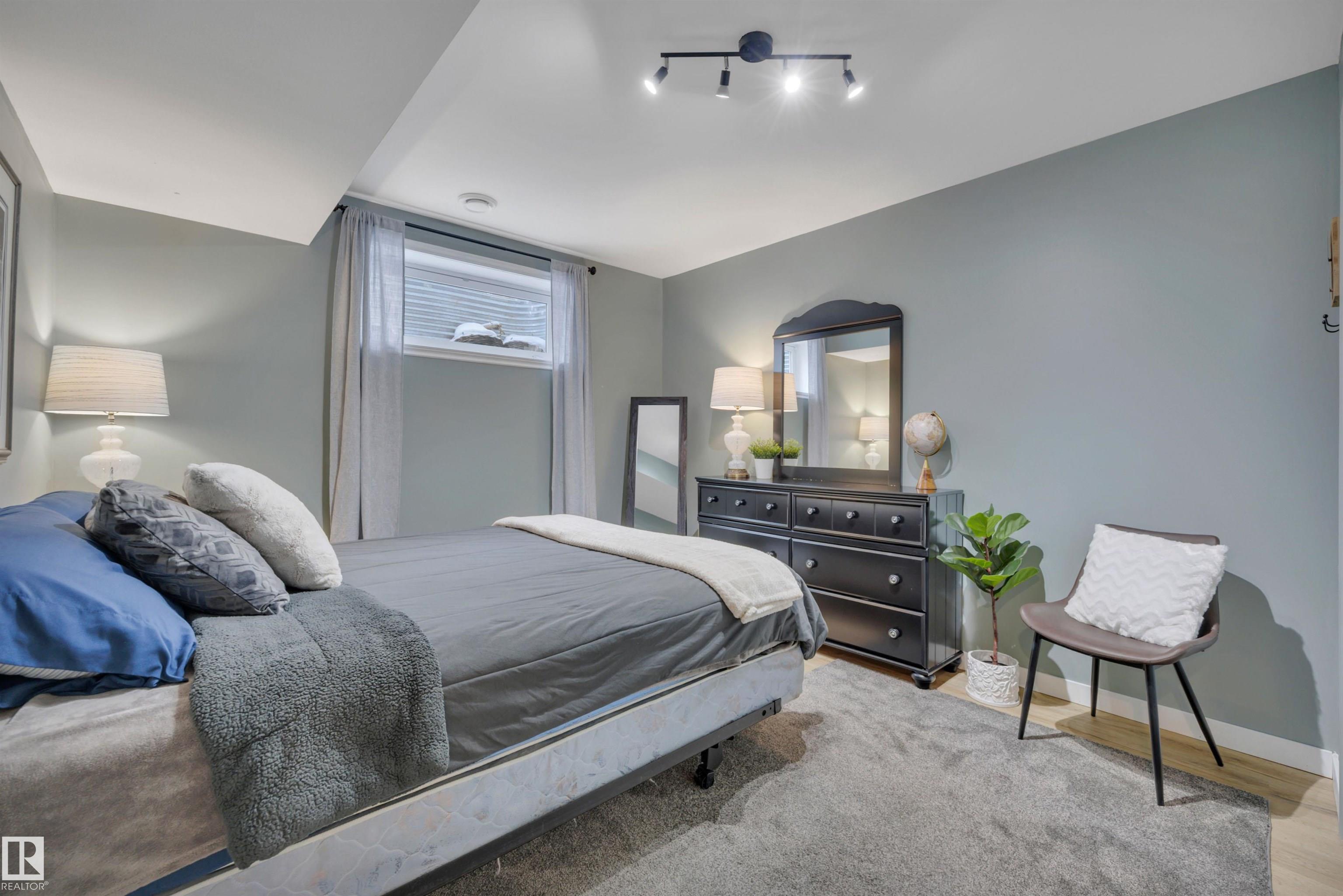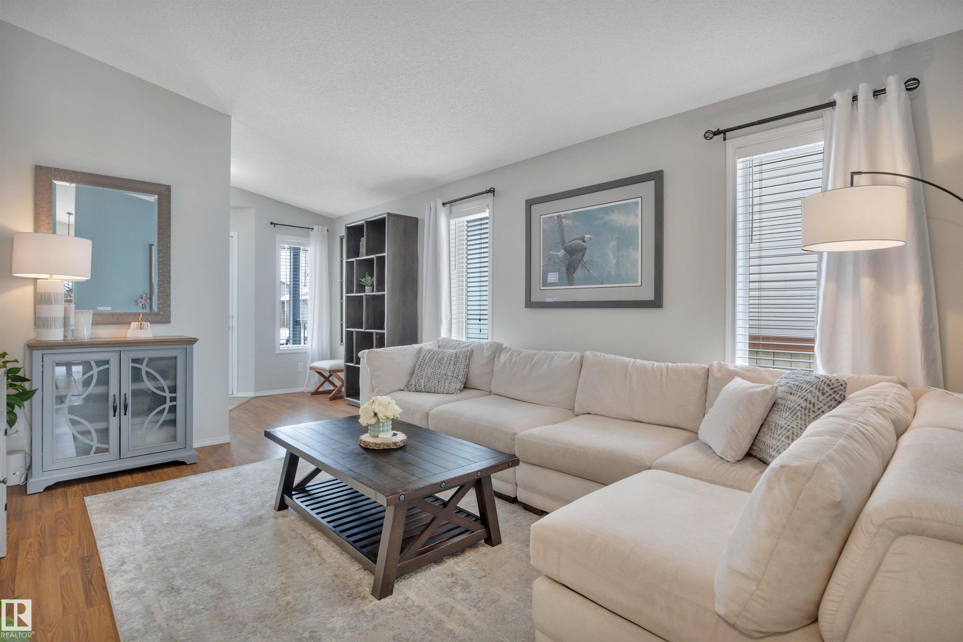 Immaculate and inviting, this charming bungalow is the ideal home for a small family or first-time buyers. The spacious eat-in kitchen features ceramic tile, warm oak cabinetry, and patio doors that open onto a private yard with a welcoming deck. Laminate flooring flows through the bright living room and into the two generously sized main-floor bedrooms. The fully finished basement adds exceptional value with a large 3-piece bathroom, comfortable rec room, additional bedroom, bonus room and abundant storage space. Situated within walking distance of Lakewood Park and close to schools, shopping, a theatre and everyday amenities, this home is also an easy commute to Edmonton. An attached double garage completes the package. This is a delightful home to move into and enjoy!