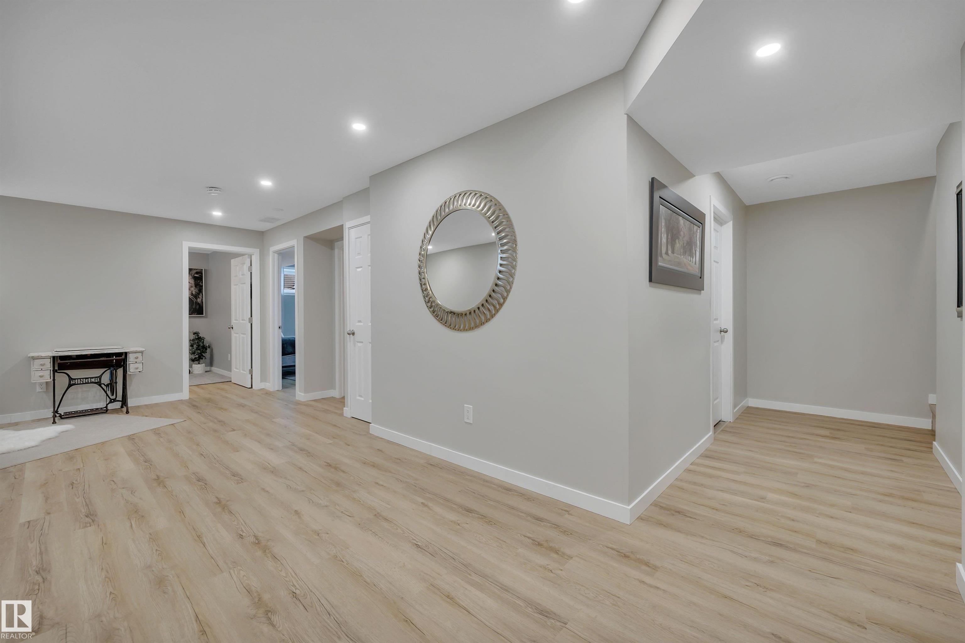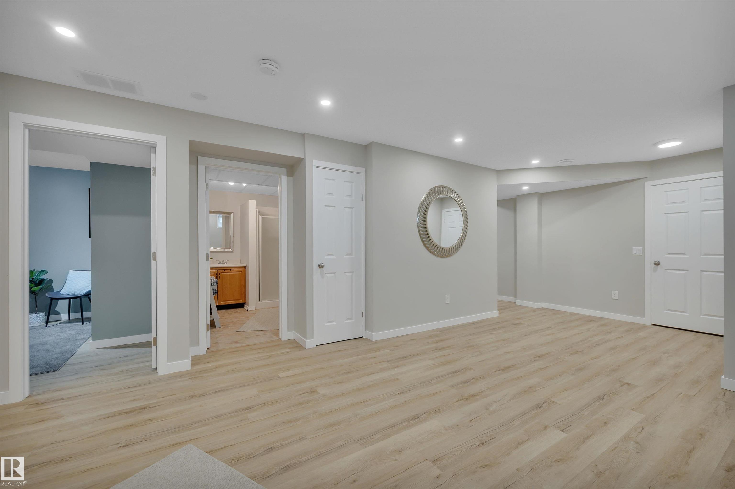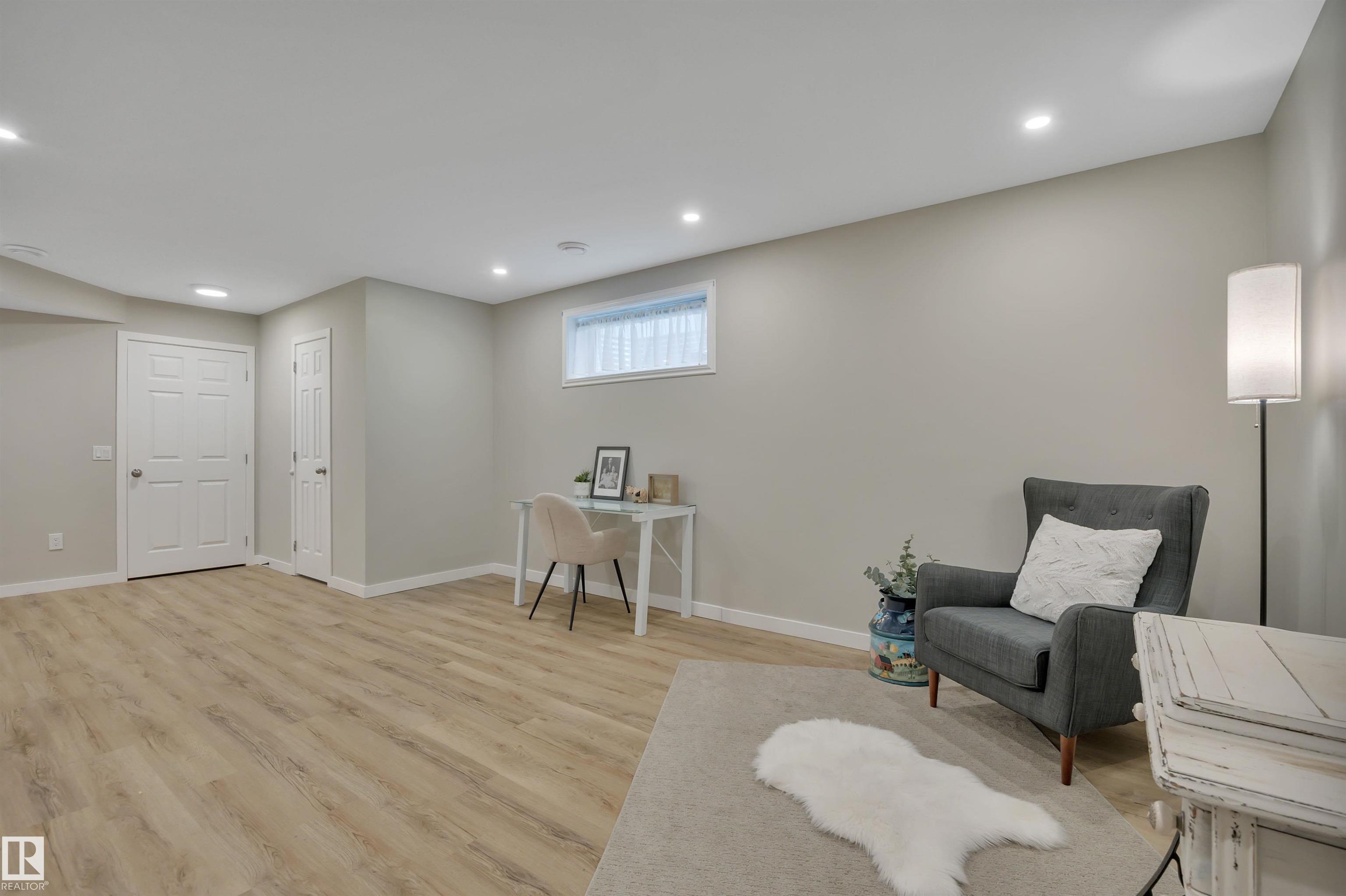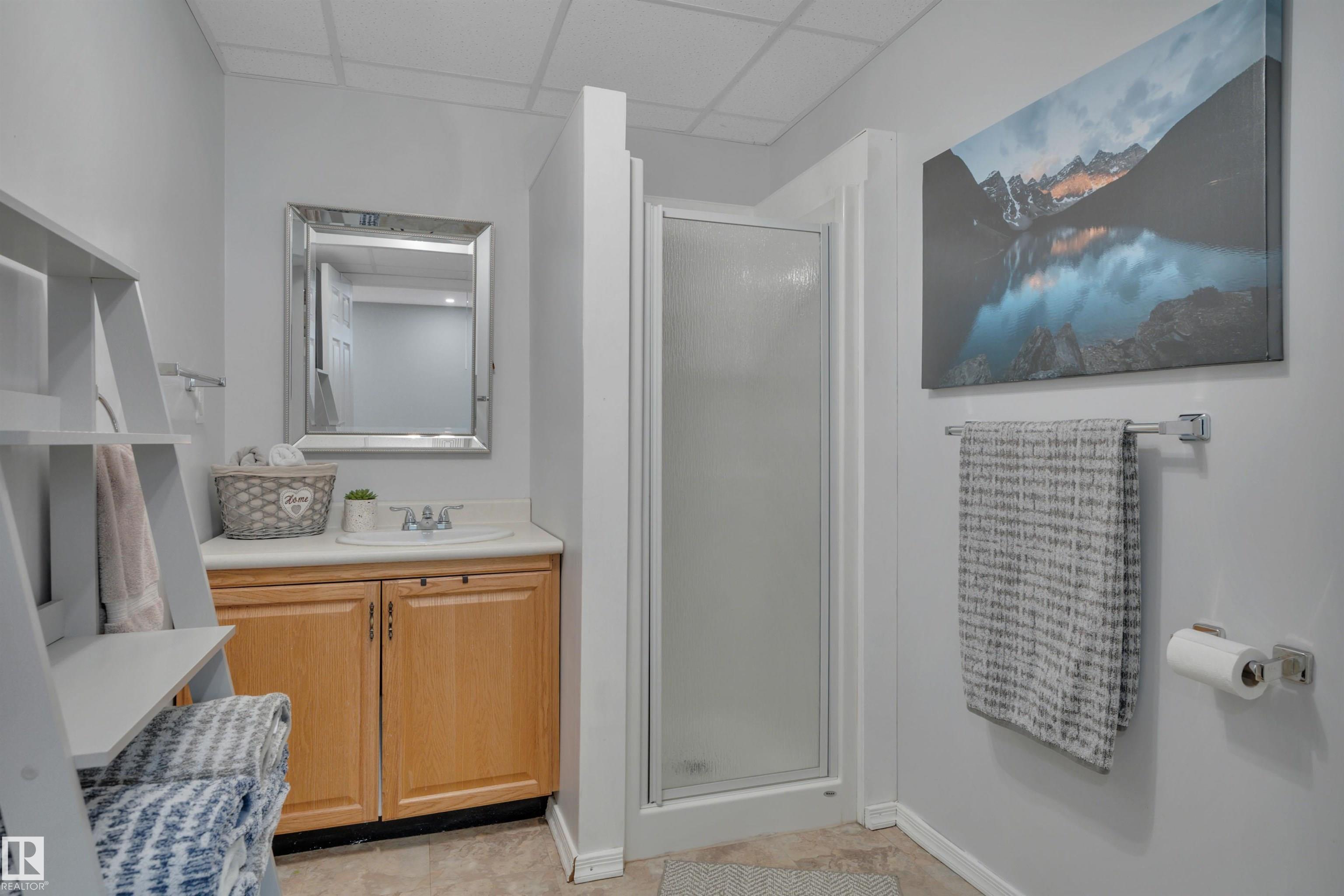 Immaculate and inviting, this charming bungalow is the ideal home for a small family or first-time buyers. The spacious eat-in kitchen features ceramic tile, warm oak cabinetry, and patio doors that open onto a private yard with a welcoming deck. Laminate flooring flows through the bright living room and into the two generously sized main-floor bedrooms. The fully finished basement adds exceptional value with a large 3-piece bathroom, comfortable rec room, additional bedroom, bonus room and abundant storage space. Situated within walking distance of Lakewood Park and close to schools, shopping, a theatre and everyday amenities, this home is also an easy commute to Edmonton. An attached double garage completes the package. This is a delightful home to move into and enjoy!