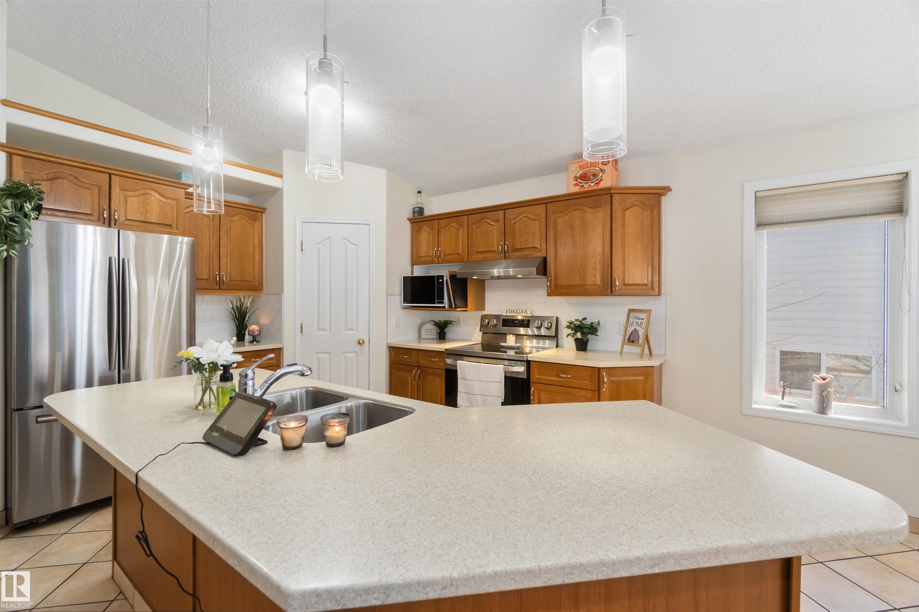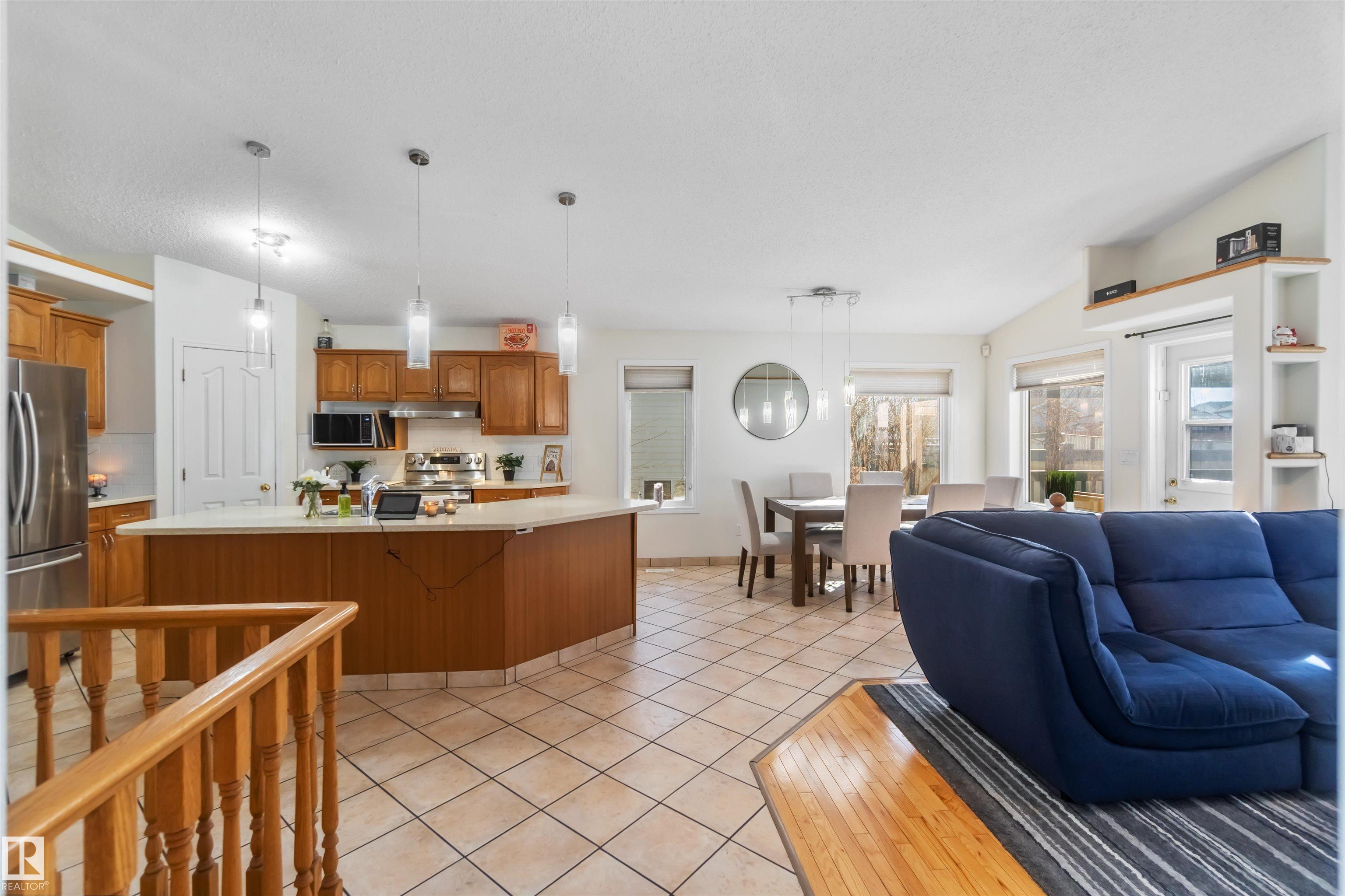 Welcome Home! This bungalow is a rare find that delivers the space and lifestyle your family has been looking for. An open-concept kitchen, living, and dining area, featuring stainless steel appliances, solid wood cabinetry, quartz countertops, a corner pantry, and an island with seating perfect for entertaining. Soaring ceilings and decorative ledges add character throughout, while a large front den offers the ideal home office or formal sitting room. Out back, enjoy summer on the deck under a gazebo, surrounded by mature fruit trees ? a private, established backyard that?s perfect for summers outdoors. The fully developed basement adds two more bedrooms and a flex space perfect for a family room or kids' area, plus an updated full bathroom with red light therapy to help the whole family recharge. This well maintained home also features central air conditioning, an air cleaner and water softener. Close to the Henday and Yellowhead for an easy commute, with parks, schools, and street parking all nearby.