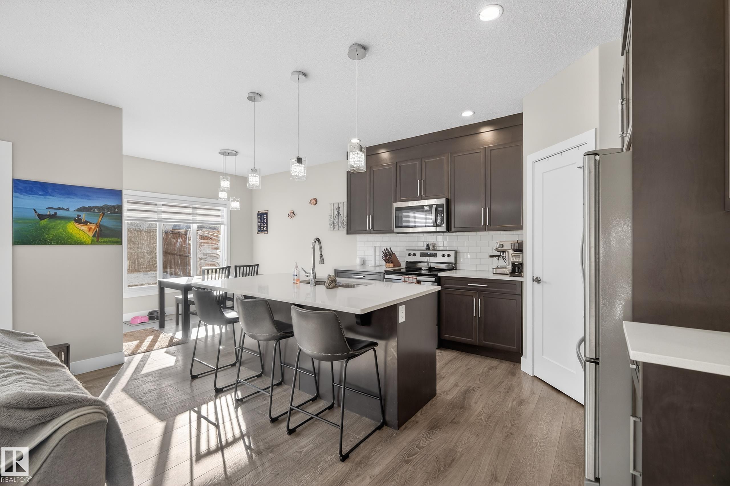Beautiful two-storey in Blackstone featuring a LEGAL BASEMENT SUITE?perfect for added income or multi-generational living. Designed with both style and function in mind, the bright open-concept main floor offers a warm and inviting living room, dining area, and a modern kitchen with stainless steel appliances, ideal for everyday living and entertaining. Upstairs, you?ll find three bedrooms including a primary retreat with walk-in closet and spa-inspired ensuite with dual vanity, glass shower, and soaker tub. A versatile bonus room/second family room and convenient upper-level laundry add to the home?s thoughtful layout. The fully finished legal basement suite with separate entrance features its own kitchen, living space, bedroom, bathroom, and laundry. Outside, enjoy the patio and ample green space, plus a double attached garage.