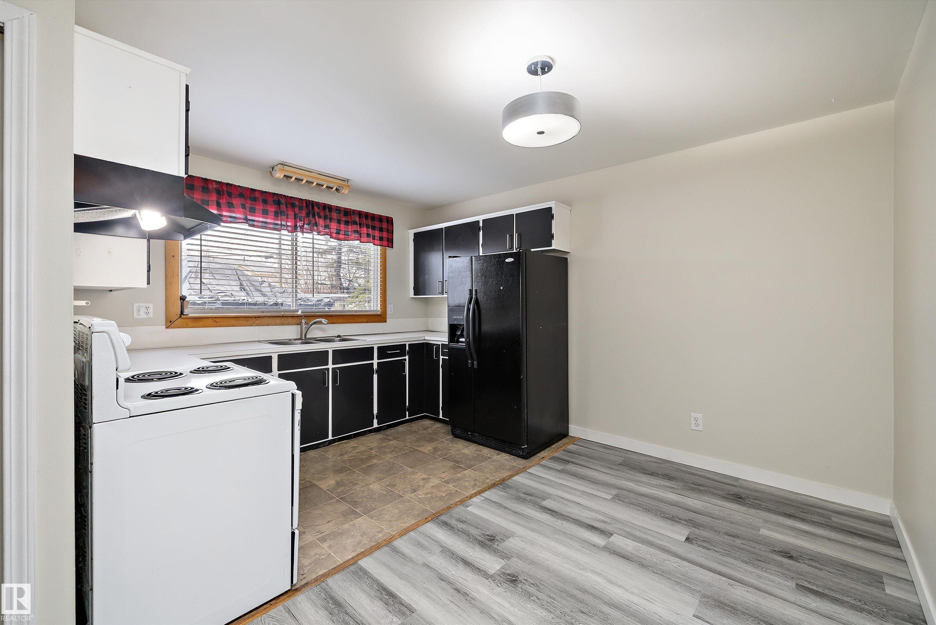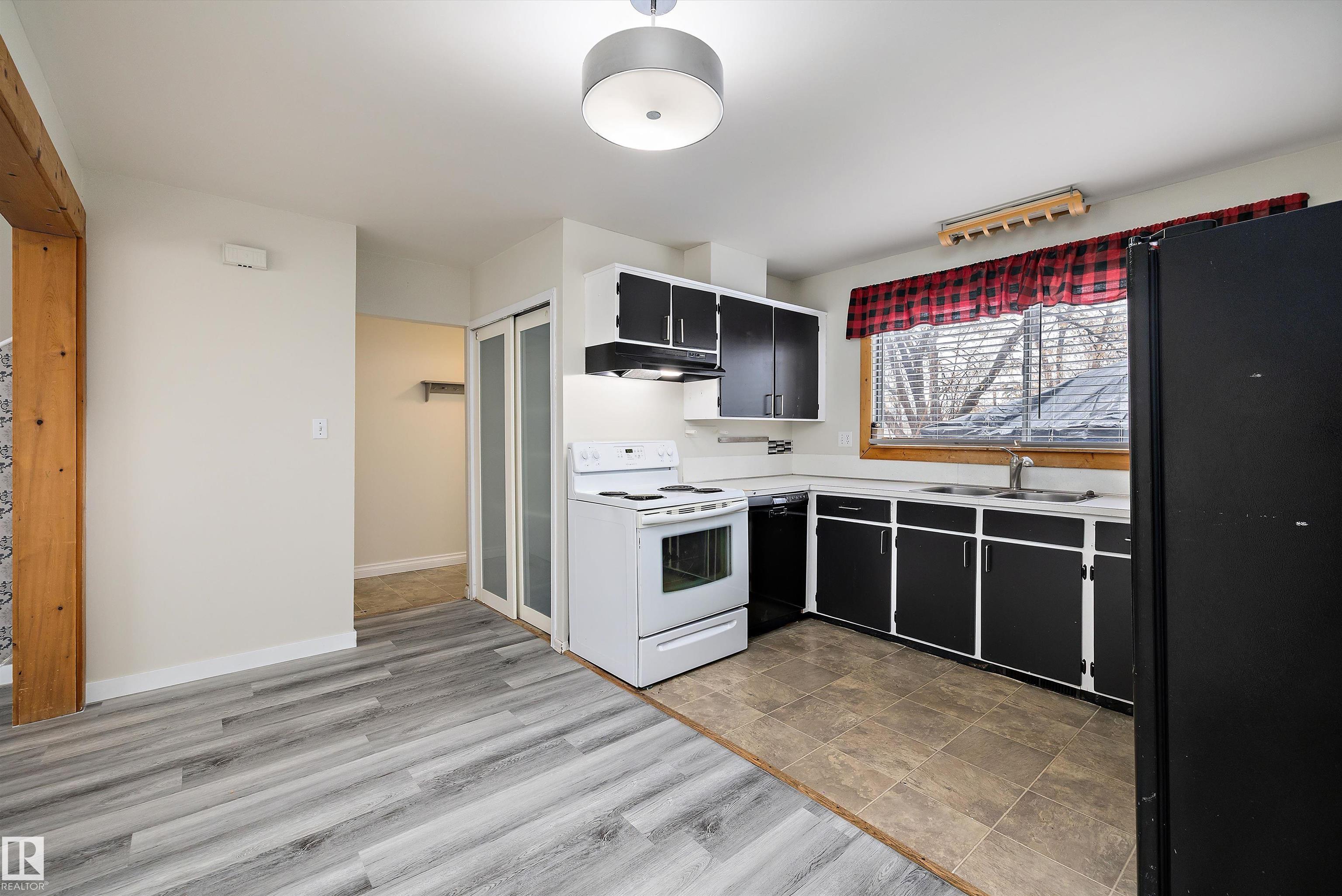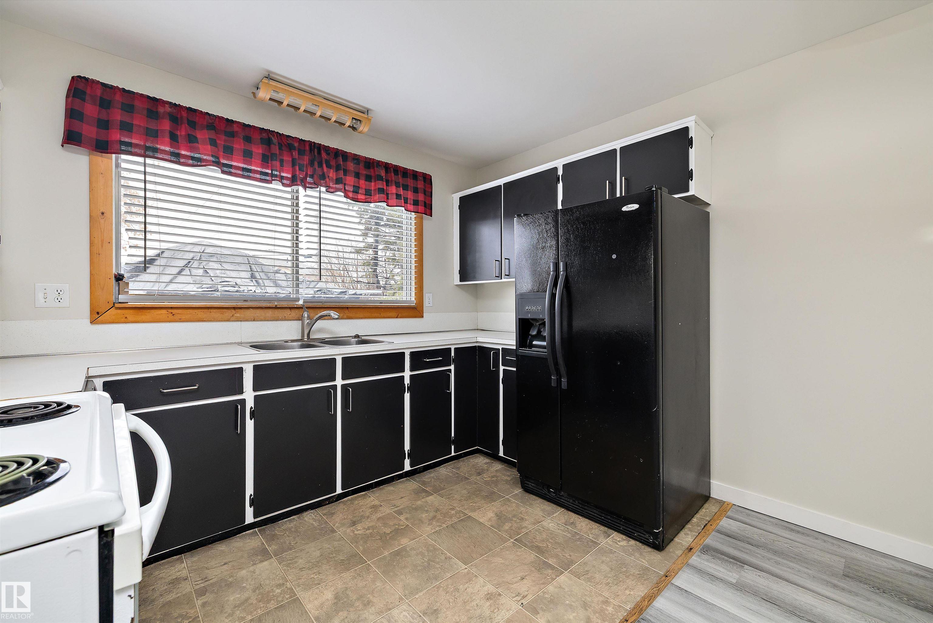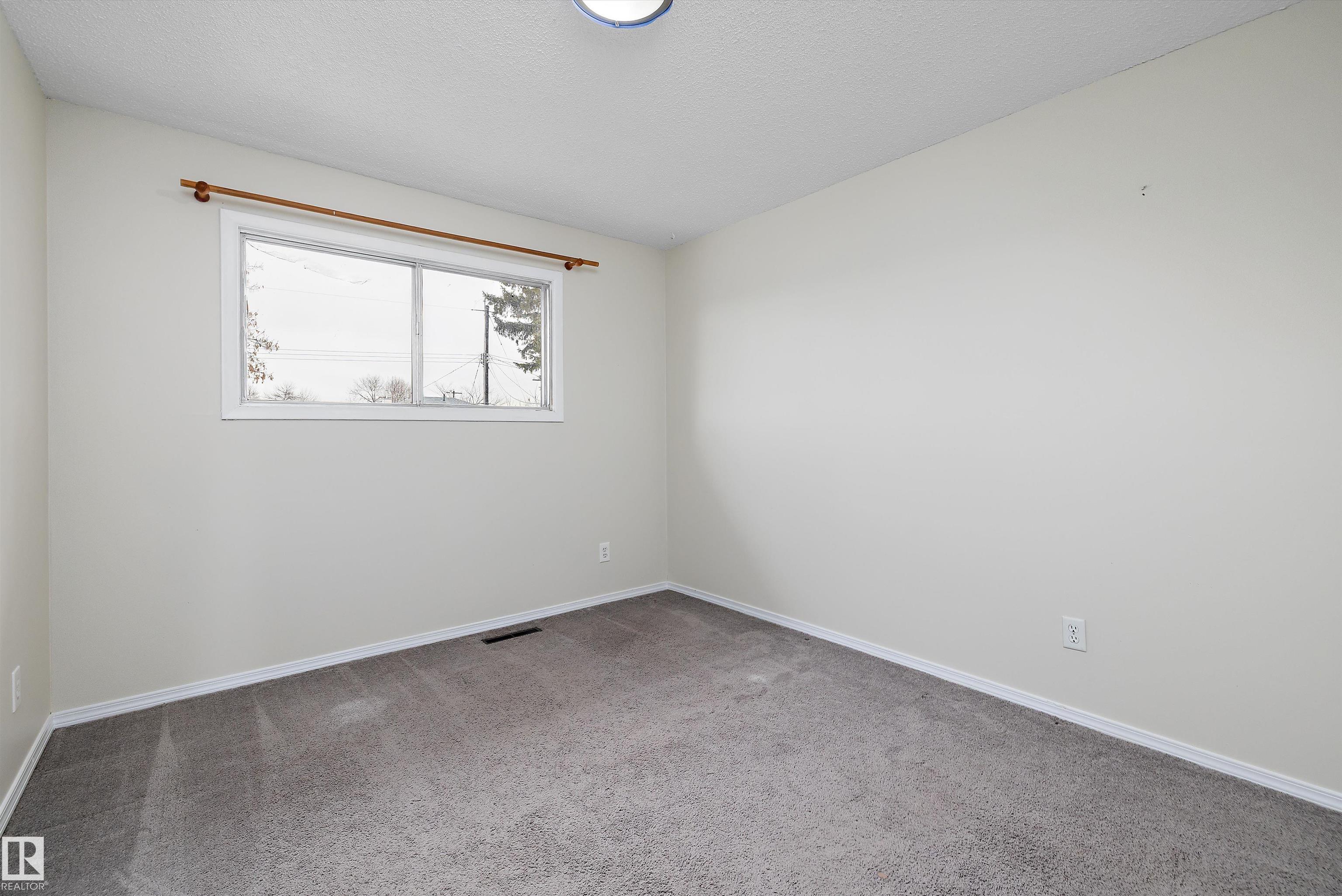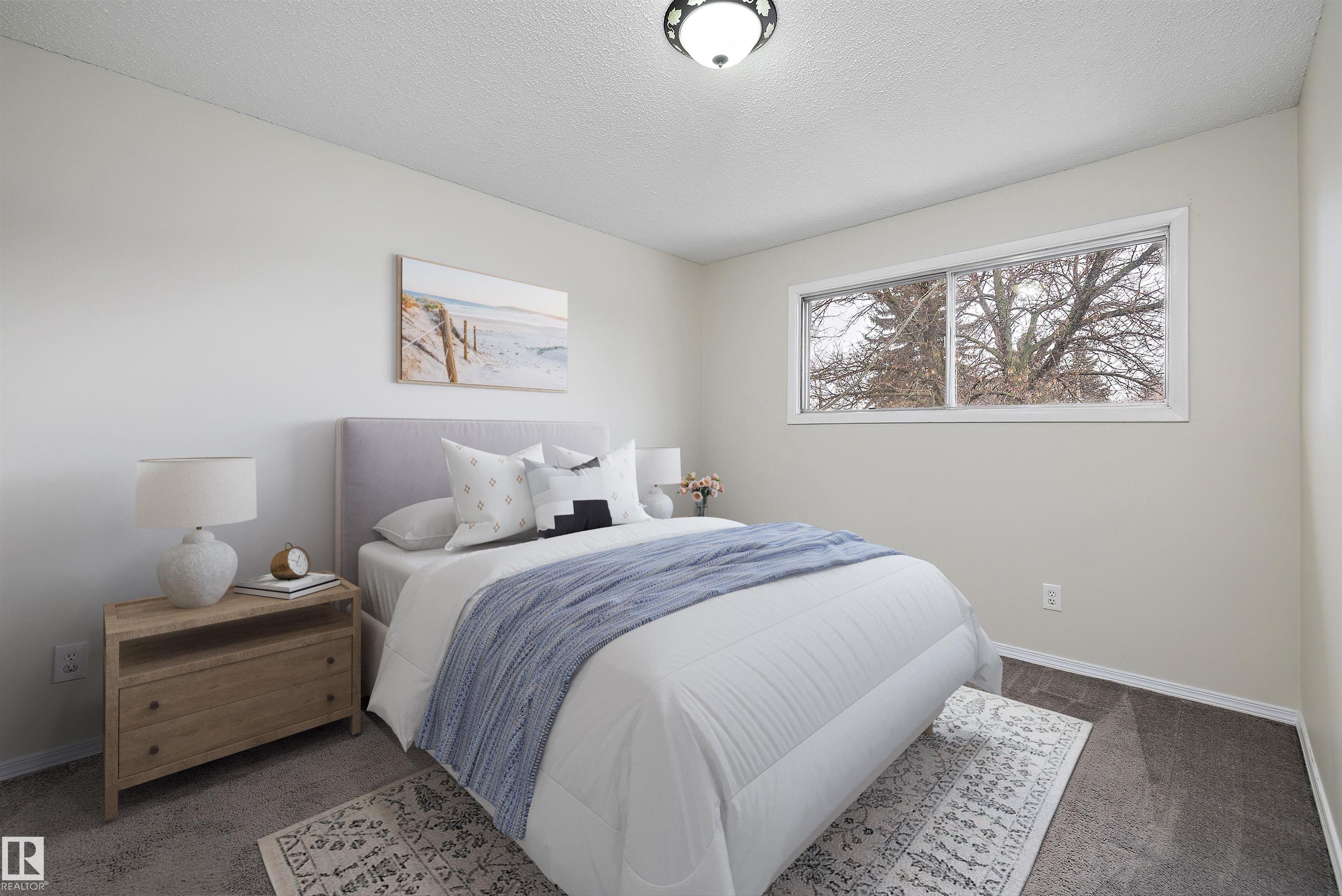 Welcome to this WARM and BRIGHT 3 bed, 1.5 bath half duplex in an ESTABLISHED neighbourhood with long-term residents. The main floor features a FUNCTIONAL kitchen with dining nook, a COMFORTABLE living space, and a CONVENIENT half bath. Upstairs offers three bedrooms, a full bathroom with tub, and two spacious linen closets. The unfinished basement includes laundry and provides GREAT POTENTIAL for future development. Good size FULLY FENCED backyard and two energized parking stalls at the back. Move in as is or update to add value. This home is ideal for FIRST-TIME BUYERS and GROWING FAMILIES seeking an AFFORDABLE entry into homeownership with ROOM TO GROW. Located on a QUIET STREET close to schools, parks, and everyday amenities, with easy access to Yellowhead and a short commute to NAIT and U of A. Some photos are virtually staged.